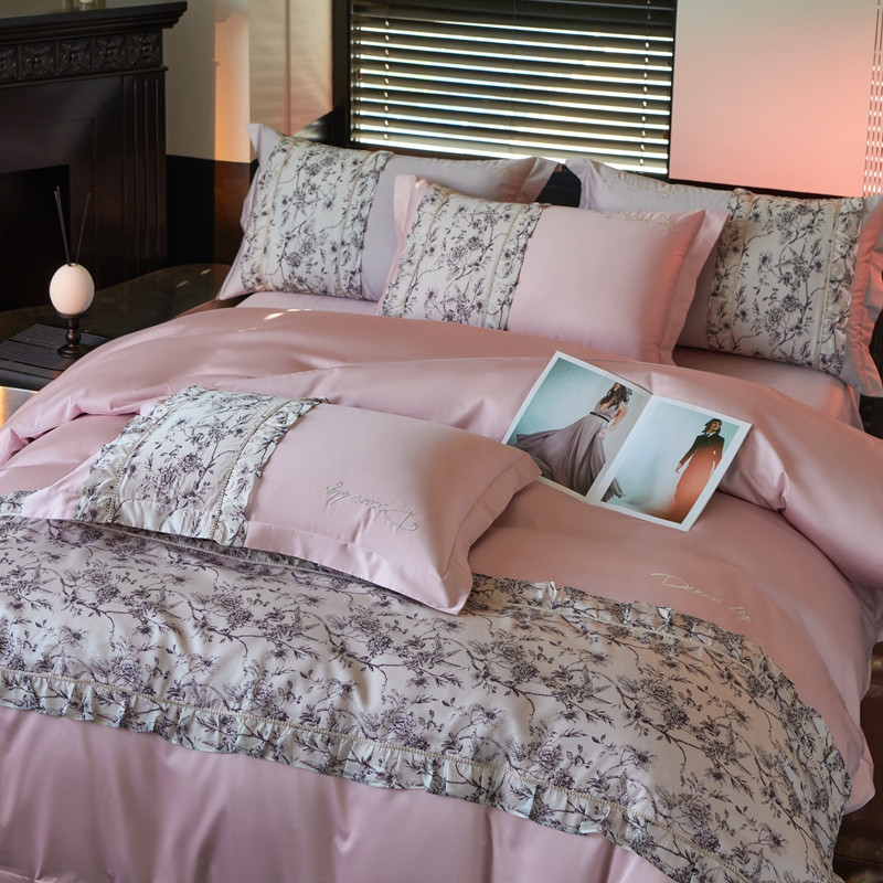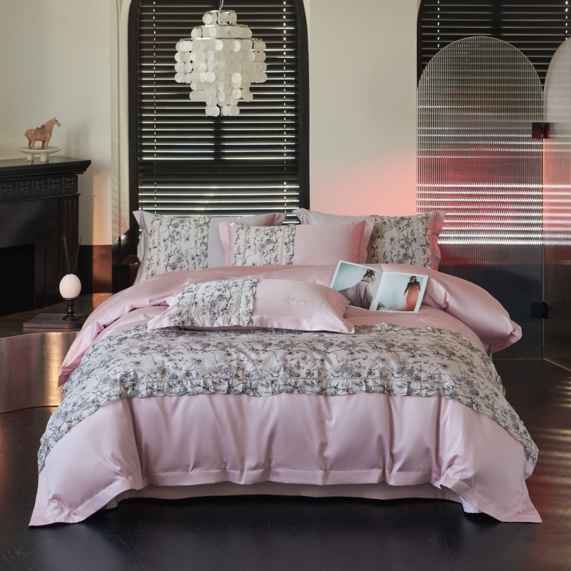 时亿家居 2024新款100支长绒棉雅馨系列四件套 雅馨粉紫