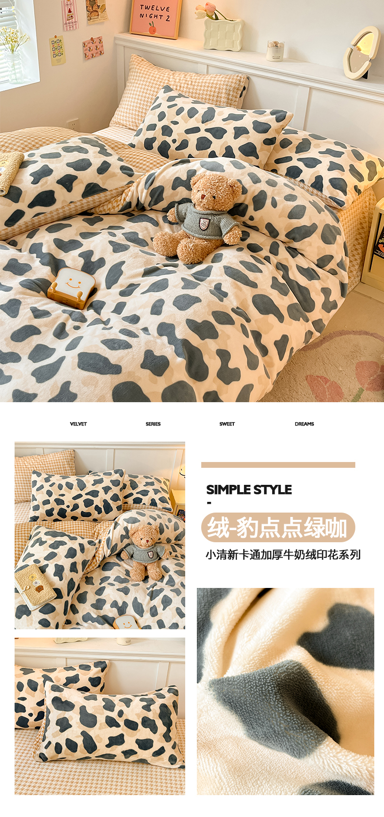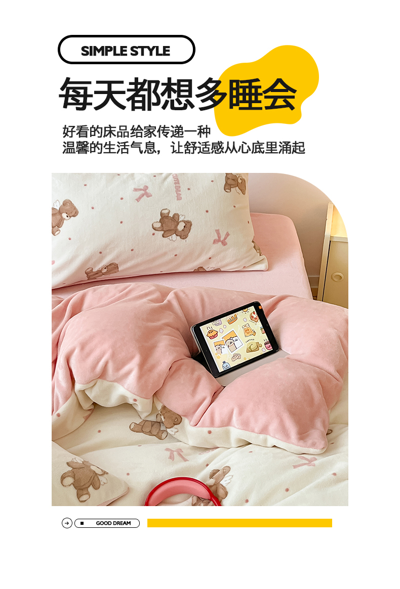 商品名称:(总)桃子家居 2024新款小清新卡通加厚牛奶绒全工艺200克印花牛奶绒系列四件套