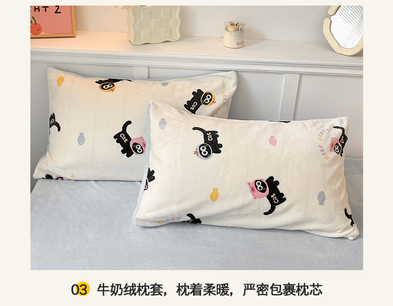 桃子家居 2024新款小清新卡通加厚牛奶绒全工艺200克印花牛奶绒系列四件套 绒-快乐喵
