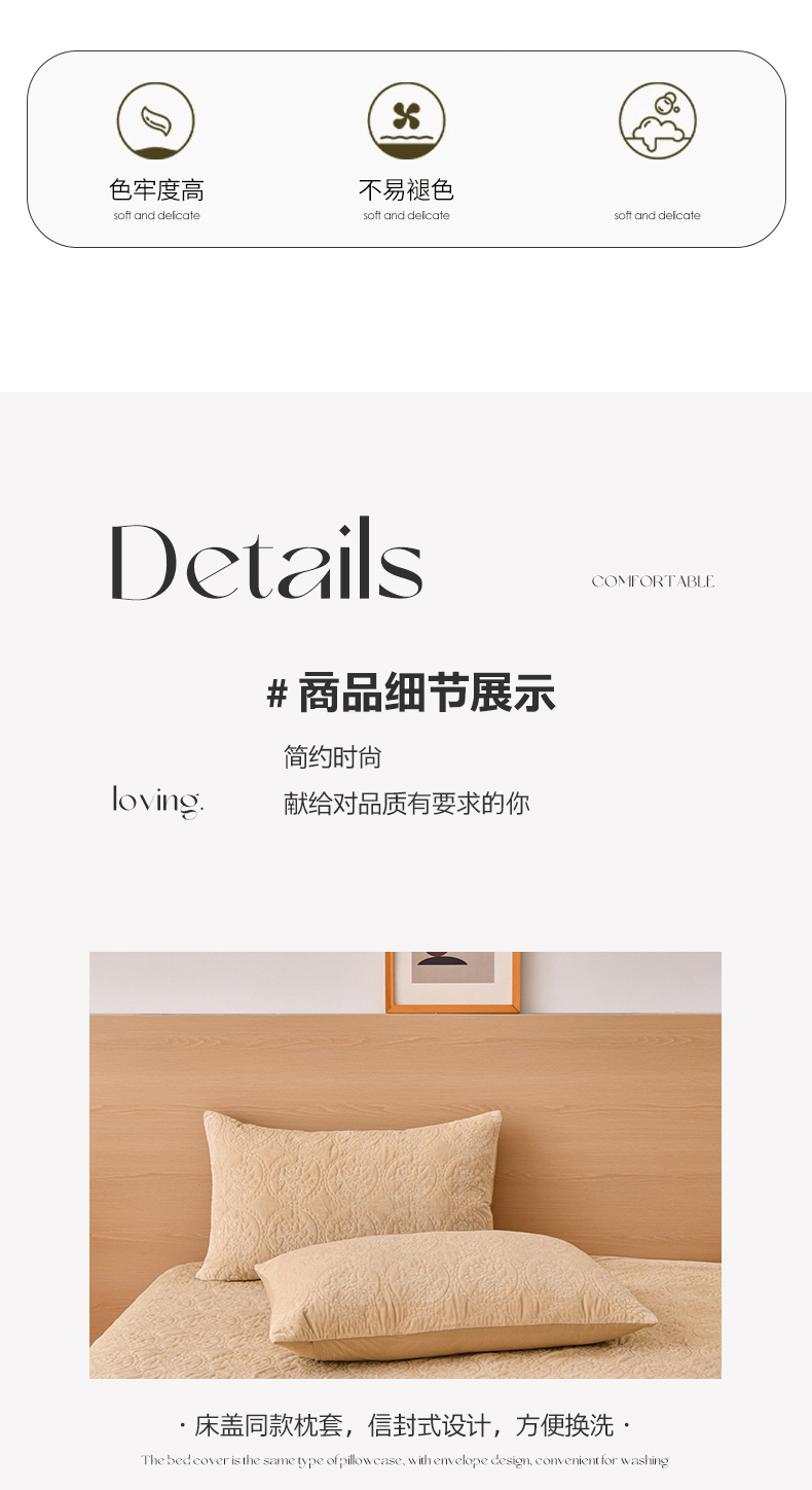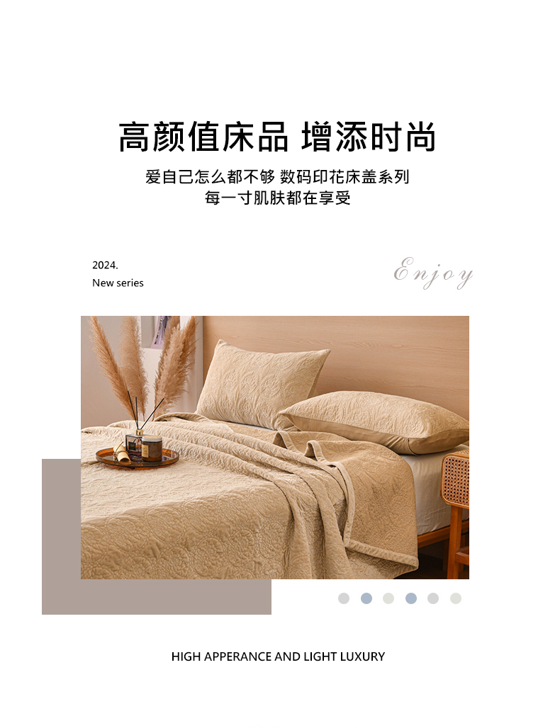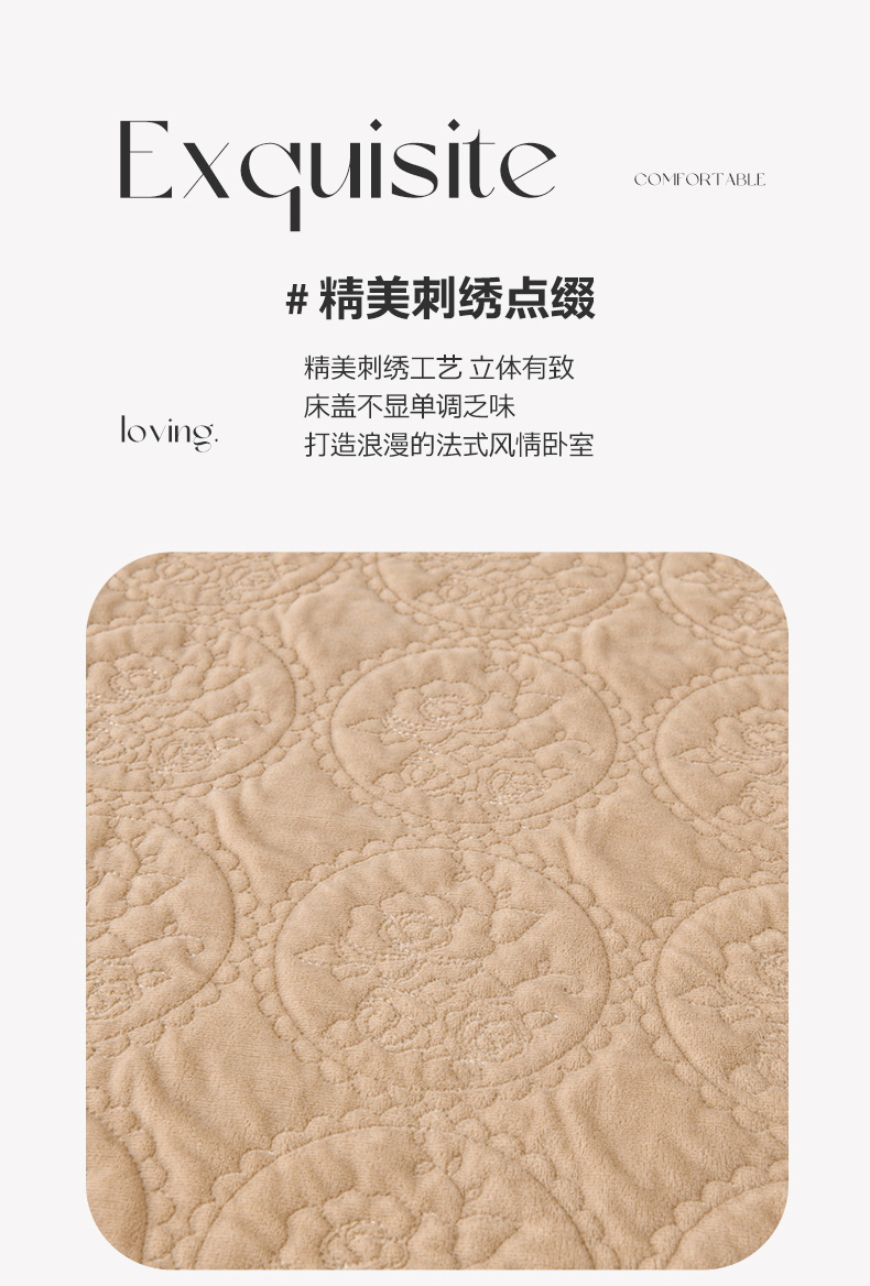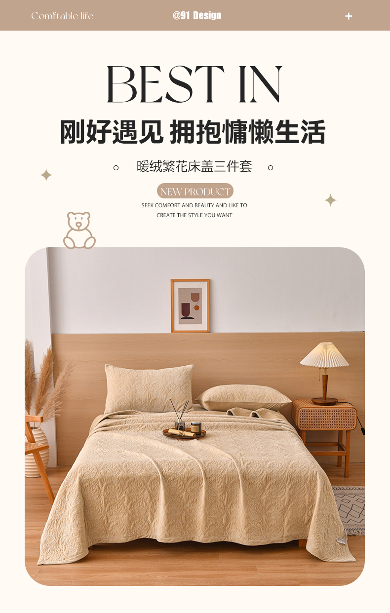 商品名称:有货 2024新款法式繁花暖绒床盖三件套 繁花-奶咖