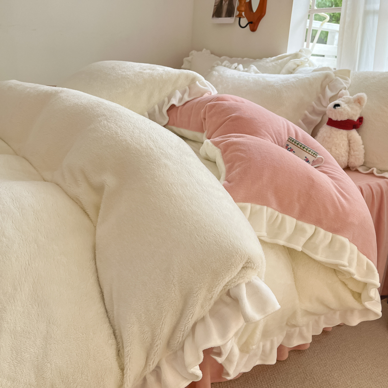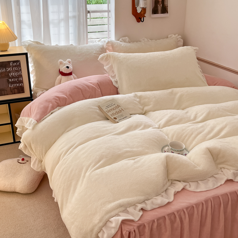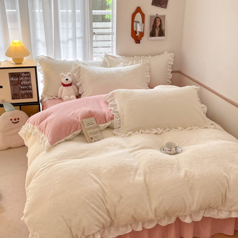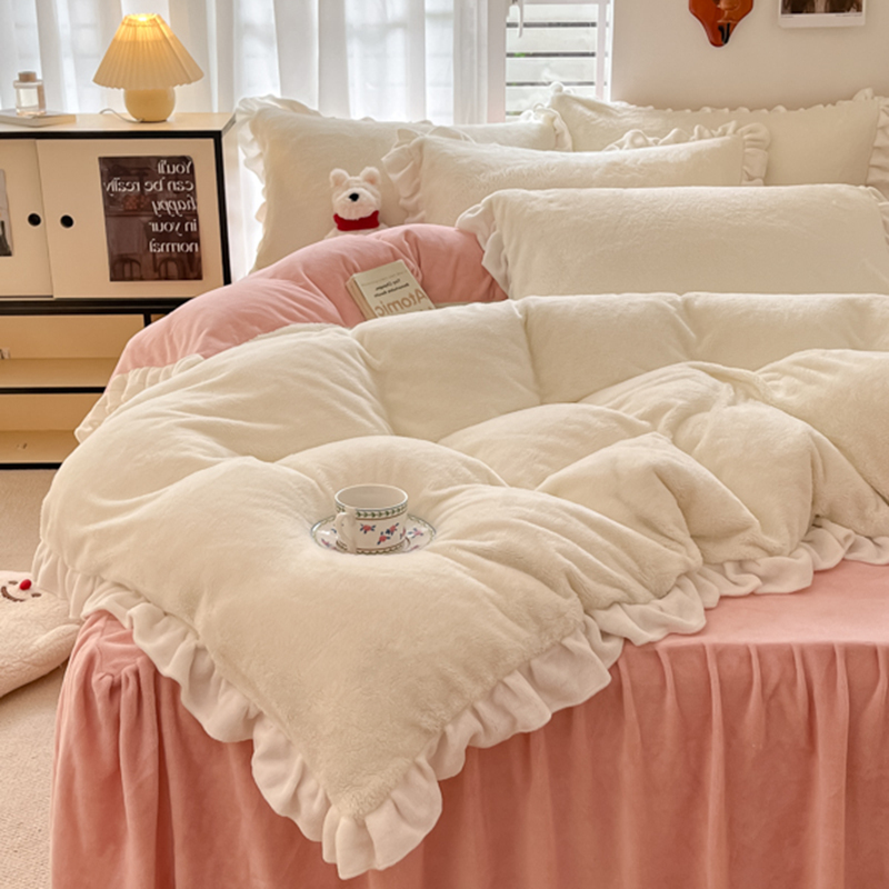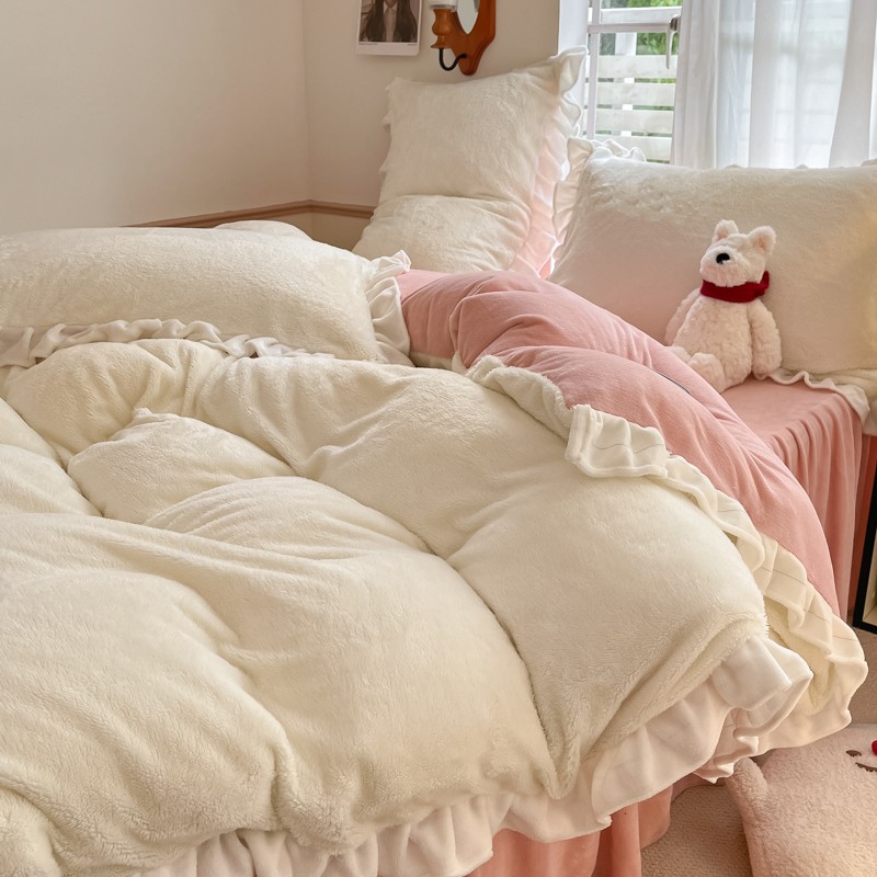 当前位置: 91家纺网 > 商品网购 > 床品套件 > 四件套 > 牛奶绒四件套 > 星座家纺 2025新款牛奶绒花边床裙款四件套 床裙款-奶昔白+樱花粉