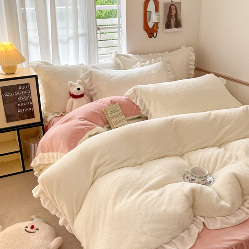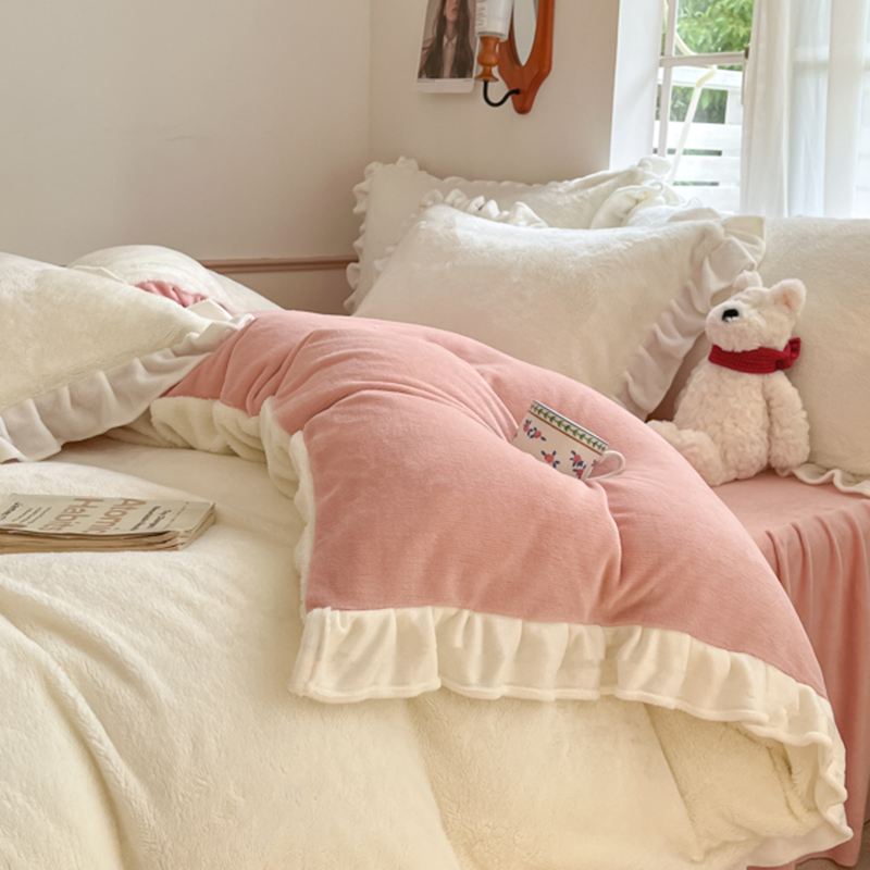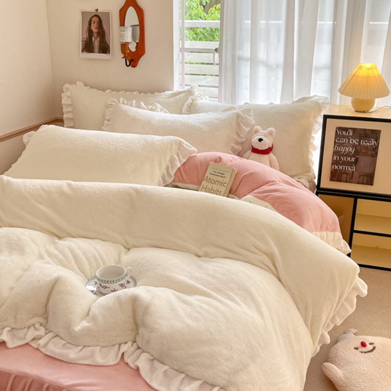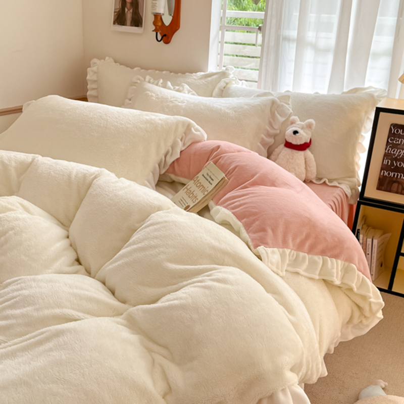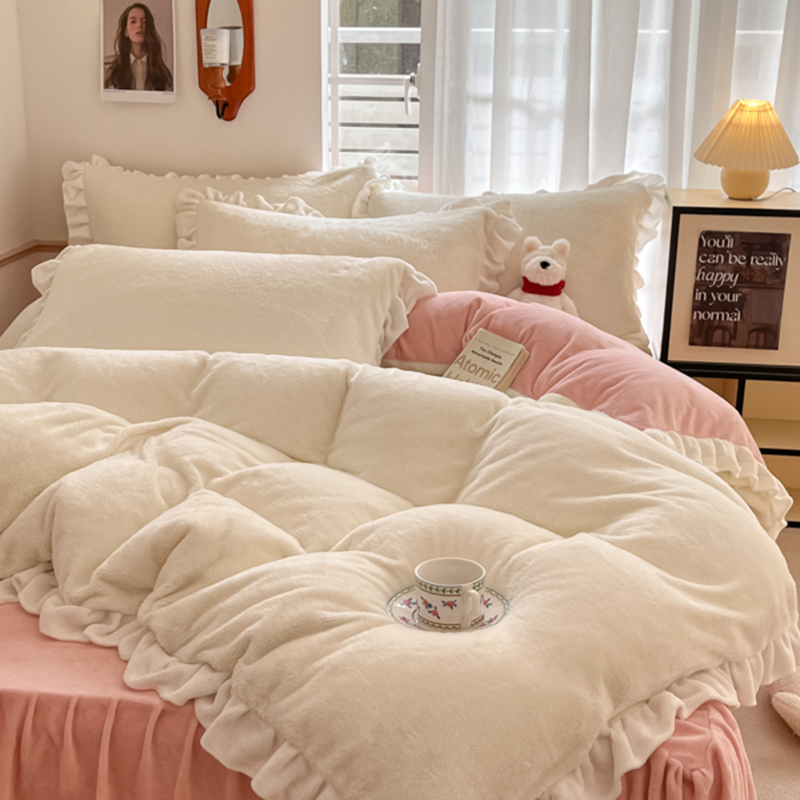当前位置: 91家纺网 > 商品网购 > 床品套件 > 四件套 > 牛奶绒四件套 > 星座家纺 2025新款牛奶绒花边床裙款四件套 床裙款-奶昔白+樱花粉