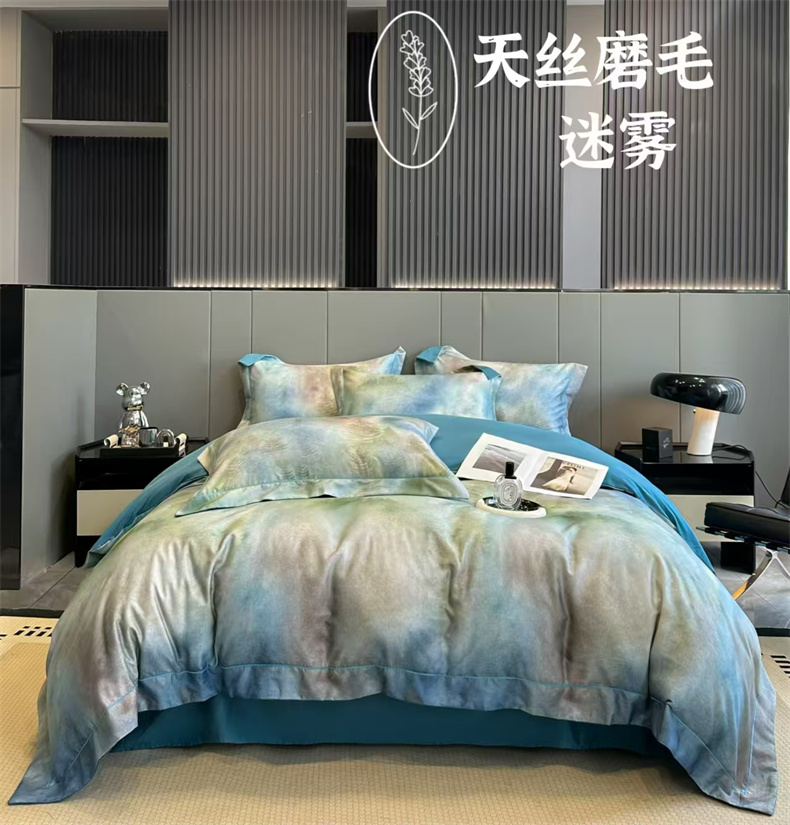 舒慕 2025新款阳绒天丝棉磨毛数码印花缇芙绒四件套 迷雾