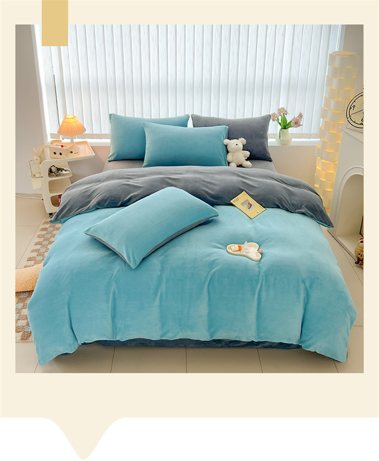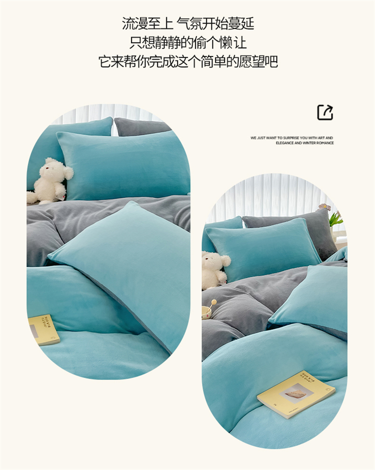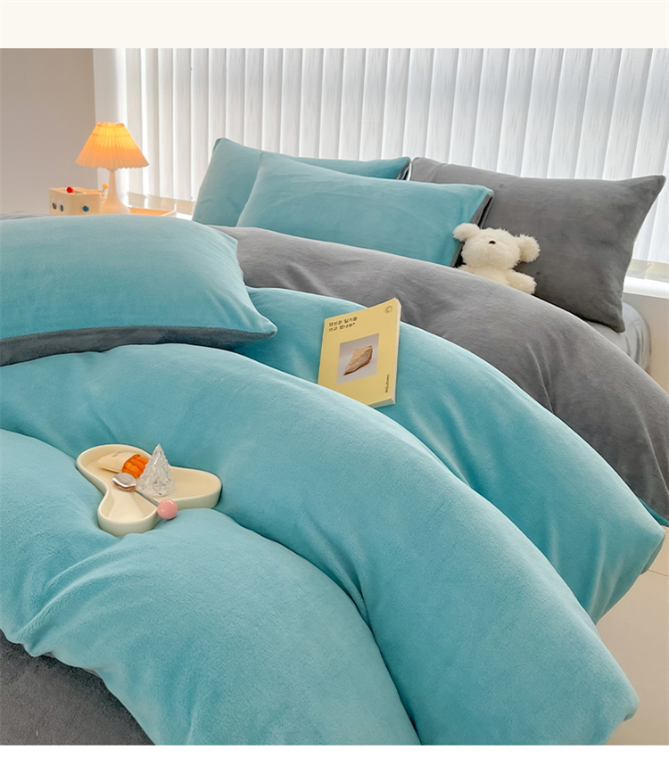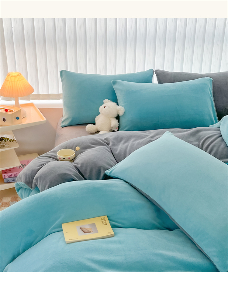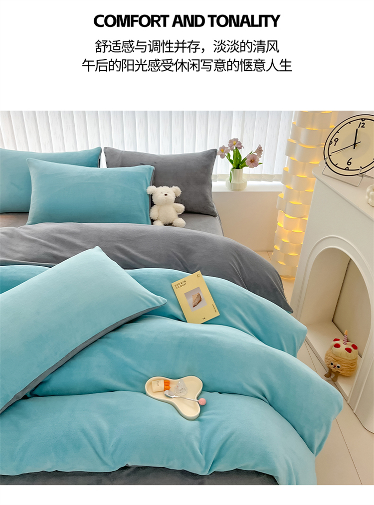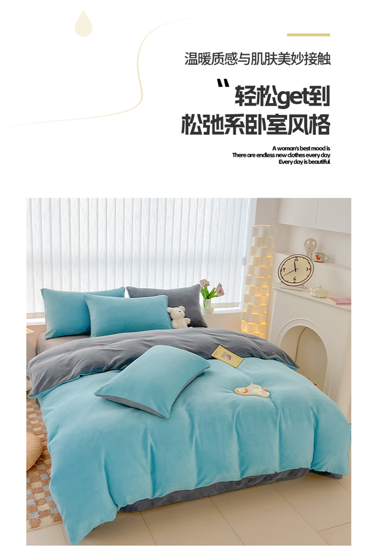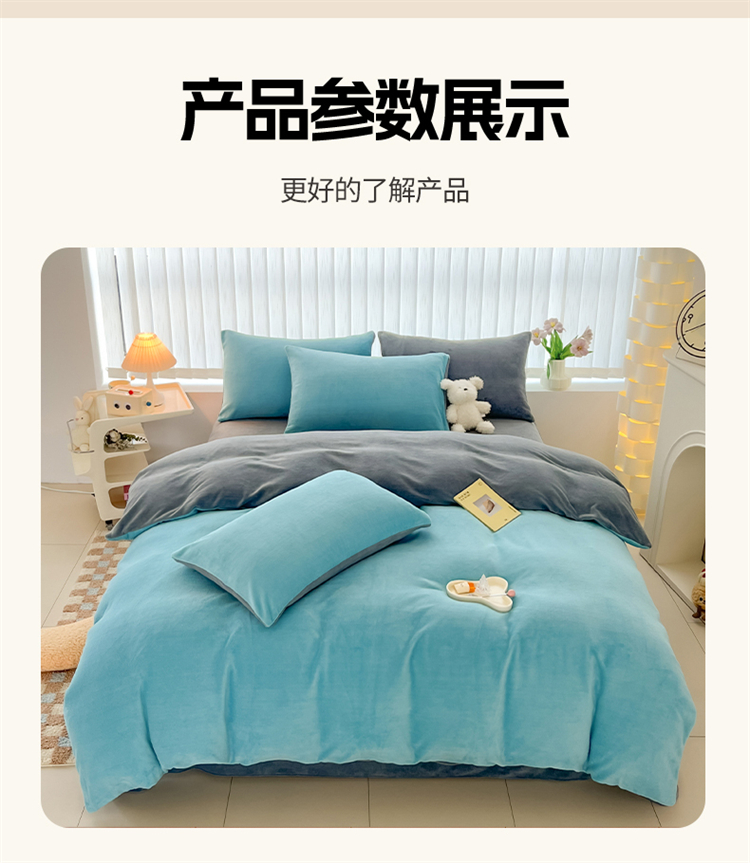 商品名称:言熙居 2024新款纯色双拼30克8一9斤牛奶绒四件套 靛蓝拼浅灰
