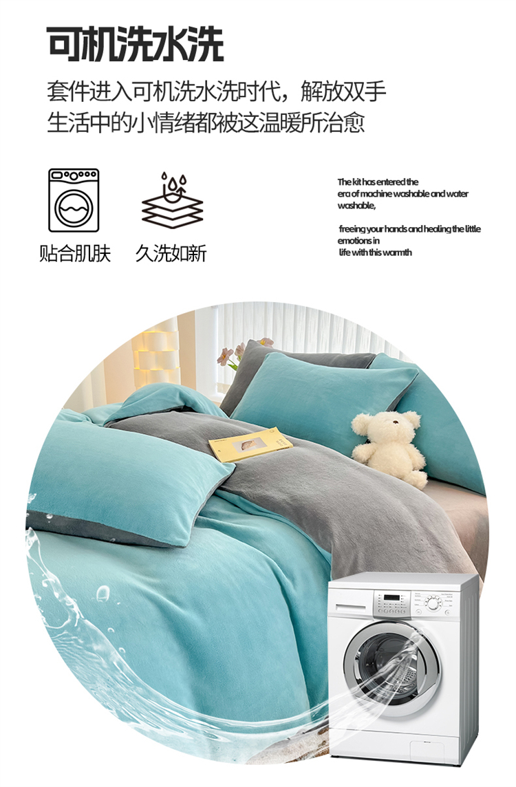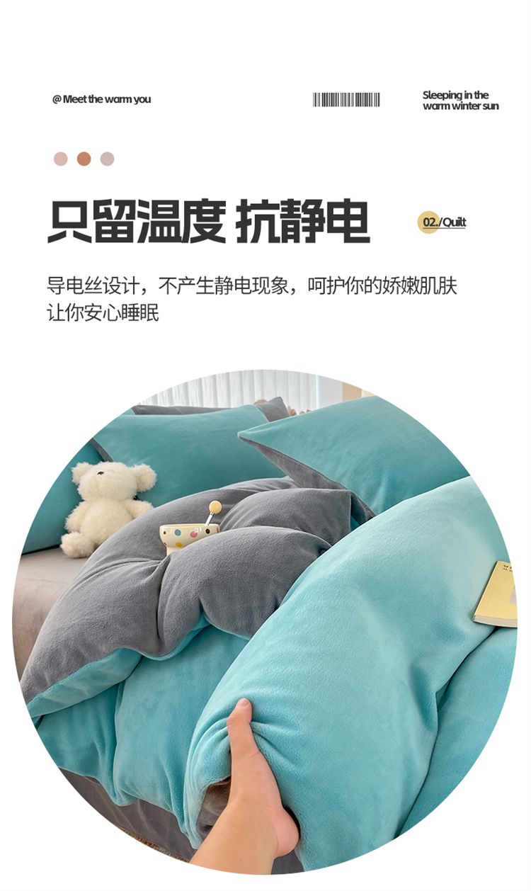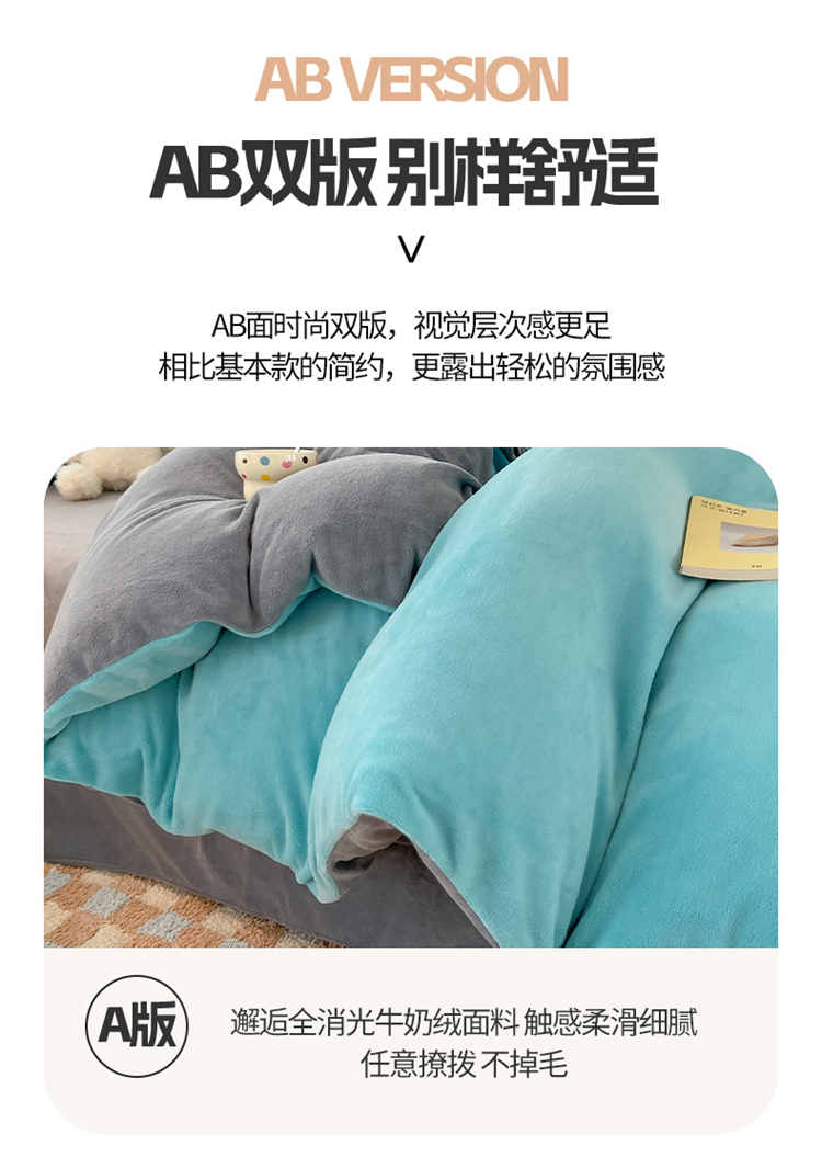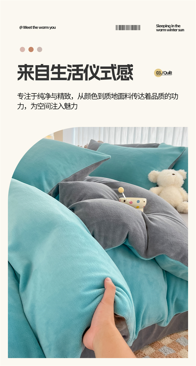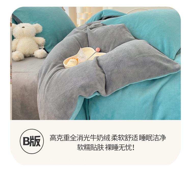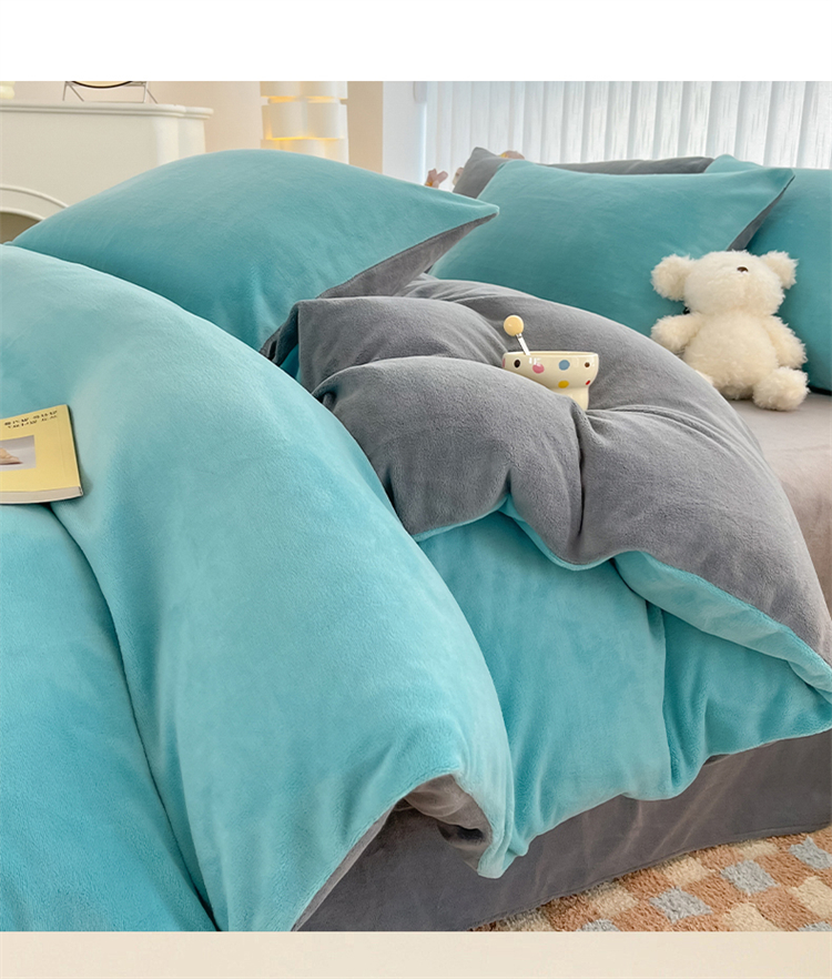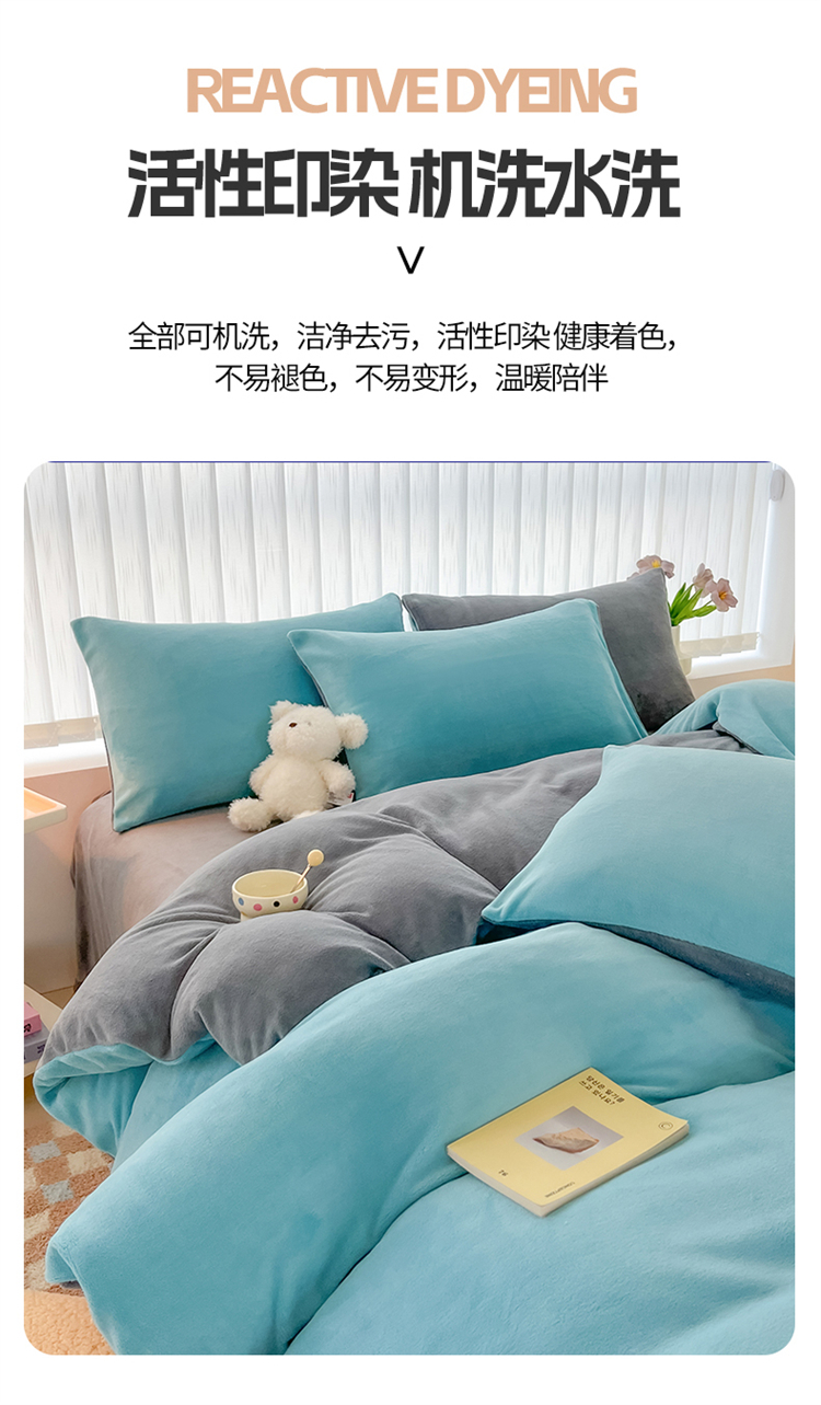 商品名称:言熙居 2024新款纯色双拼30克8一9斤牛奶绒四件套 靛蓝拼浅灰