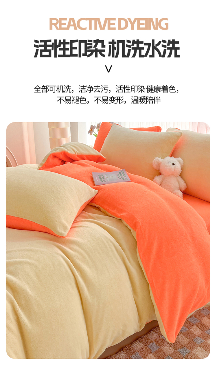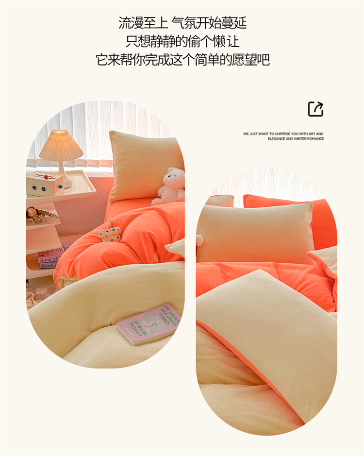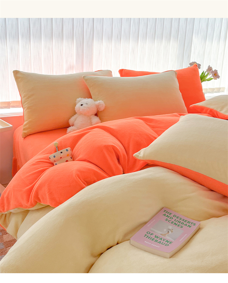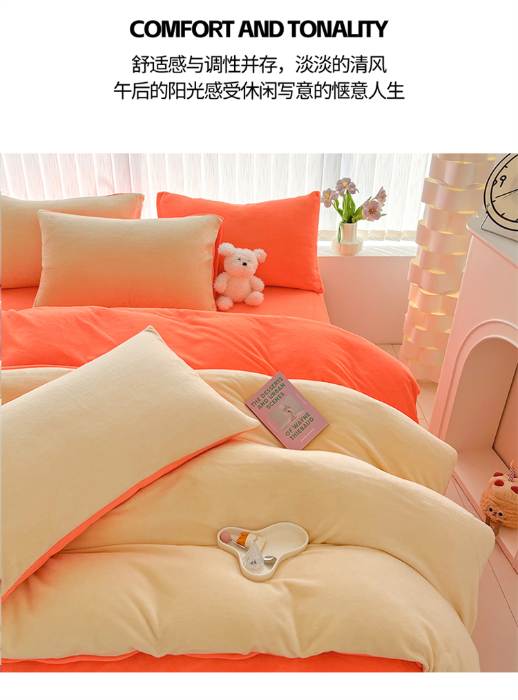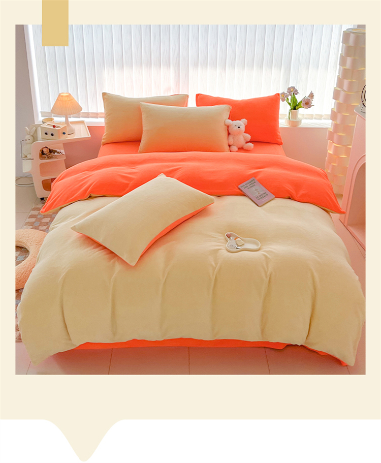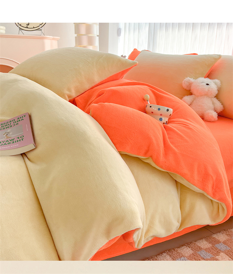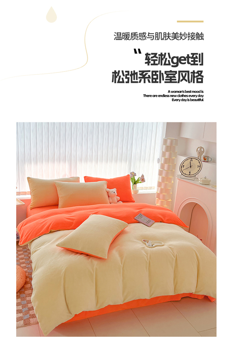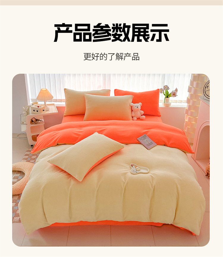商品名称:言熙居 2024新款纯色双拼30克8一9斤牛奶绒四件套 奶黄拼艳橙