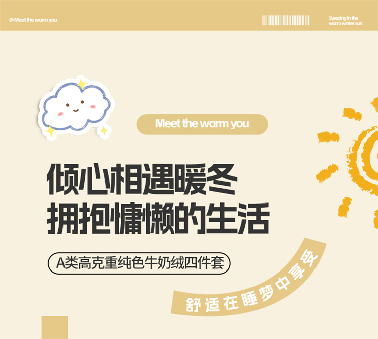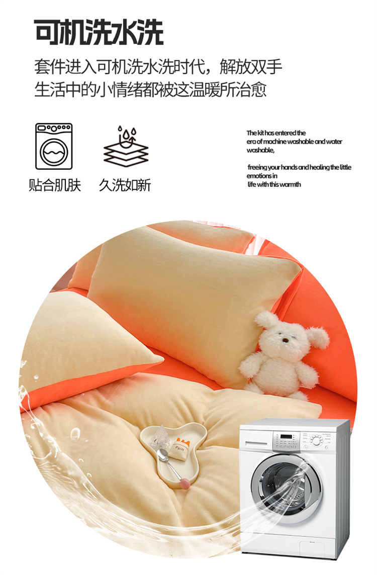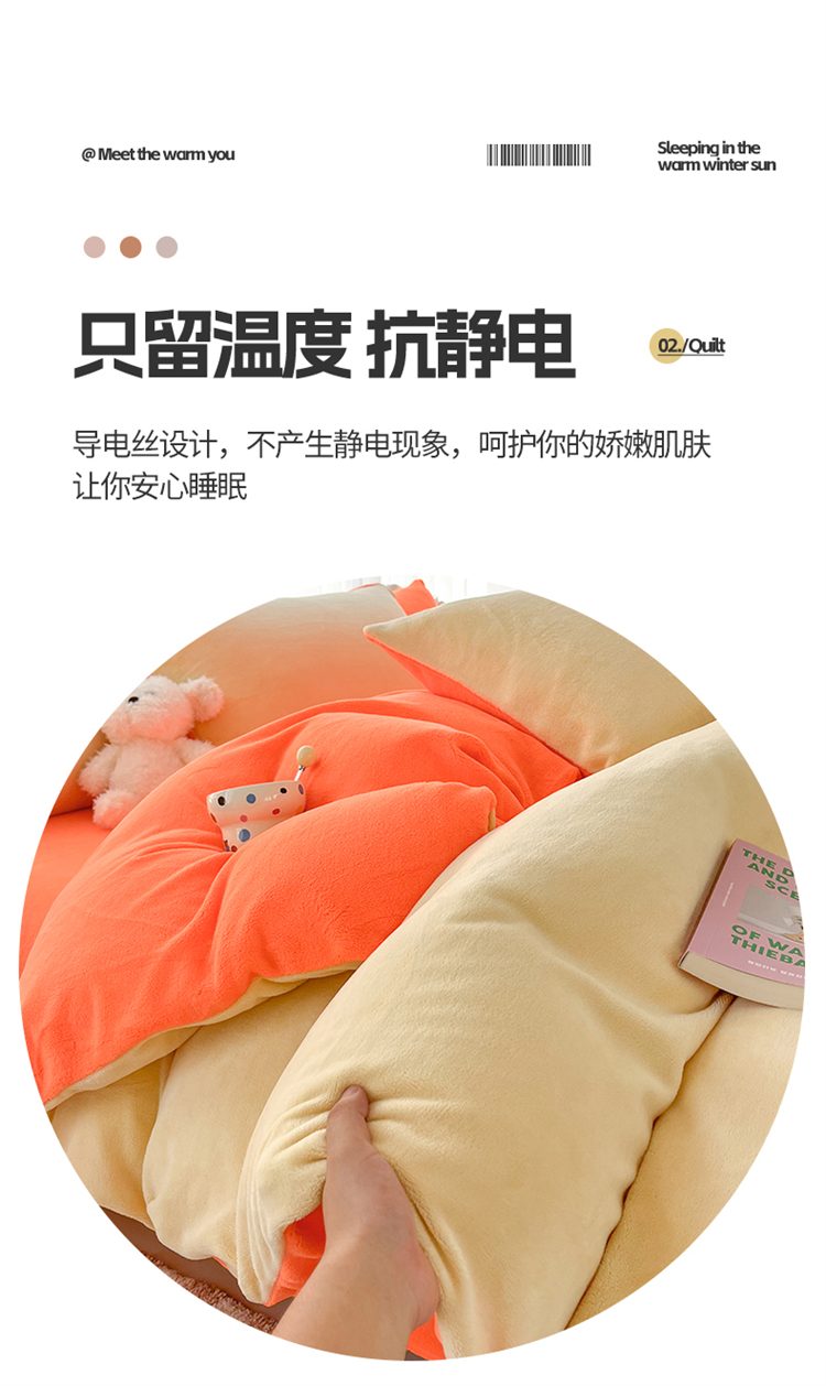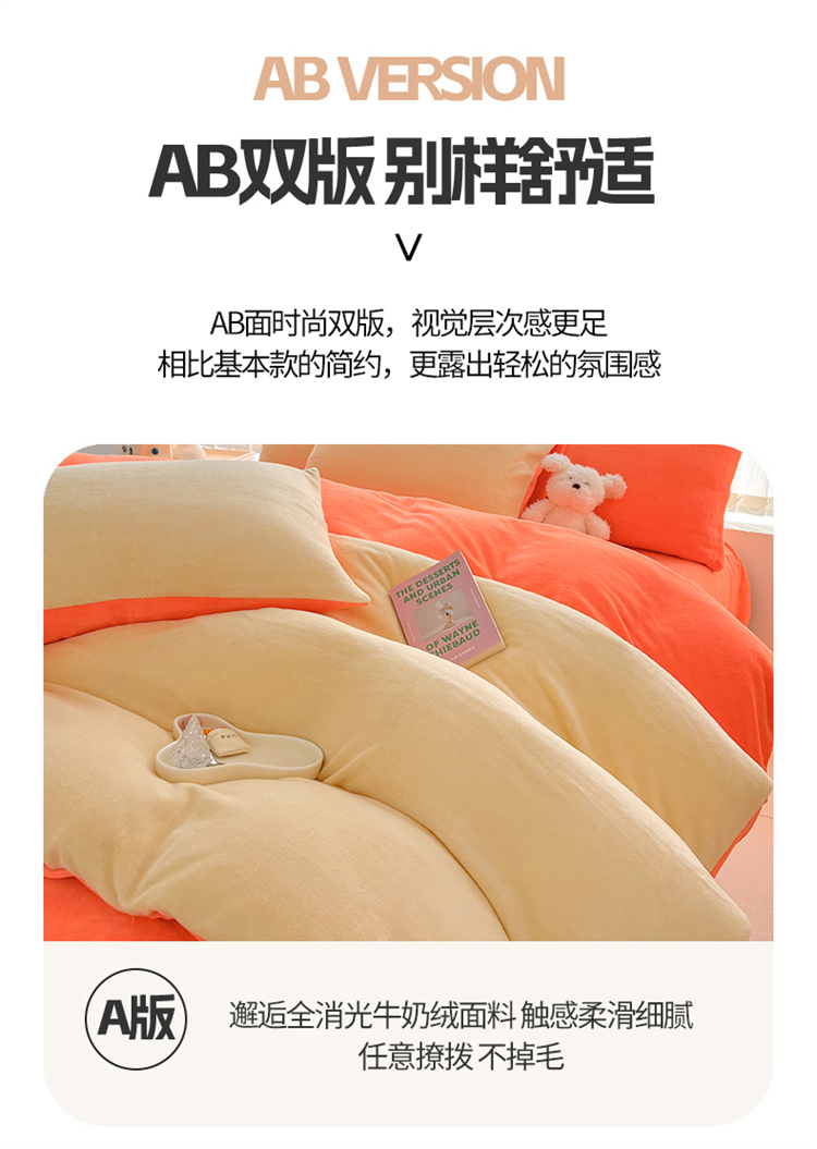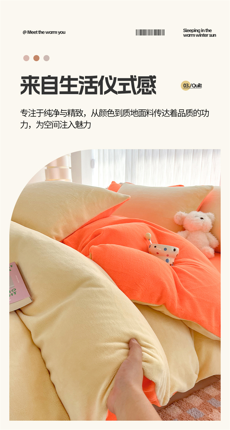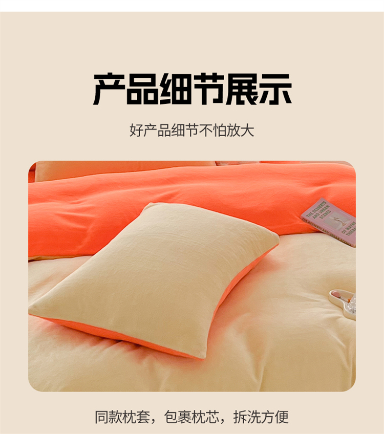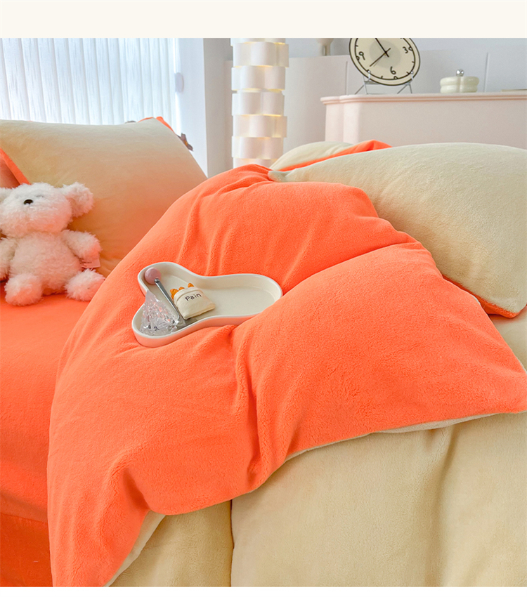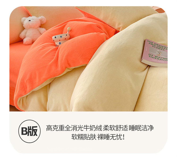 商品名称:言熙居 2024新款纯色双拼30克8一9斤牛奶绒四件套 奶黄拼艳橙