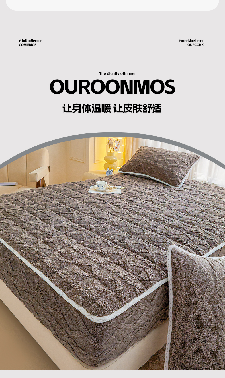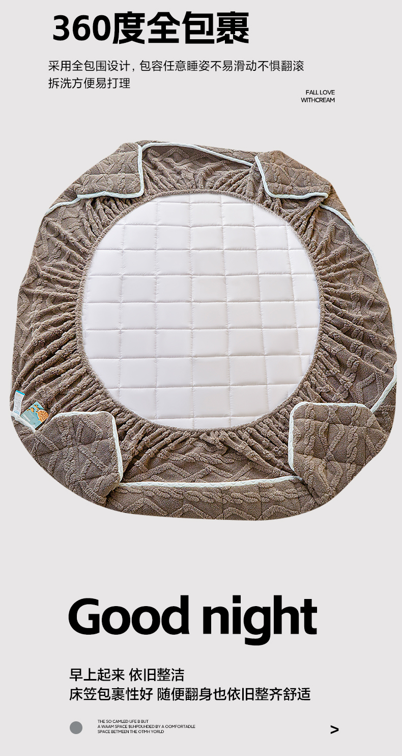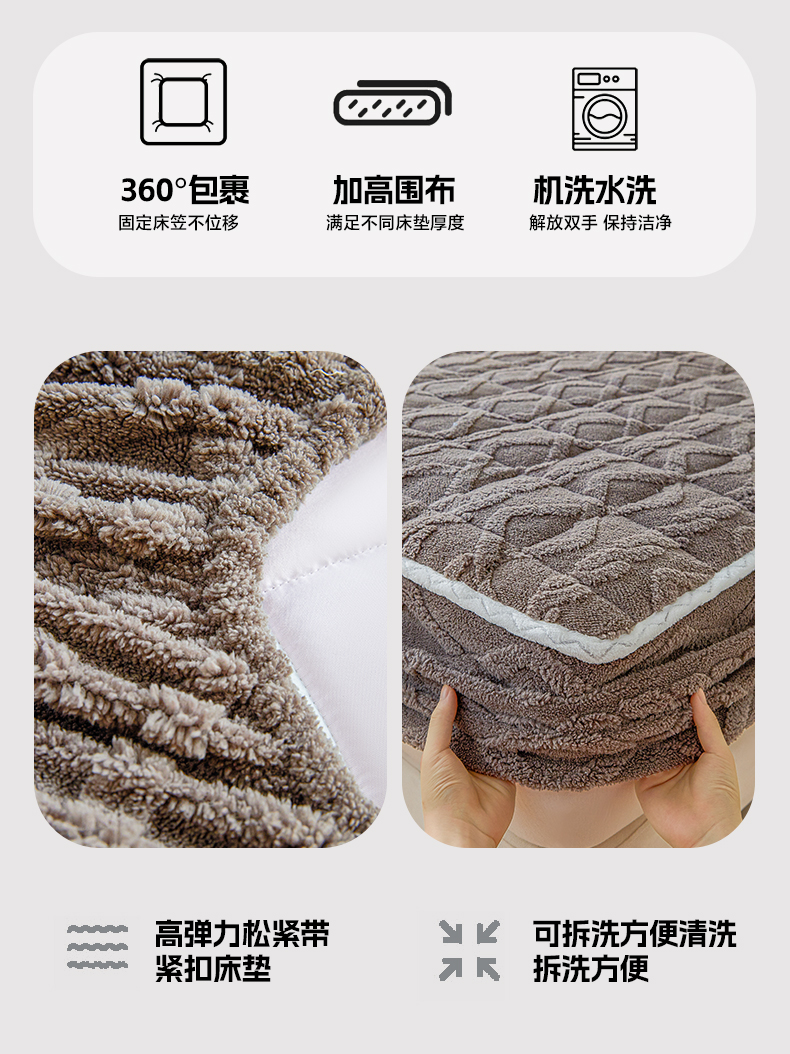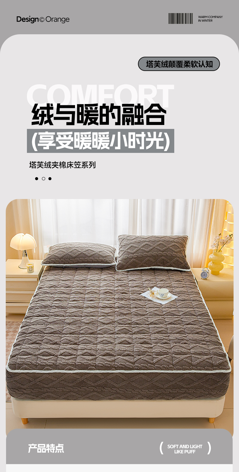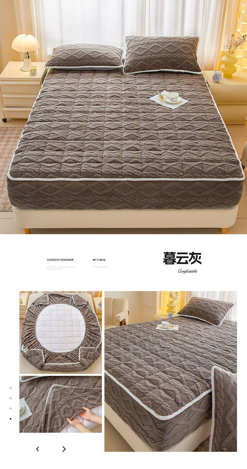• 91家纺网 家纺一手货源 找家纺 2025塔芙绒加厚保暖床笠双人单人夹棉床笠保护套 暮云灰
