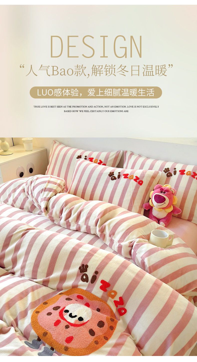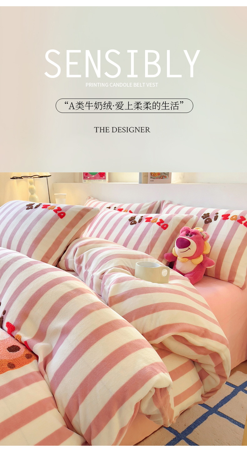 (总)丝羽坊 2025新款A类潮款加厚牛奶绒四件套,软萌宝贝,奶芙猫咪,蓝调汪汪,萌趣玩偶,灰调萌犬,抱抱熊,彩色蝴蝶结,粉粉喵窝,花裙女孩,紫色喵影