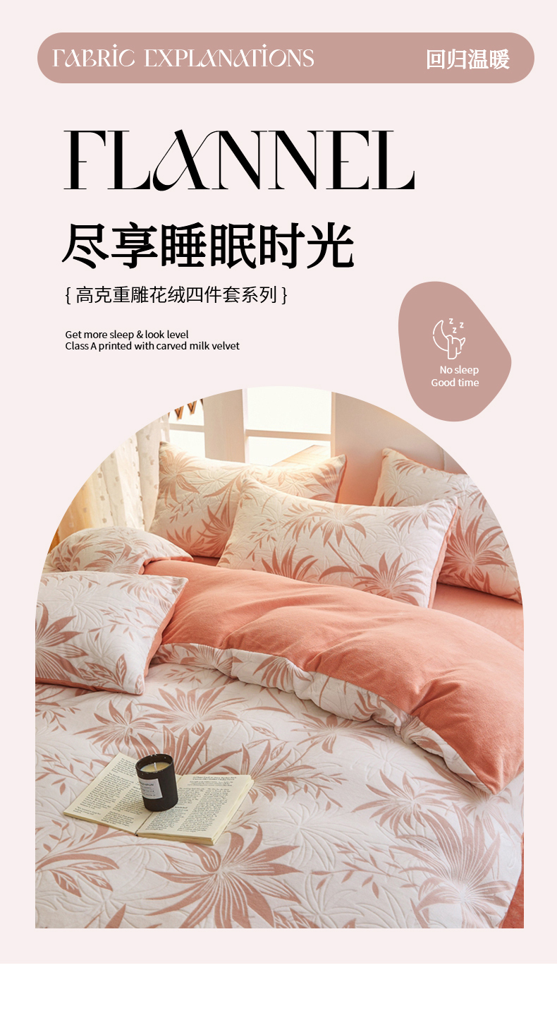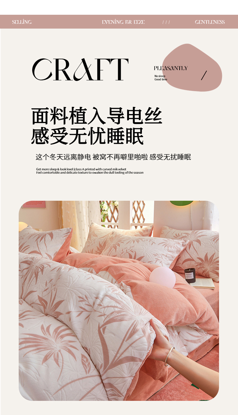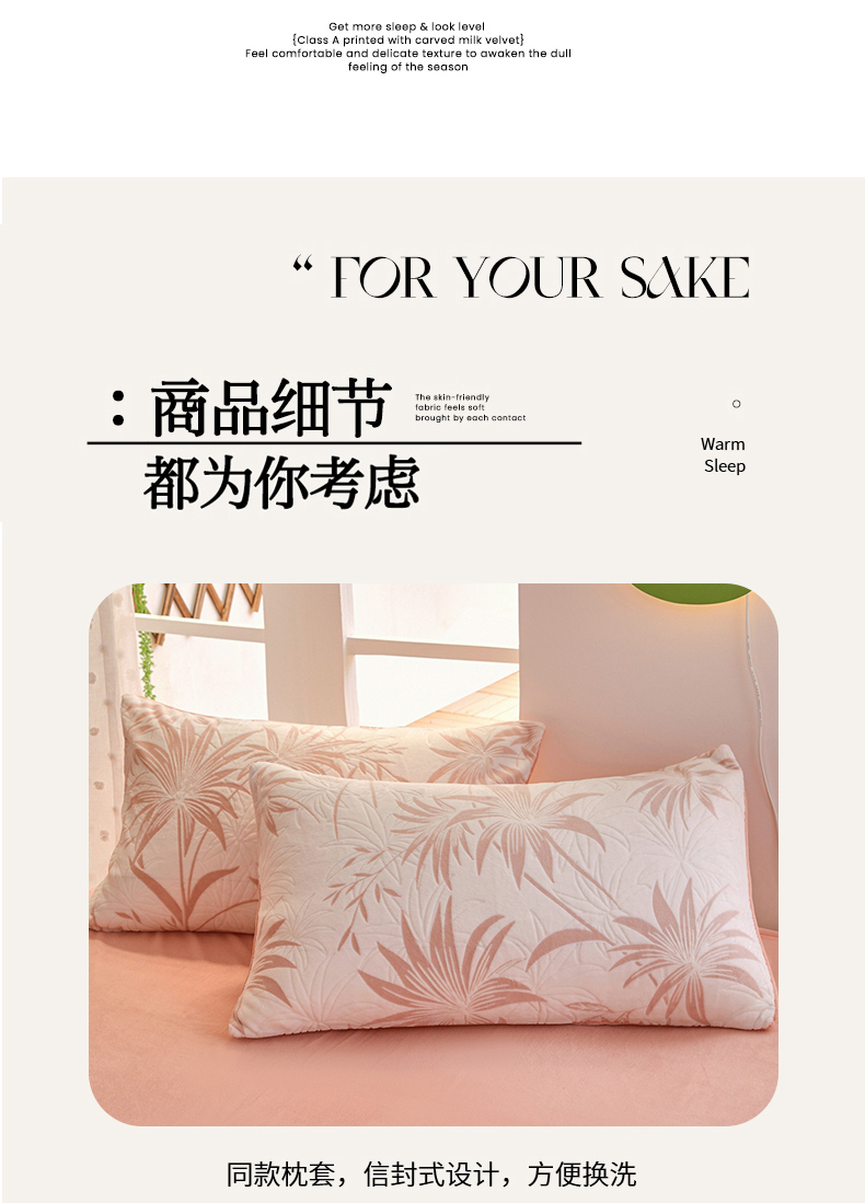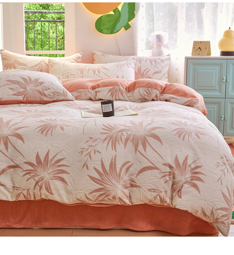 商品名称:菡宝 2024新款雕花绒230g全消光牛奶绒四件套及单品 - 单被套 枝叶韵律粉