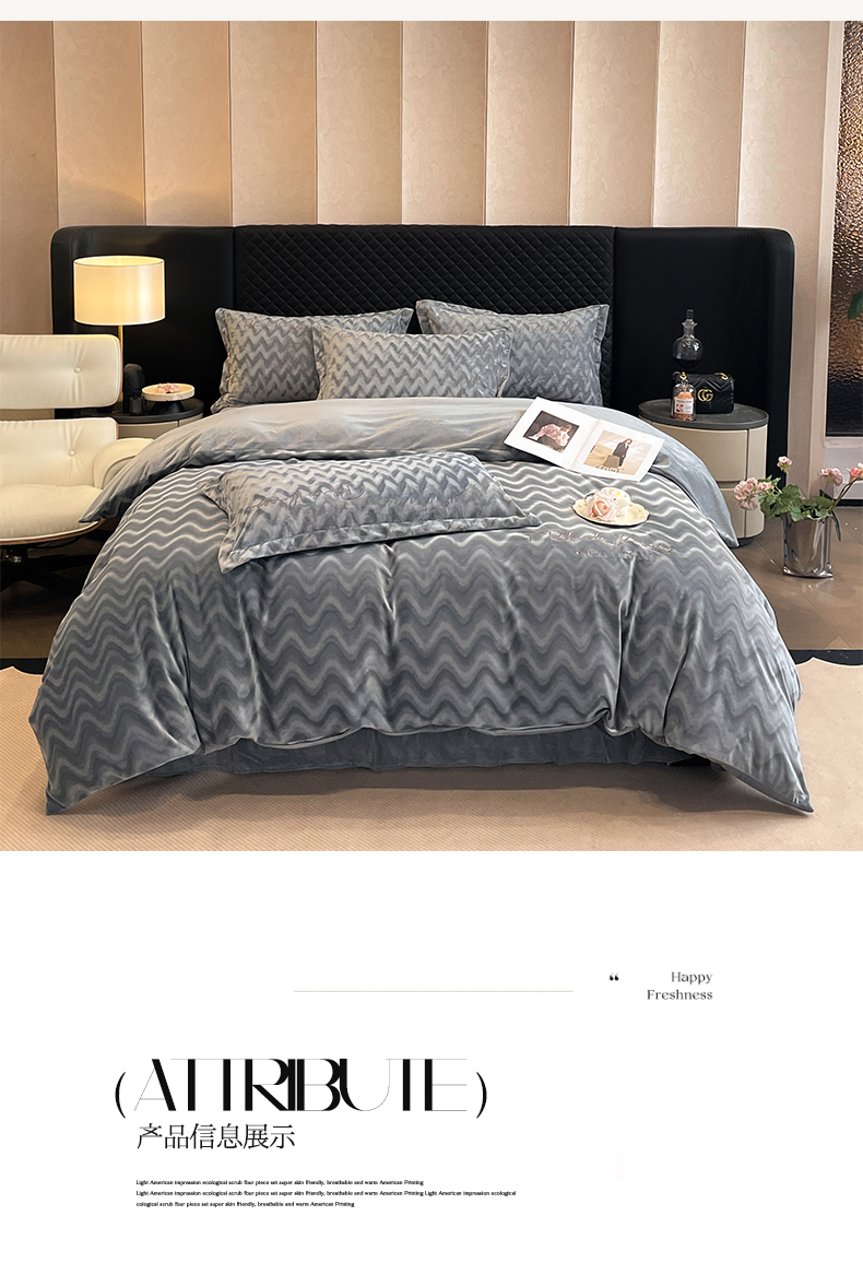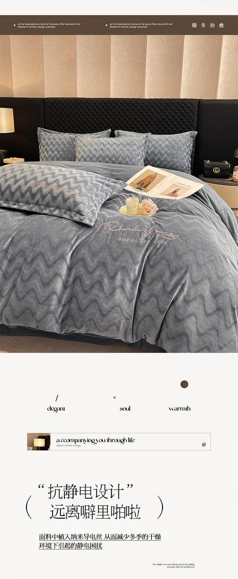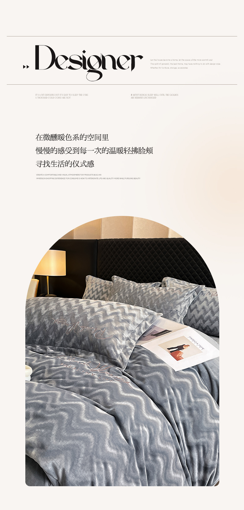 商品名称:2024新款高克重宝宝绒简奢风刺绣四件套系列-遇见 遇见-月光灰