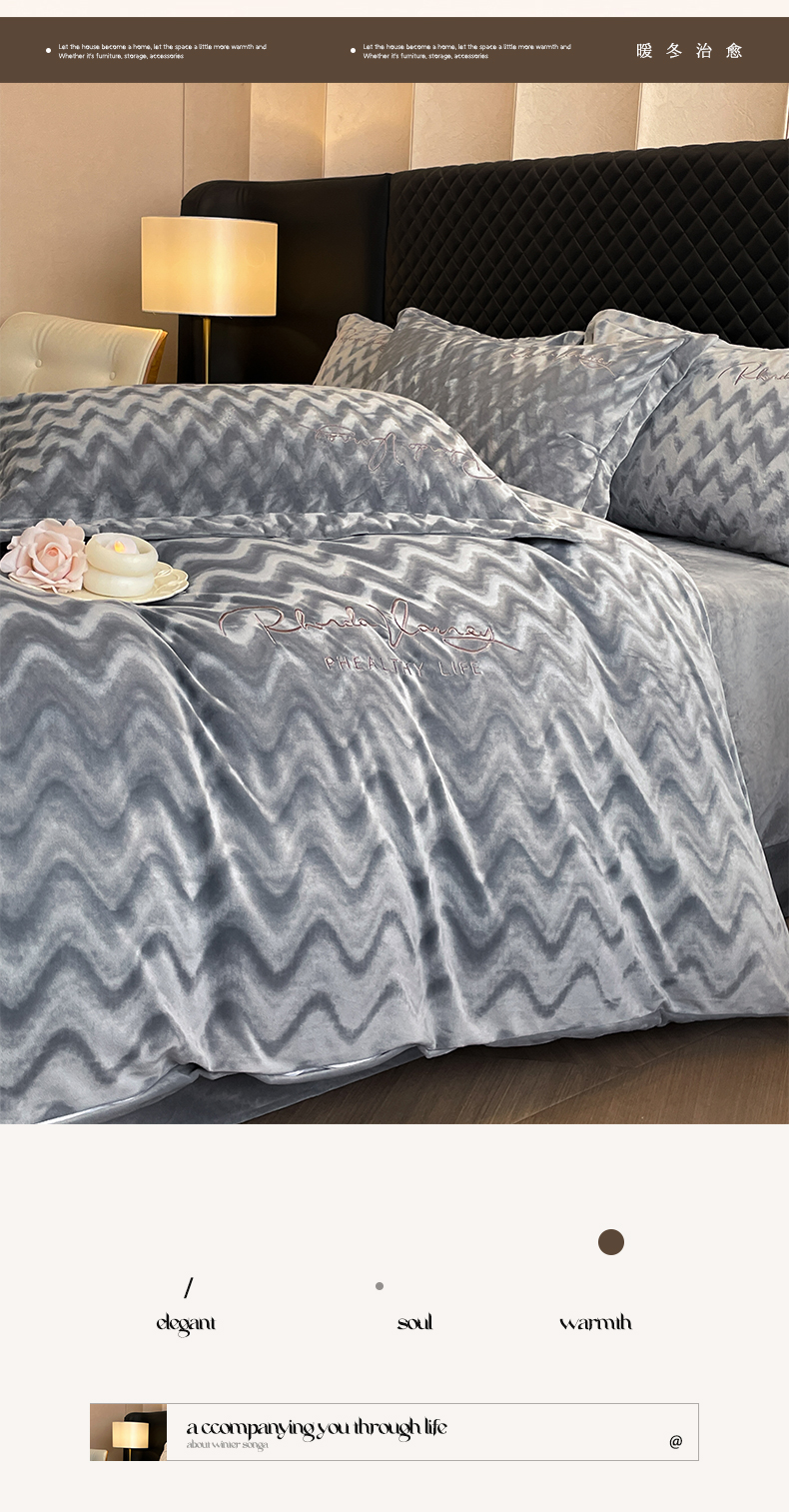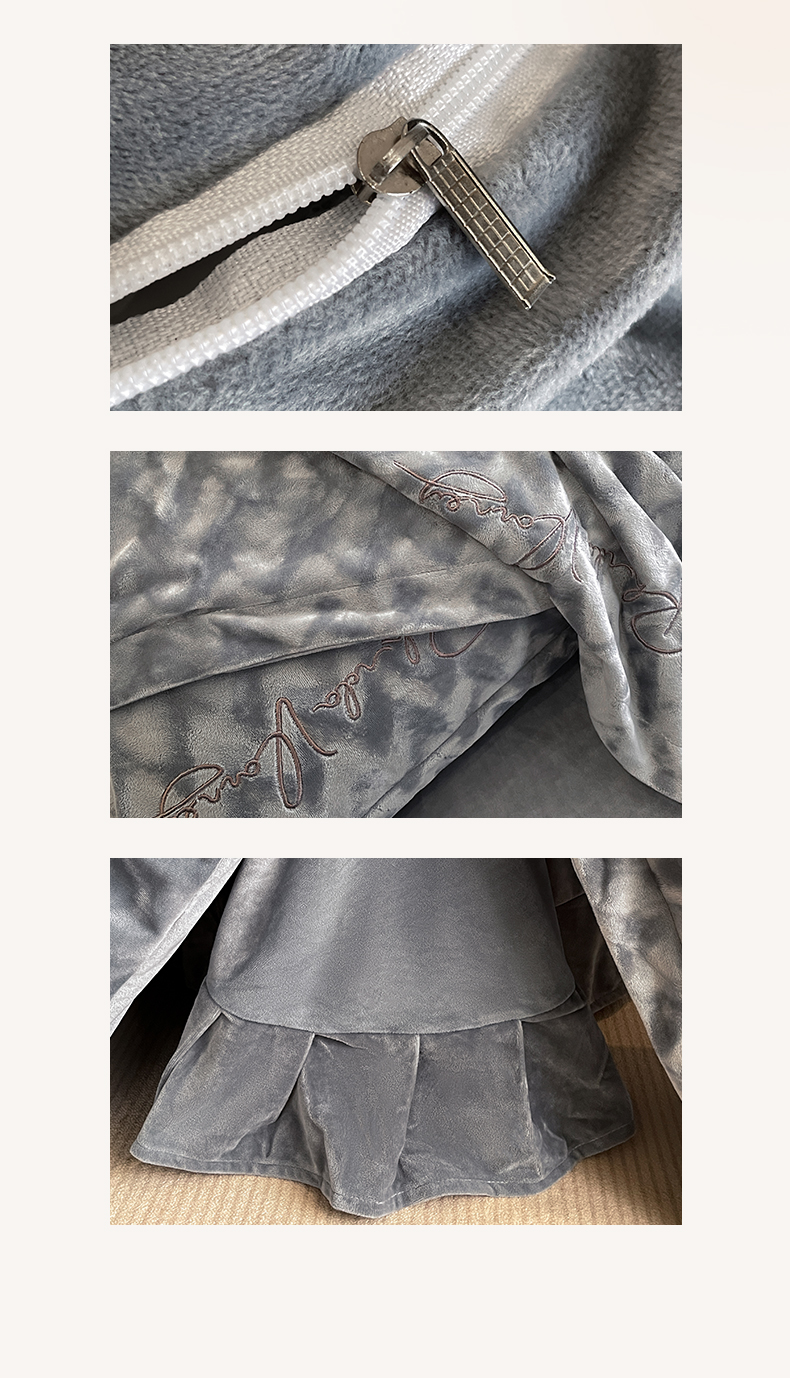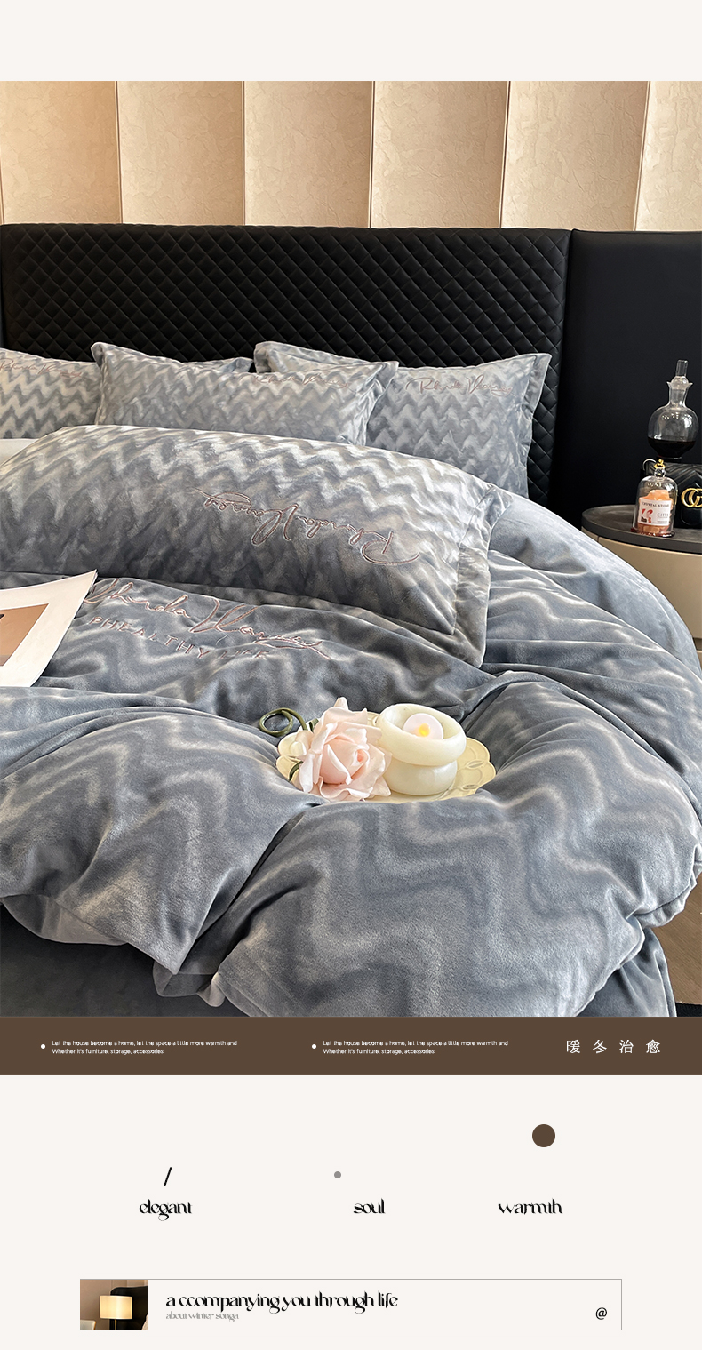 2024新款高克重宝宝绒简奢风刺绣四件套系列-遇见 遇见-月光灰