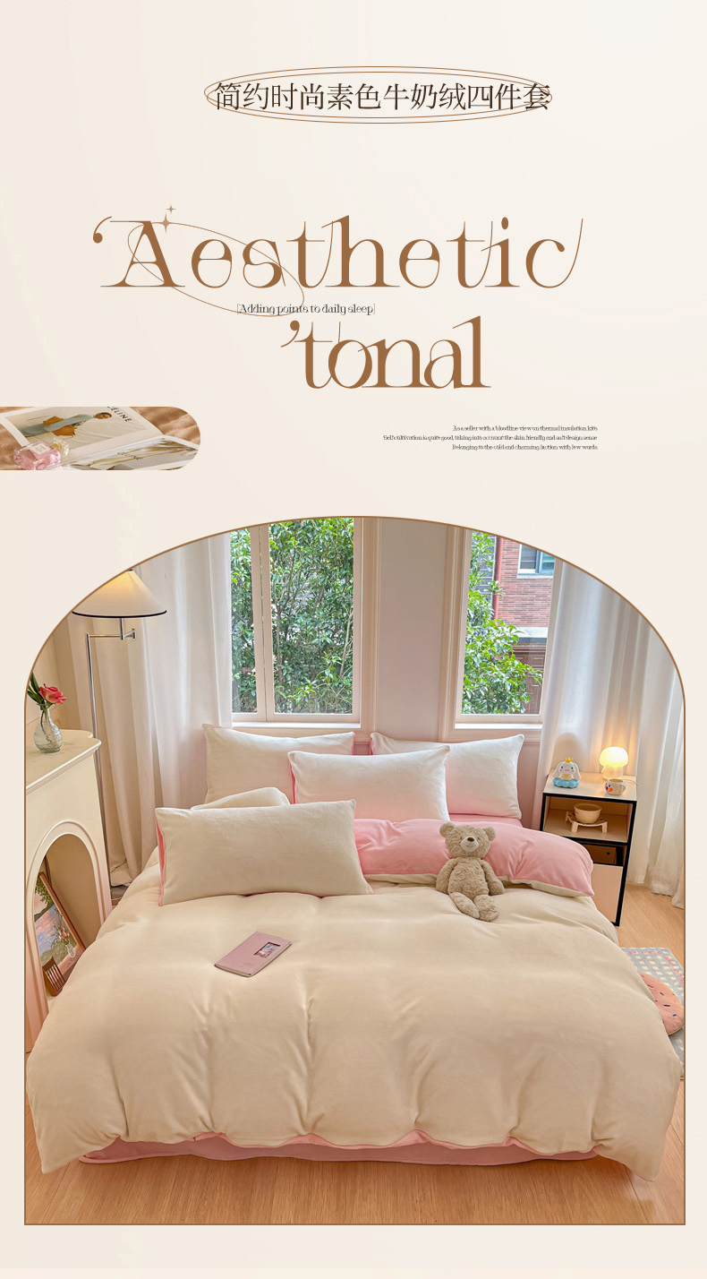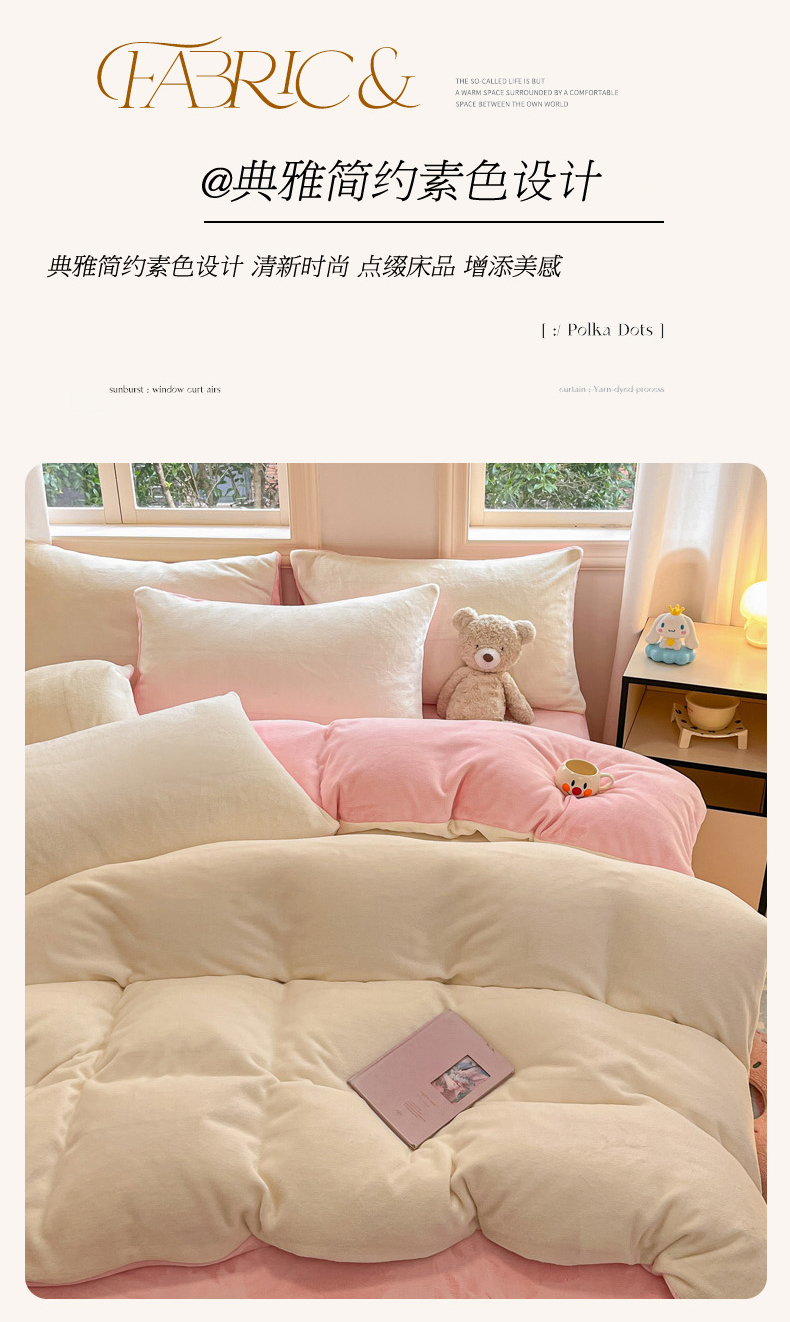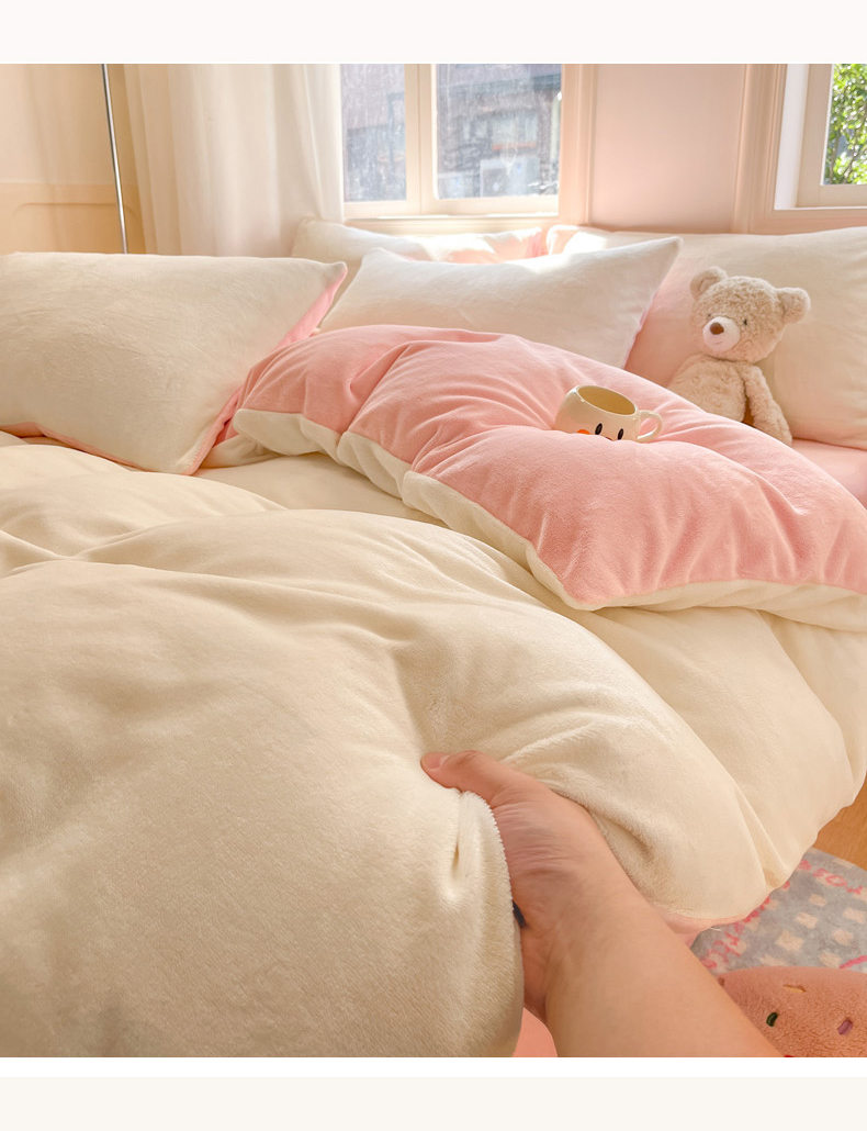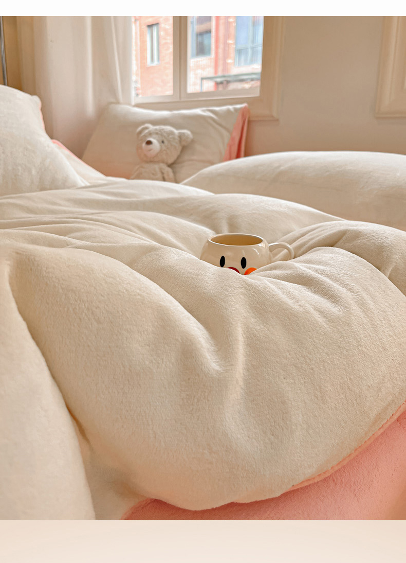 当前位置: 91家纺网 > 商品网购 > 床品套件 > 四件套 > 牛奶绒四件套 > 慕澄家纺 2024新款纯色双拼牛奶绒四件套 奶白+柔粉