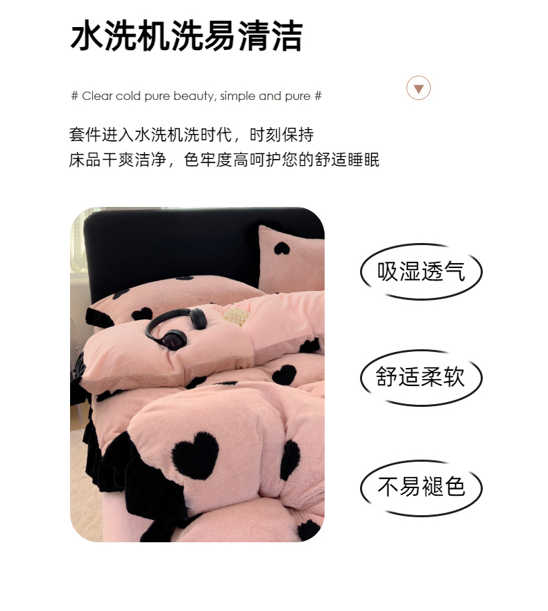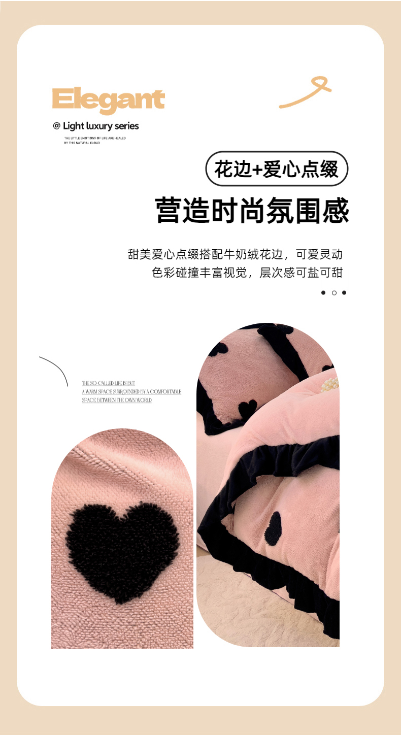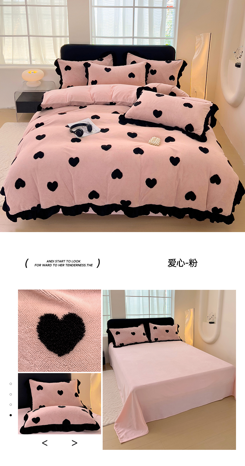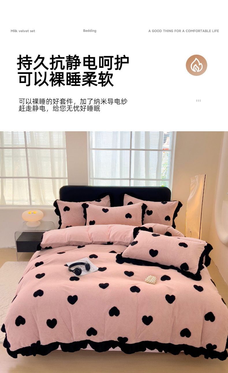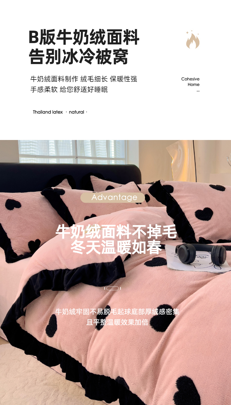 商品名称:米莱家纺 2024新款高克重剪花雕花阳离子牛奶绒四件套 爱心-粉