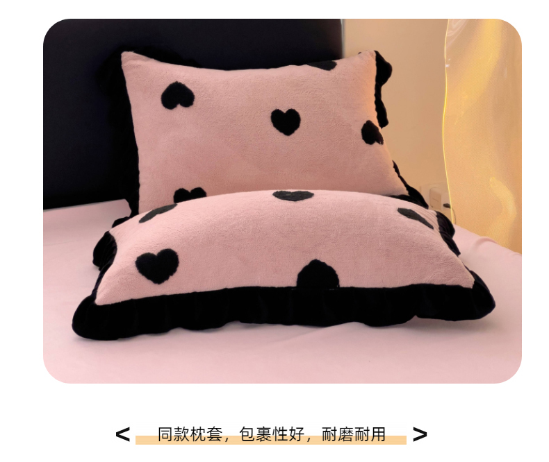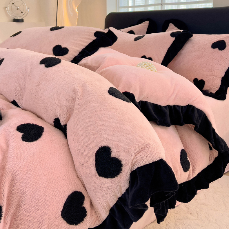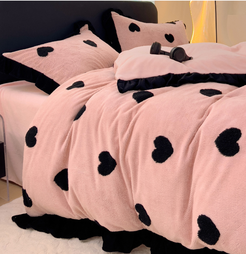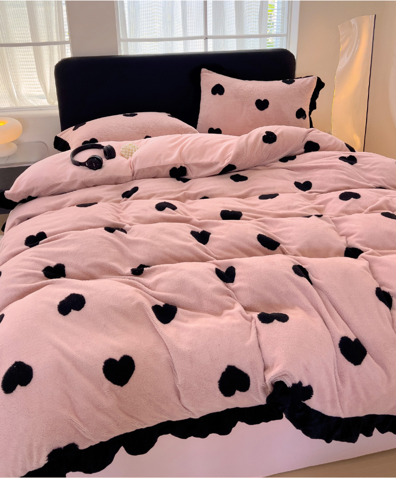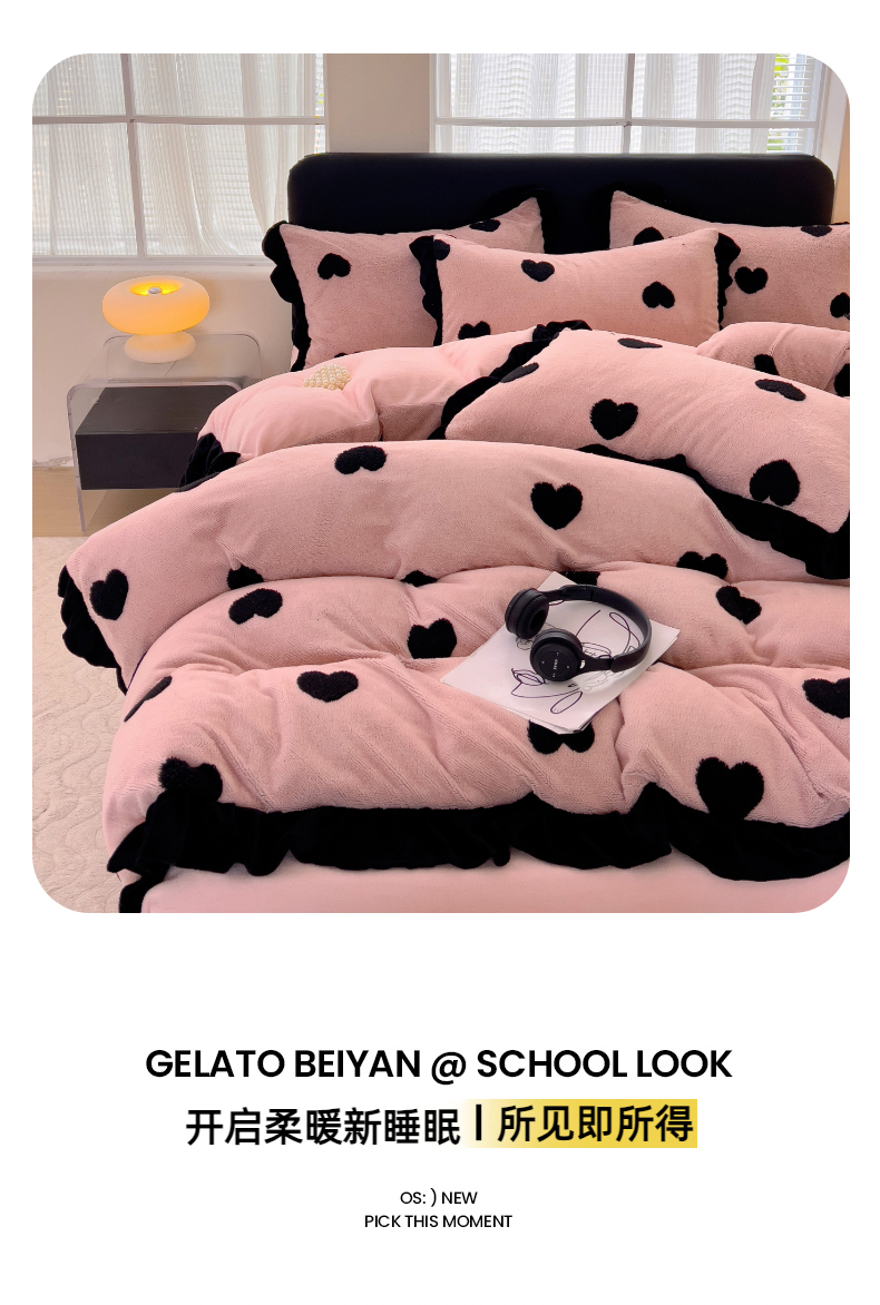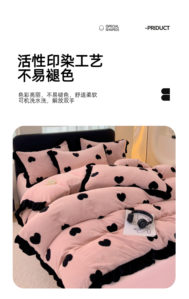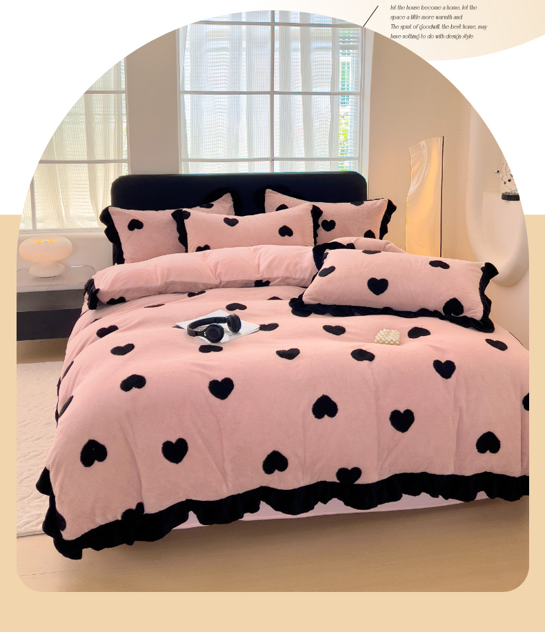 商品名称:米莱家纺 2024新款高克重剪花雕花阳离子牛奶绒四件套 爱心-粉