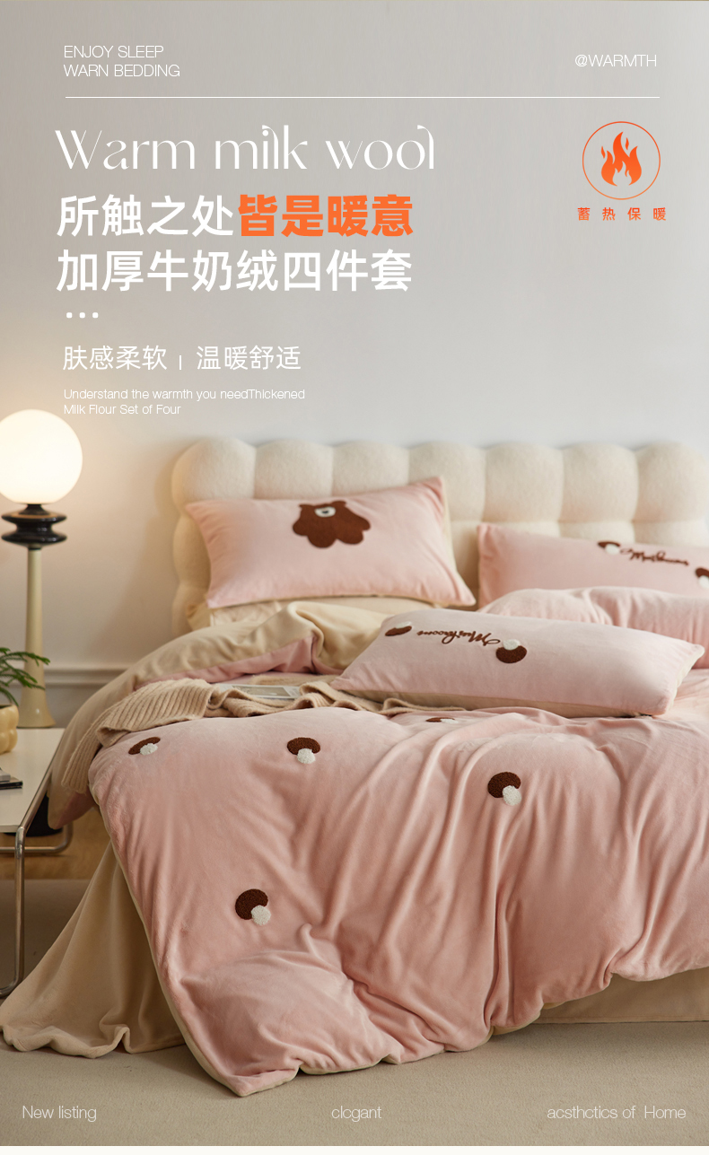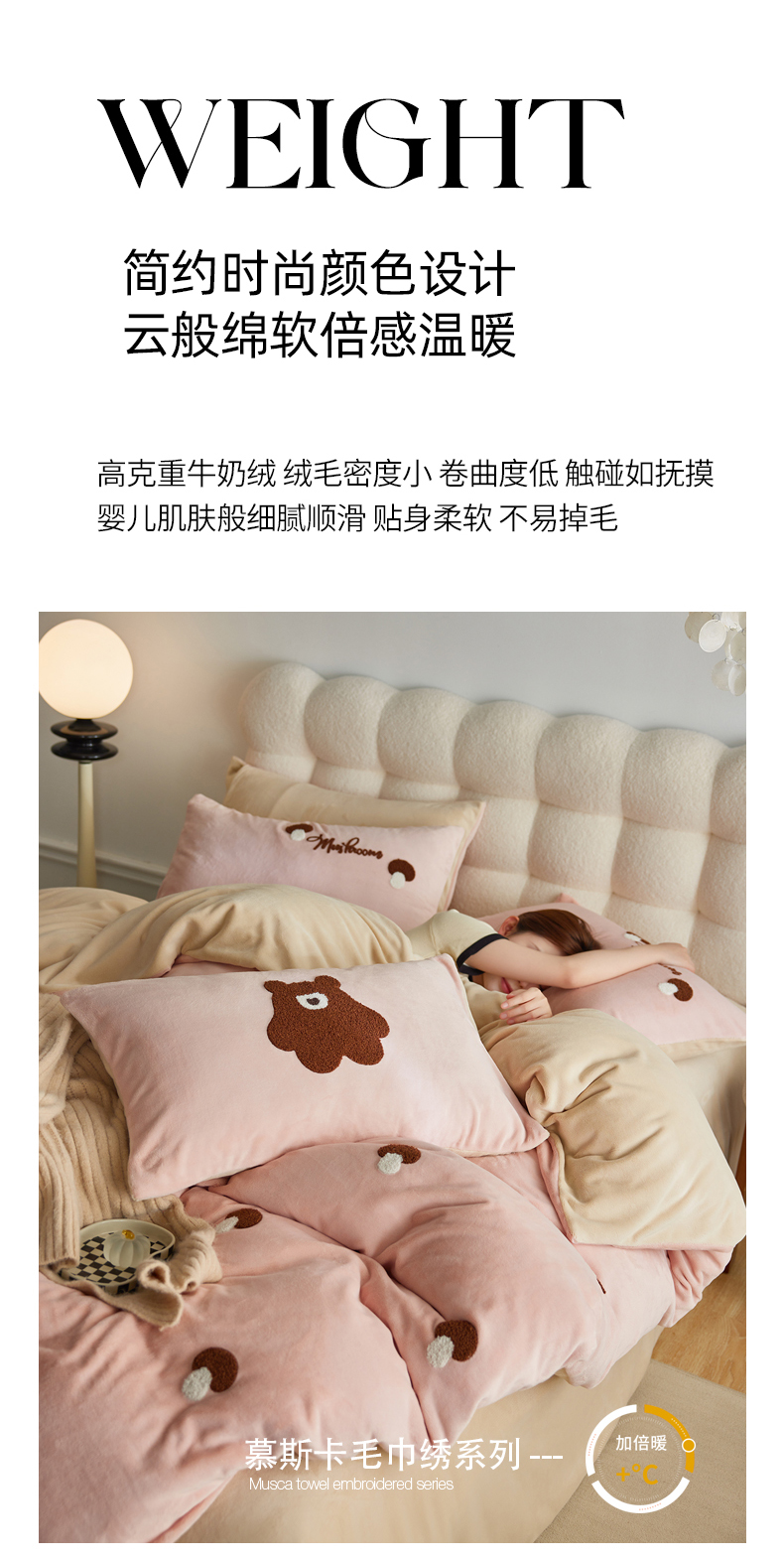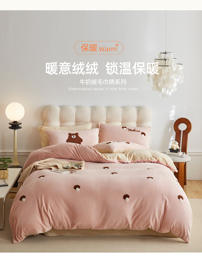 千朵森 2024新款毛巾绣牛奶绒四件套-慕斯卡 风格一 慕斯卡-玉粉槟