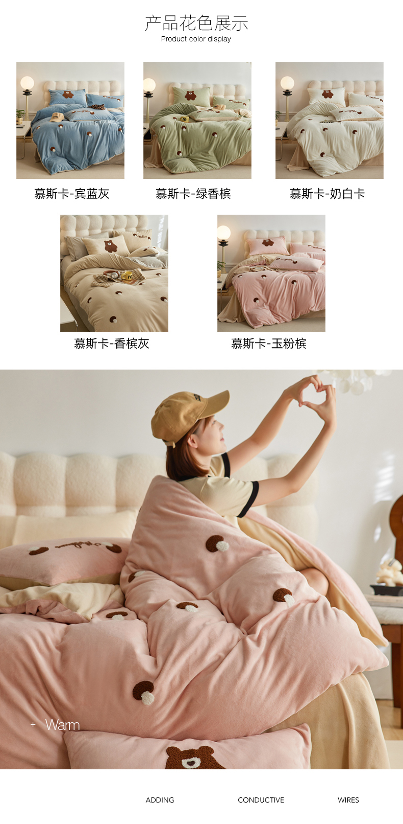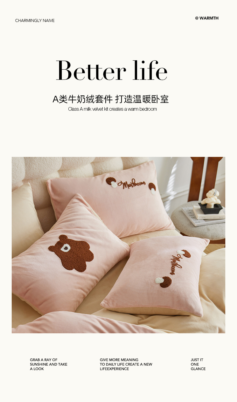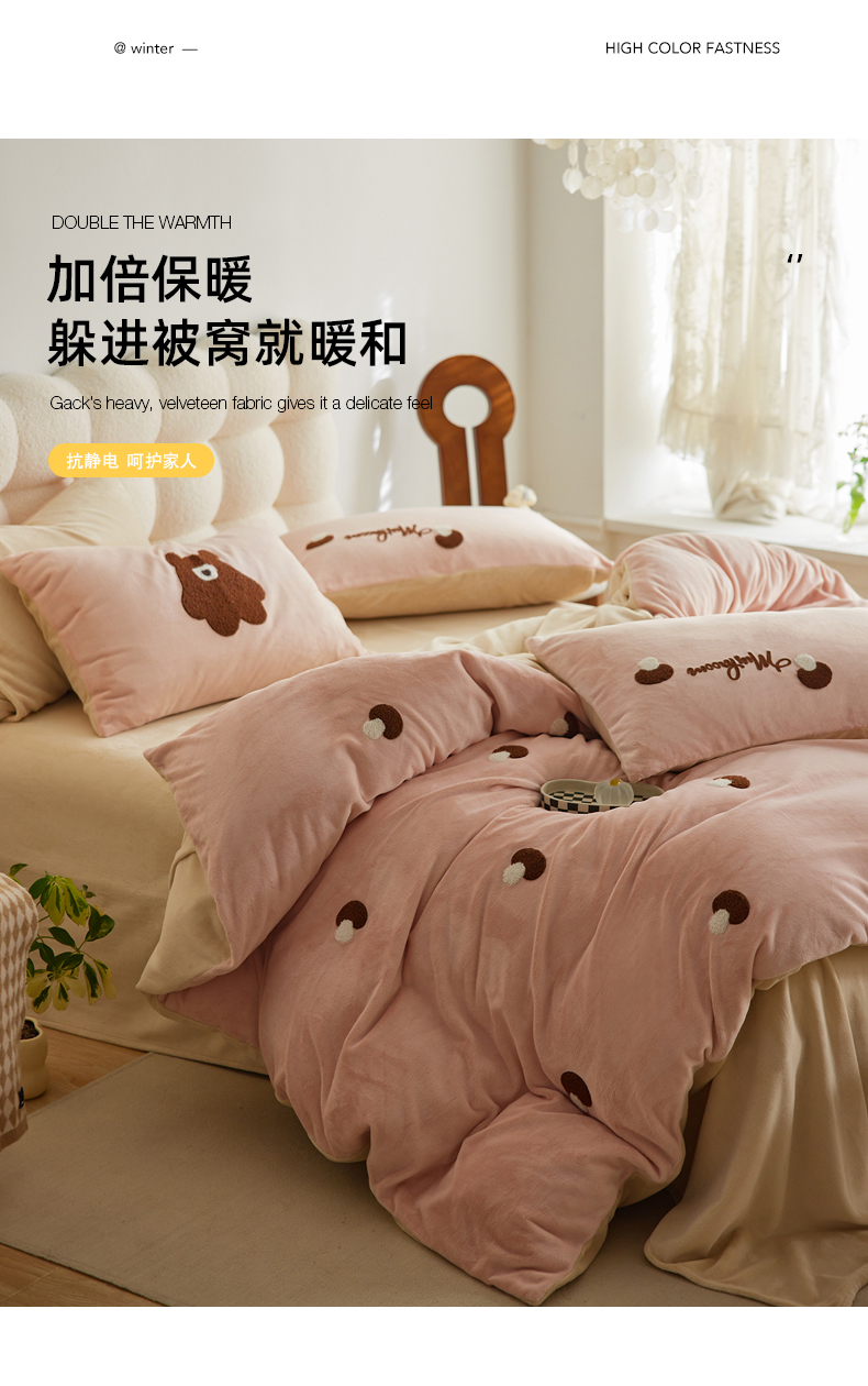千朵森 2024新款毛巾绣牛奶绒四件套-慕斯卡 风格一 慕斯卡-玉粉槟