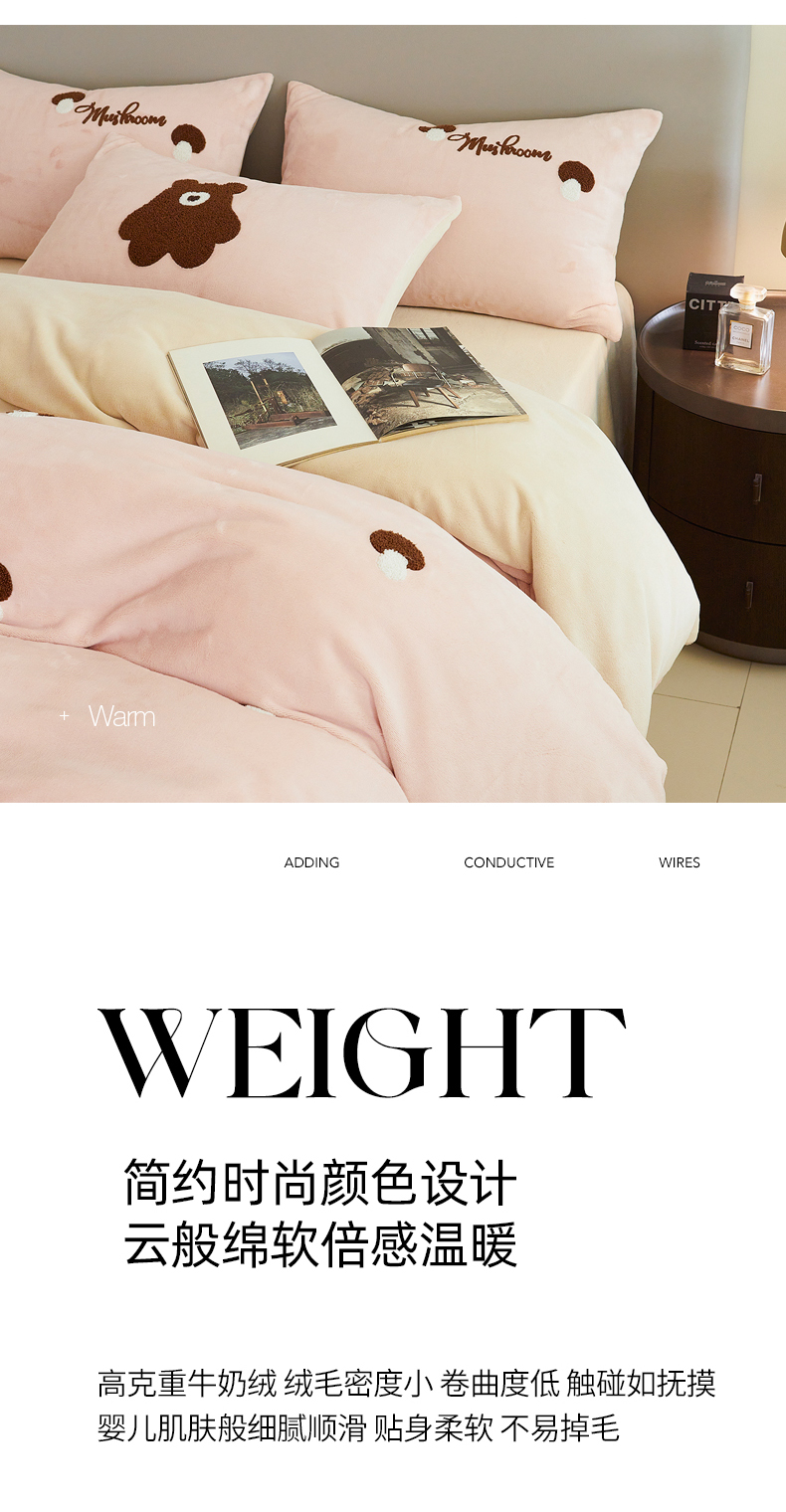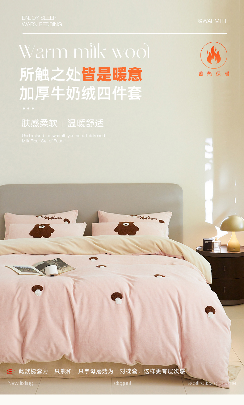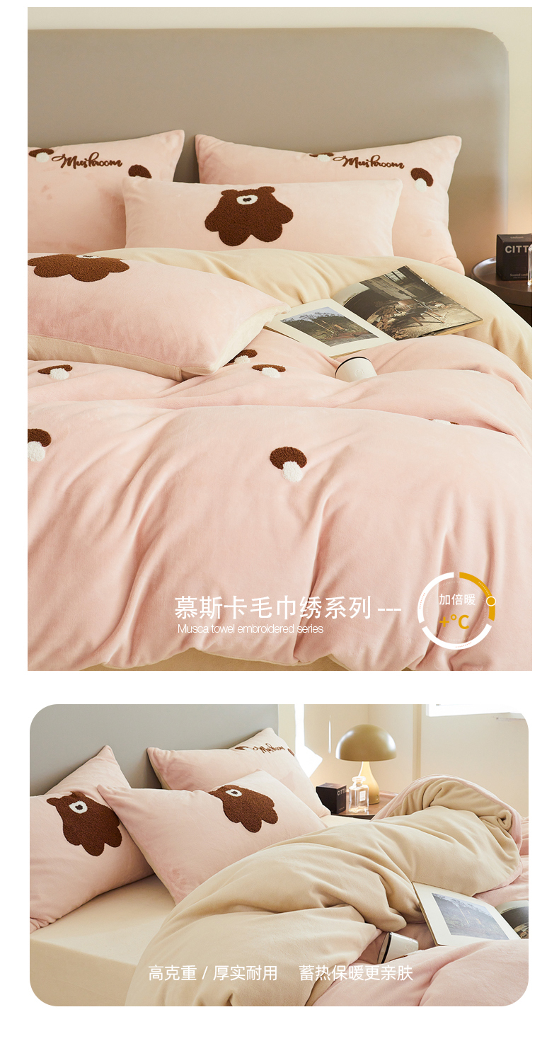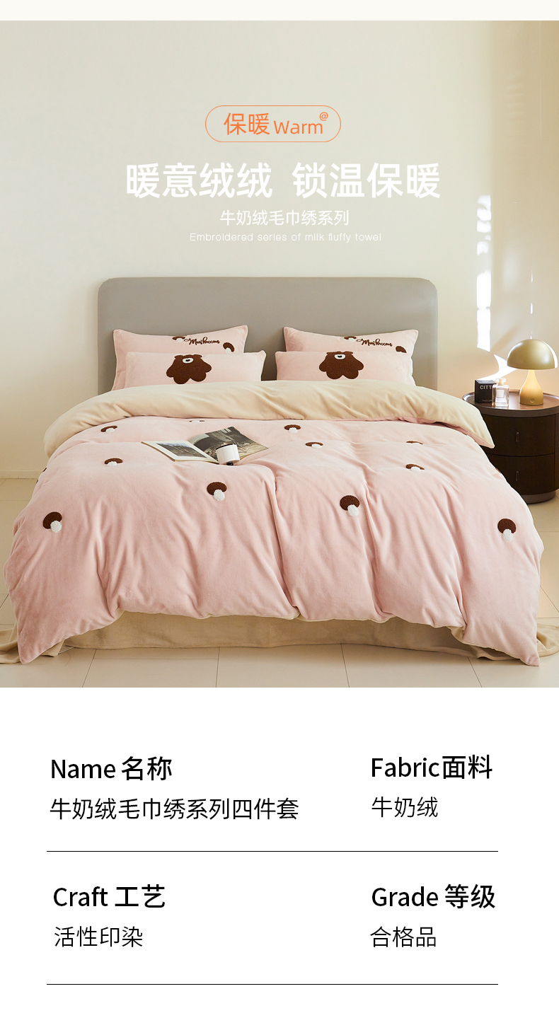 千朵森 2024新款毛巾绣牛奶绒四件套-慕斯卡 风格二 慕斯卡-玉粉槟