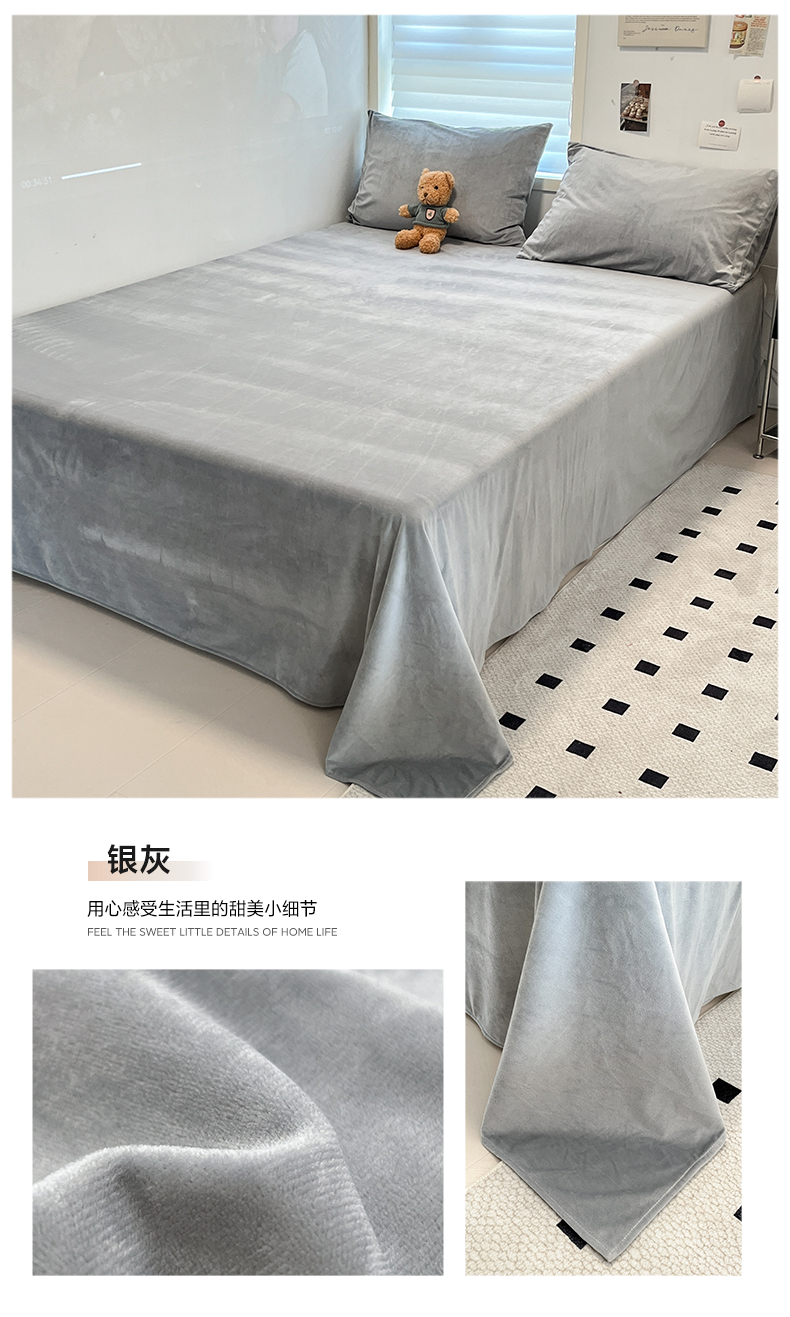 盛馨家纺 2024新款高克重加厚保暖纯色宝宝绒系列单床单 浅草绿