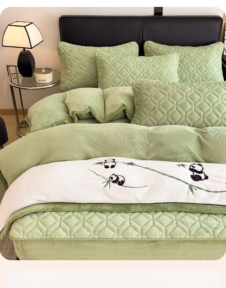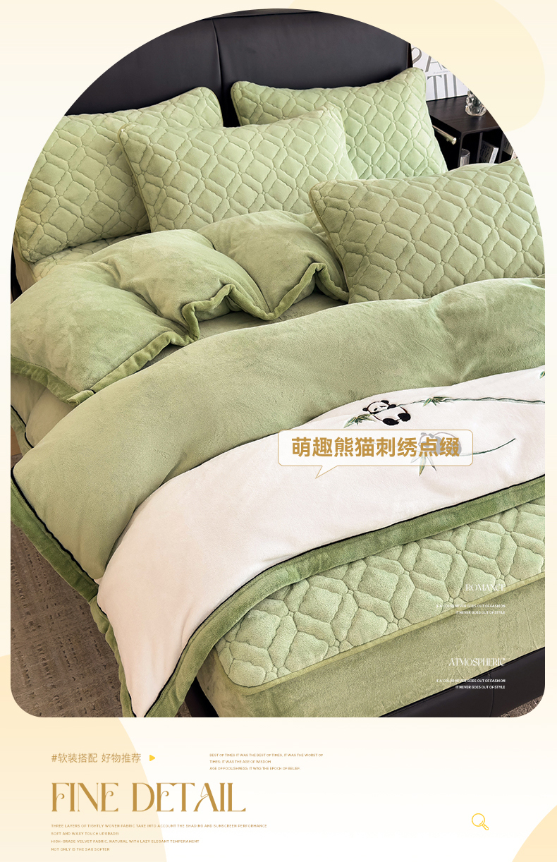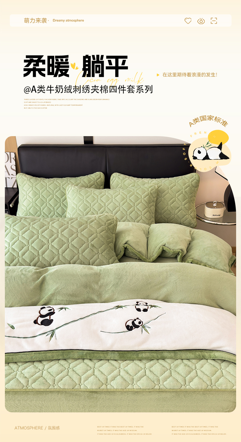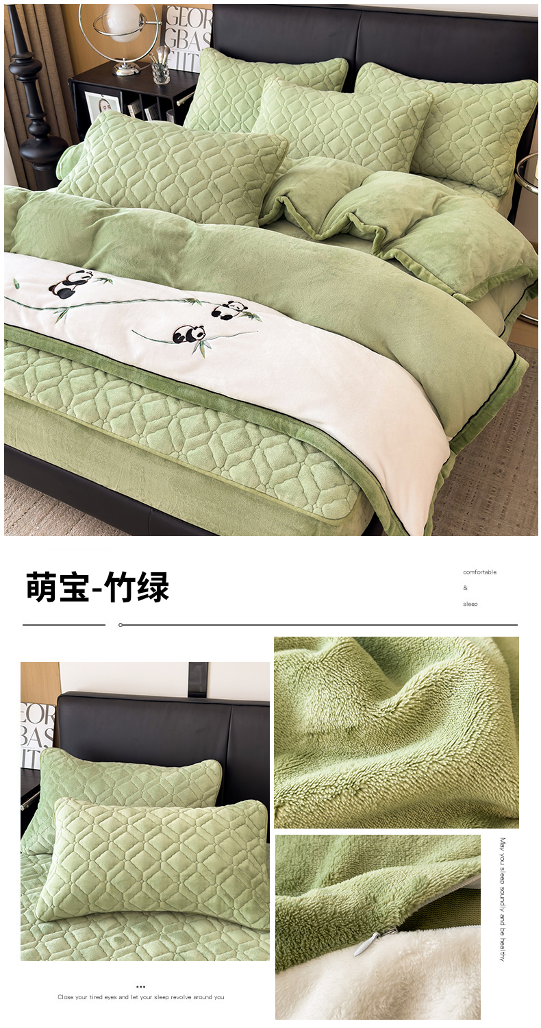 当前位置: 91家纺网 > 商品网购 > 床品套件 > 四件套 > 牛奶绒四件套 > 2024新款A类牛奶绒熊猫刺绣夹棉床笠款四件套 萌宝-竹绿