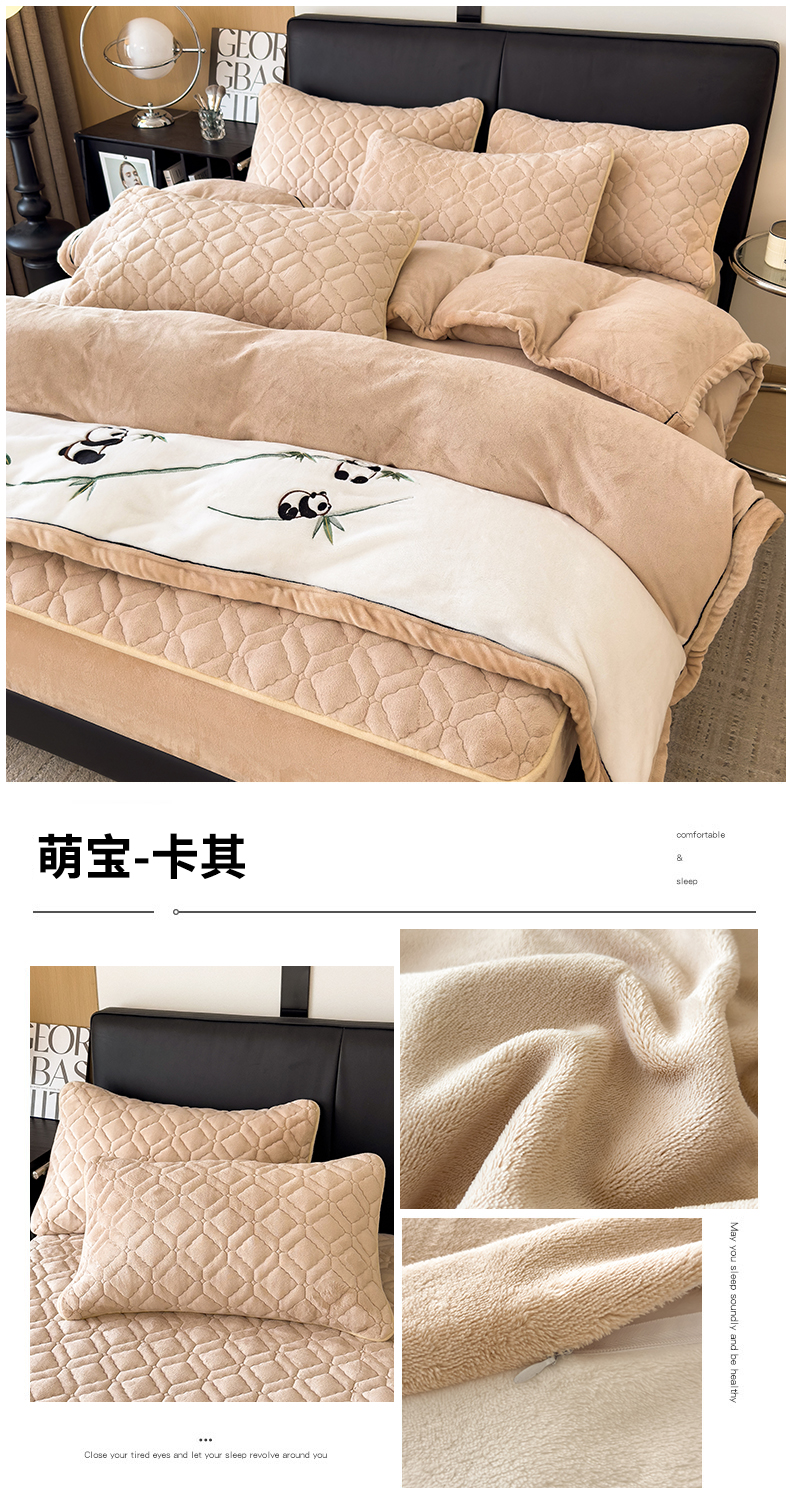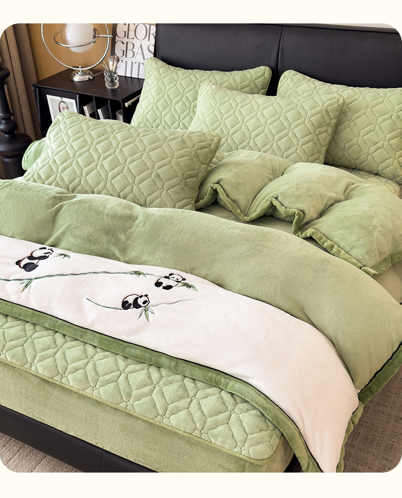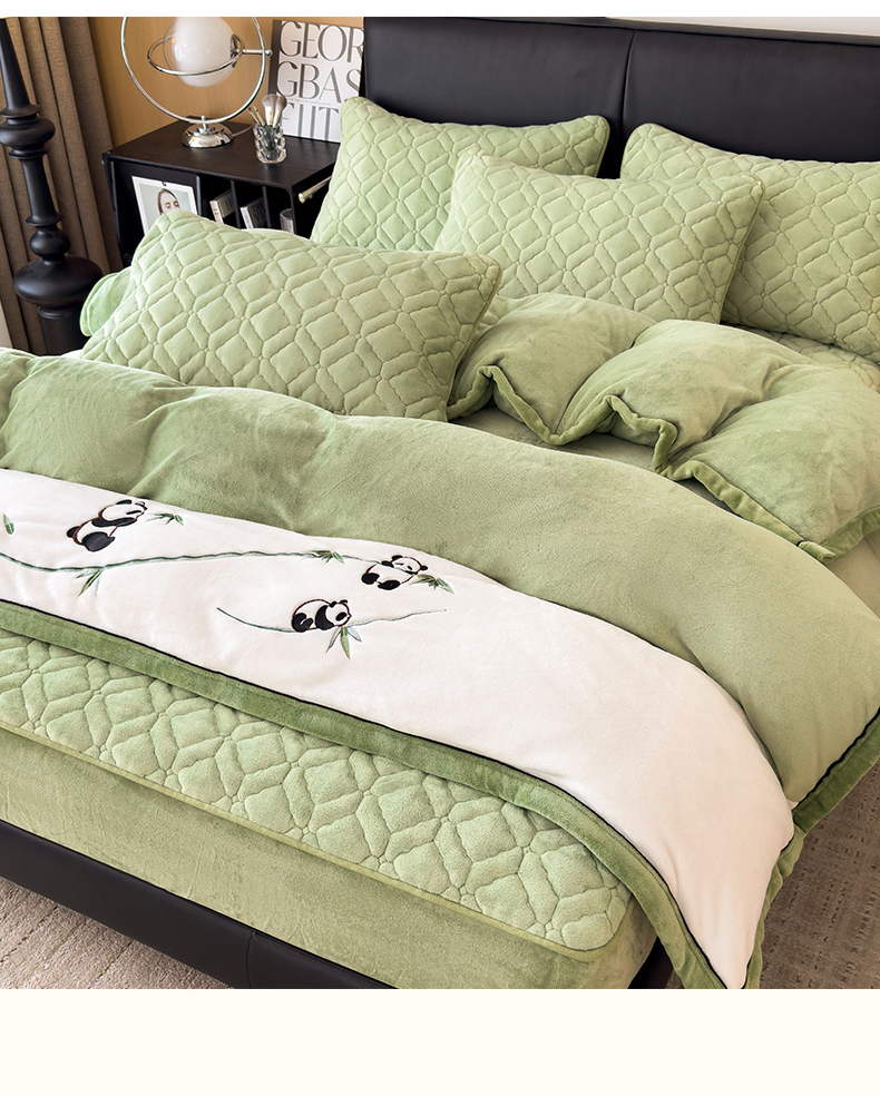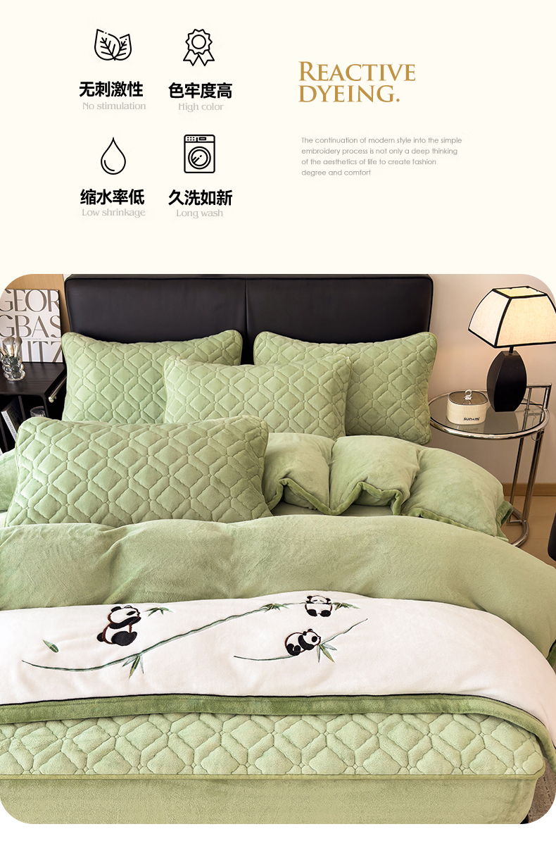 当前位置: 91家纺网 > 商品网购 > 床品套件 > 四件套 > 牛奶绒四件套 > 2024新款A类牛奶绒熊猫刺绣夹棉床笠款四件套 萌宝-竹绿
