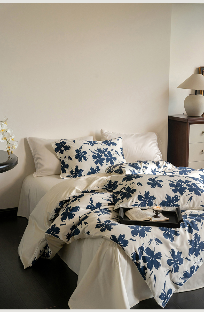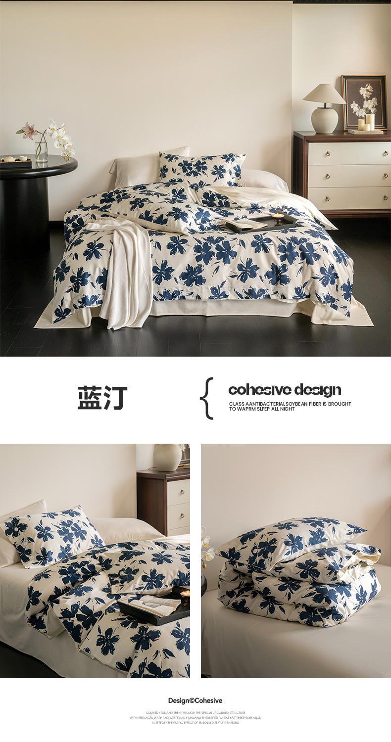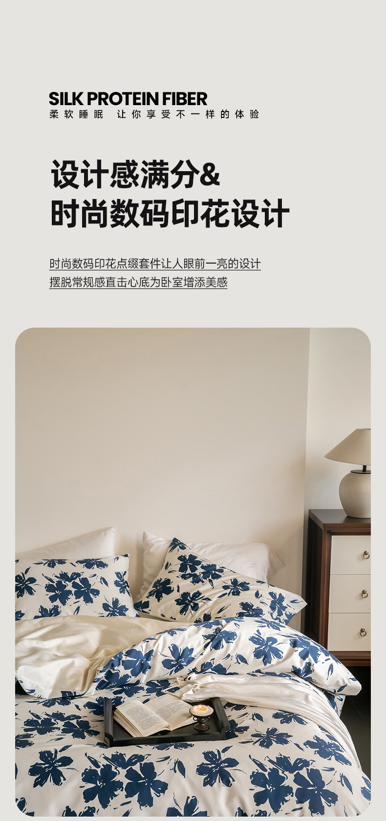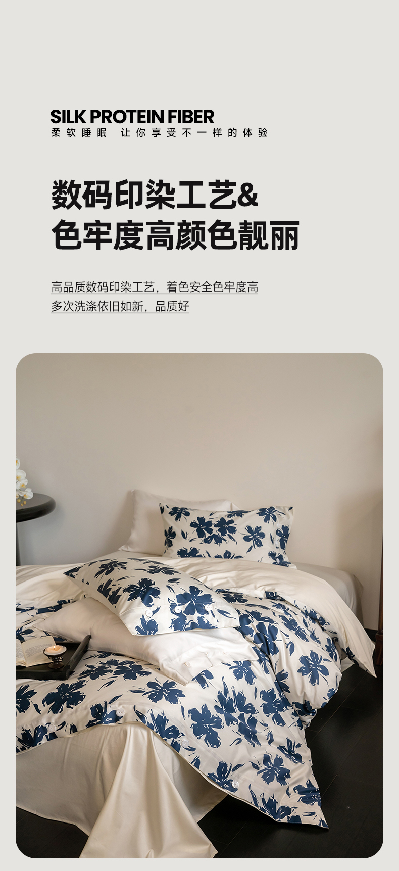 华超针织 2024新款长绒棉5050数码印花四件套 蓝汀