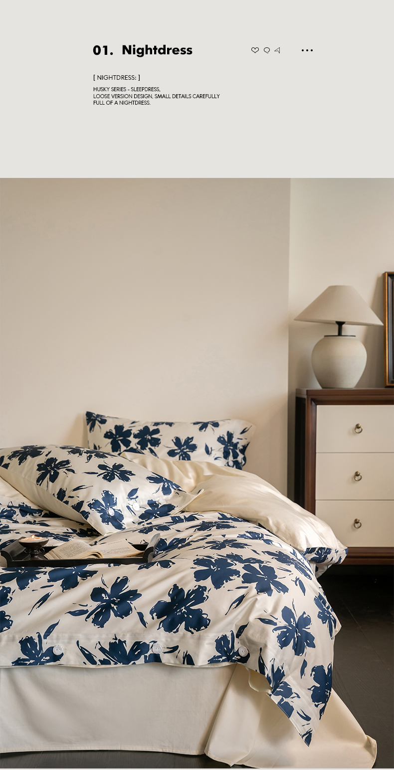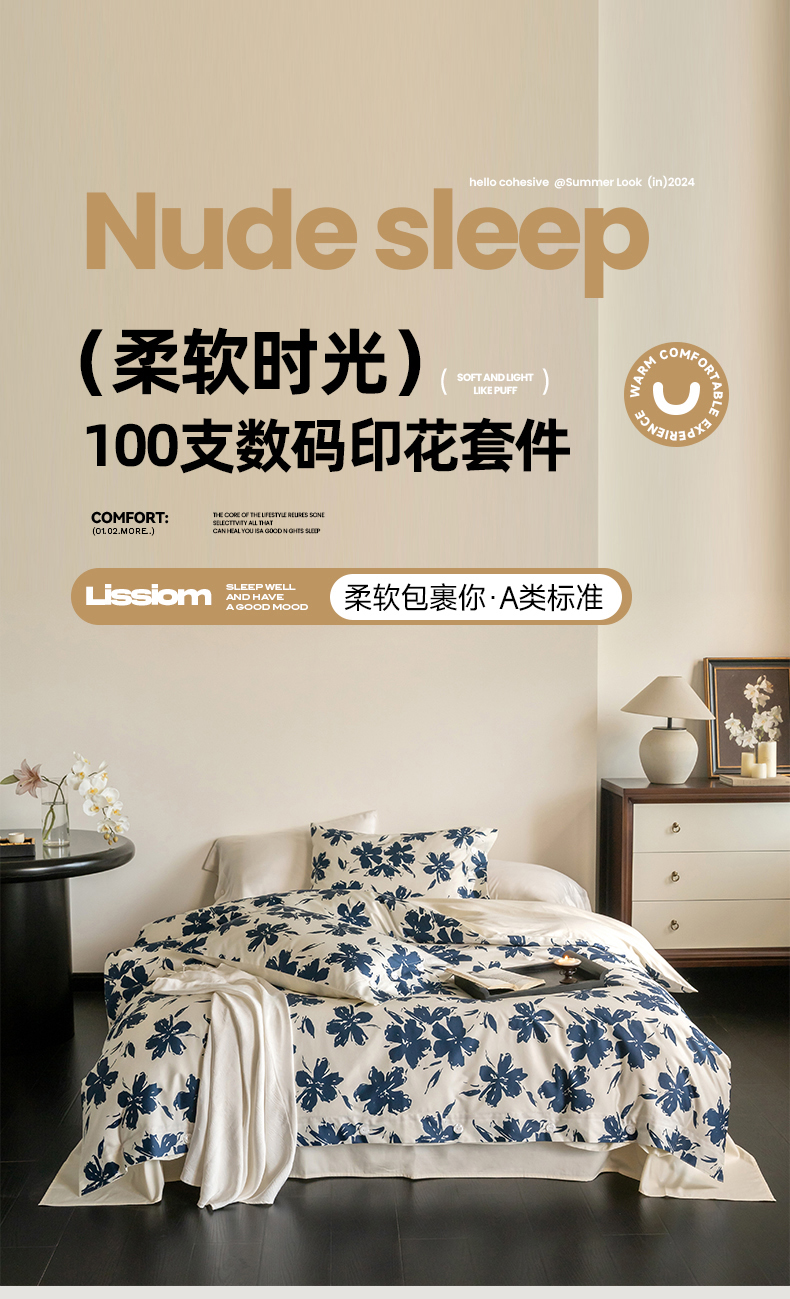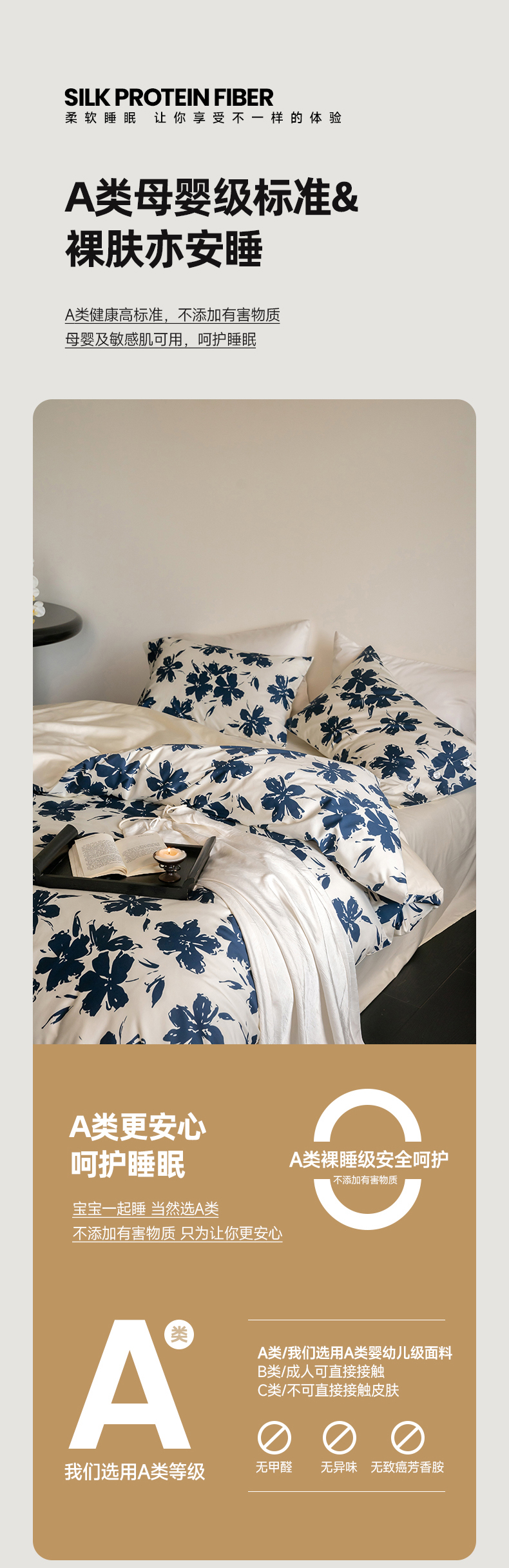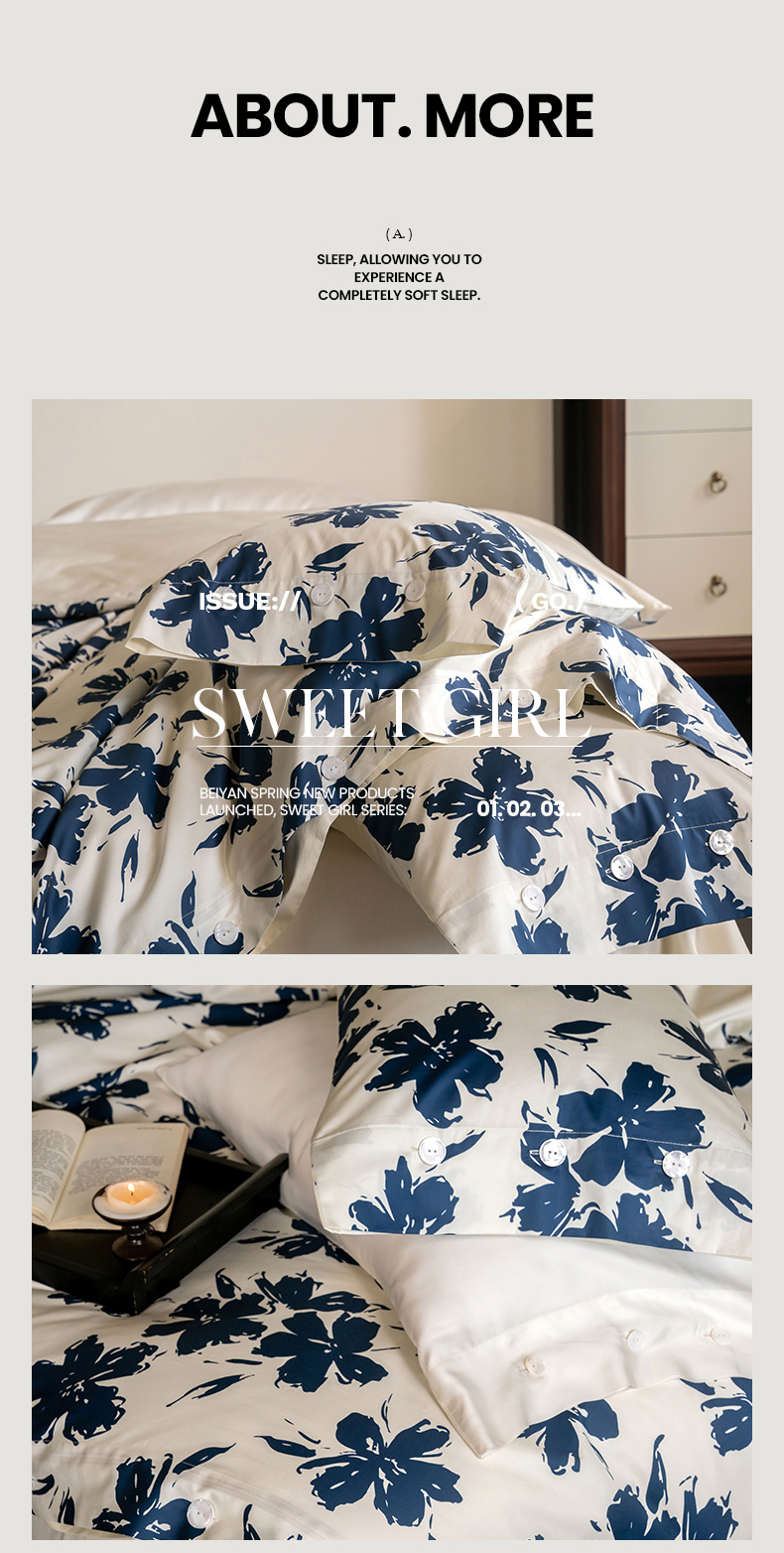 华超针织 2024新款长绒棉5050数码印花四件套 蓝汀
