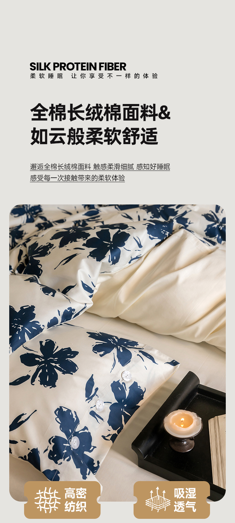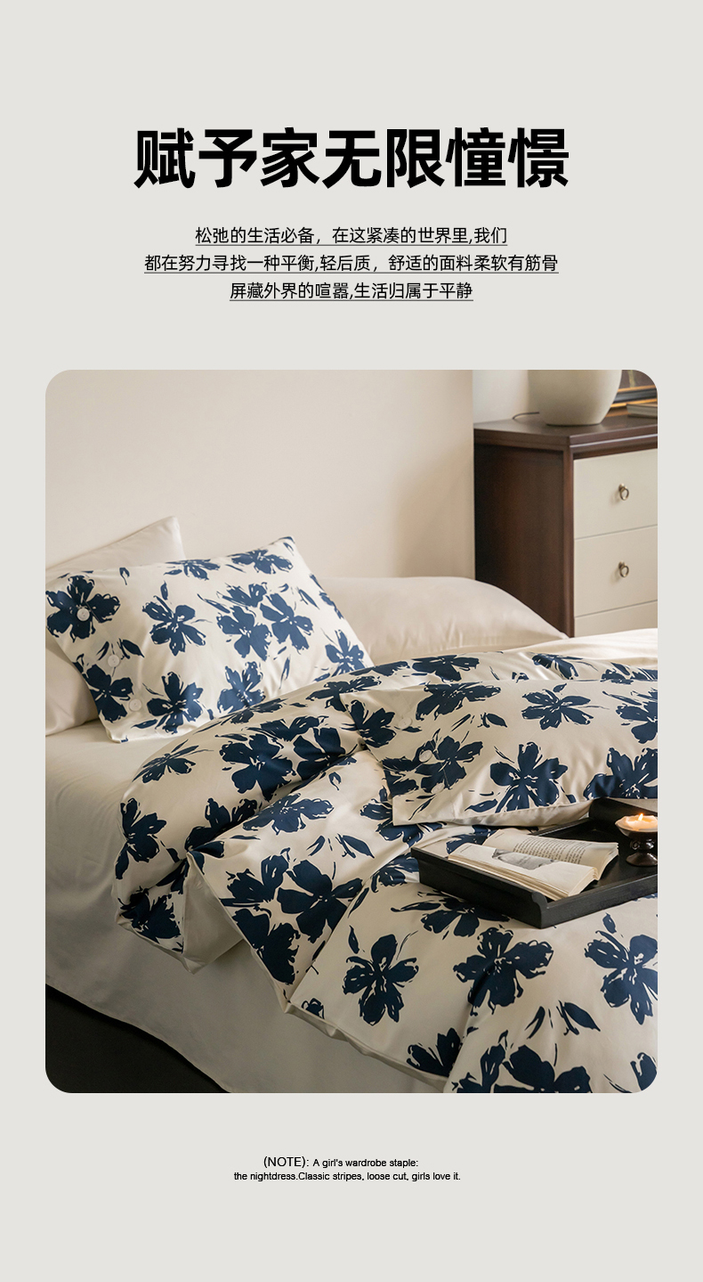 商品名称:华超针织 2024新款长绒棉5050数码印花四件套 蓝汀
