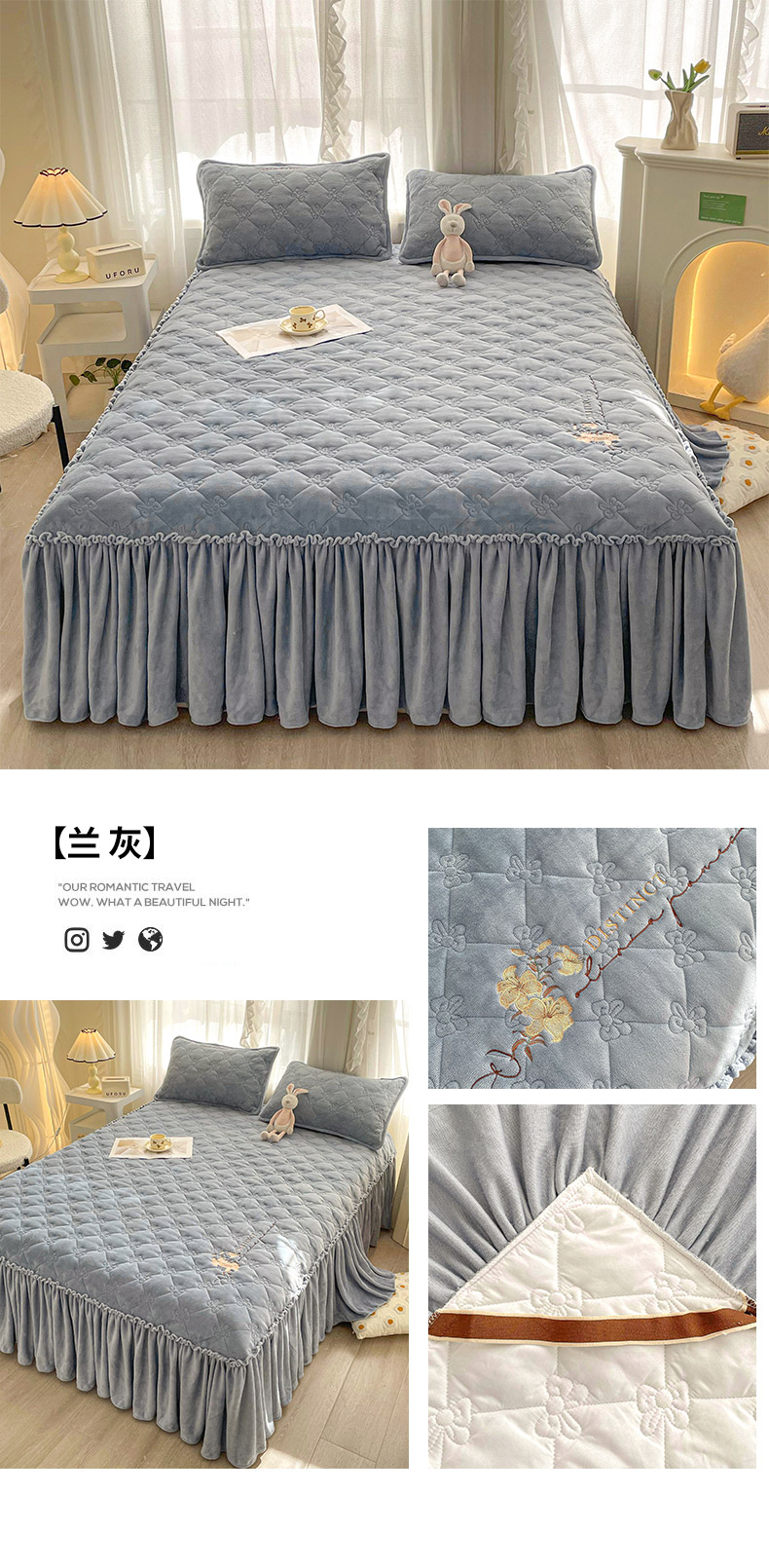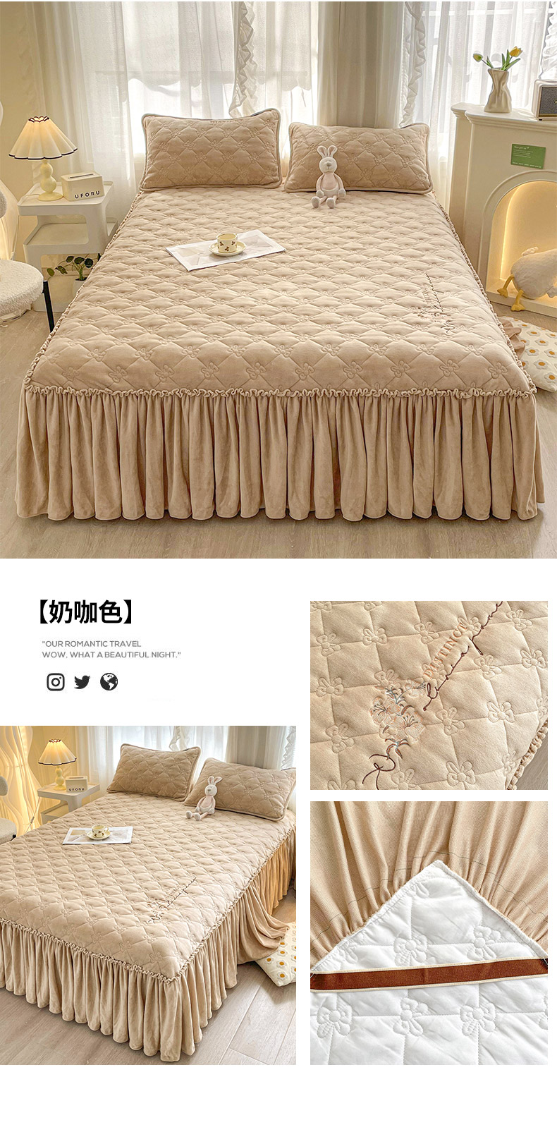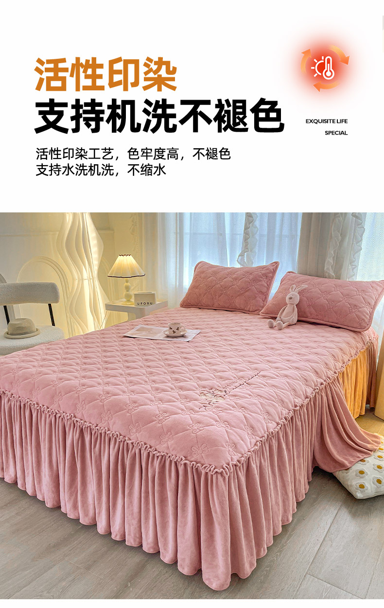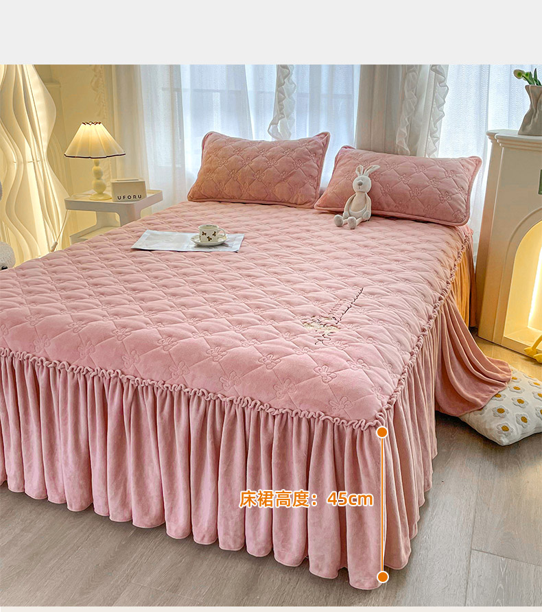 (总)好眠好梦家纺 2024新款A类牛奶绒床裙-百合花开