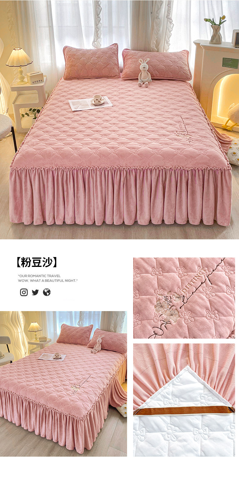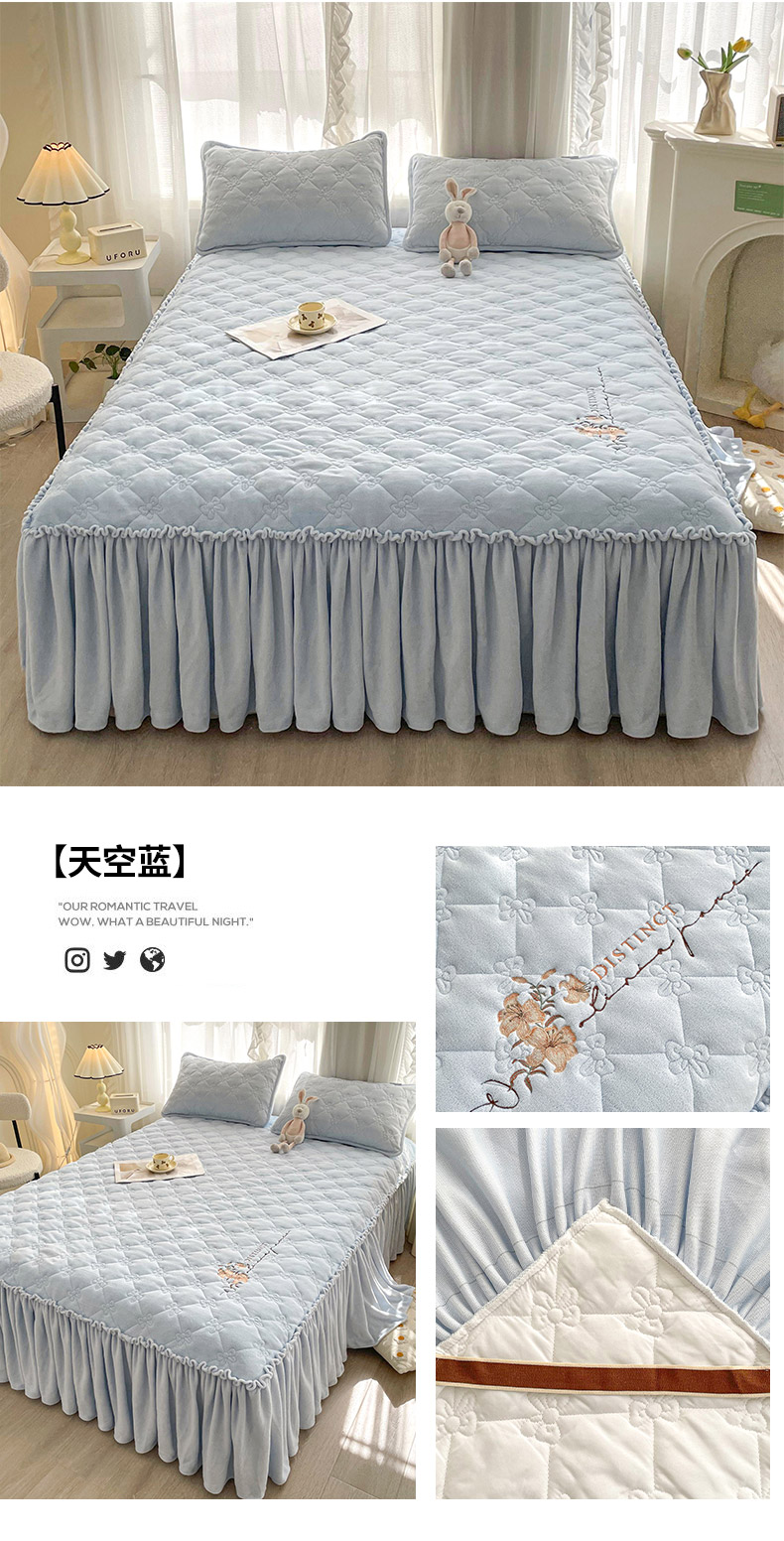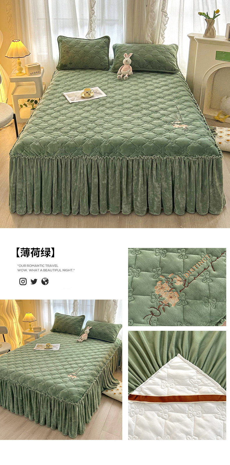 (总)好眠好梦家纺 2024新款A类牛奶绒床裙-百合花开