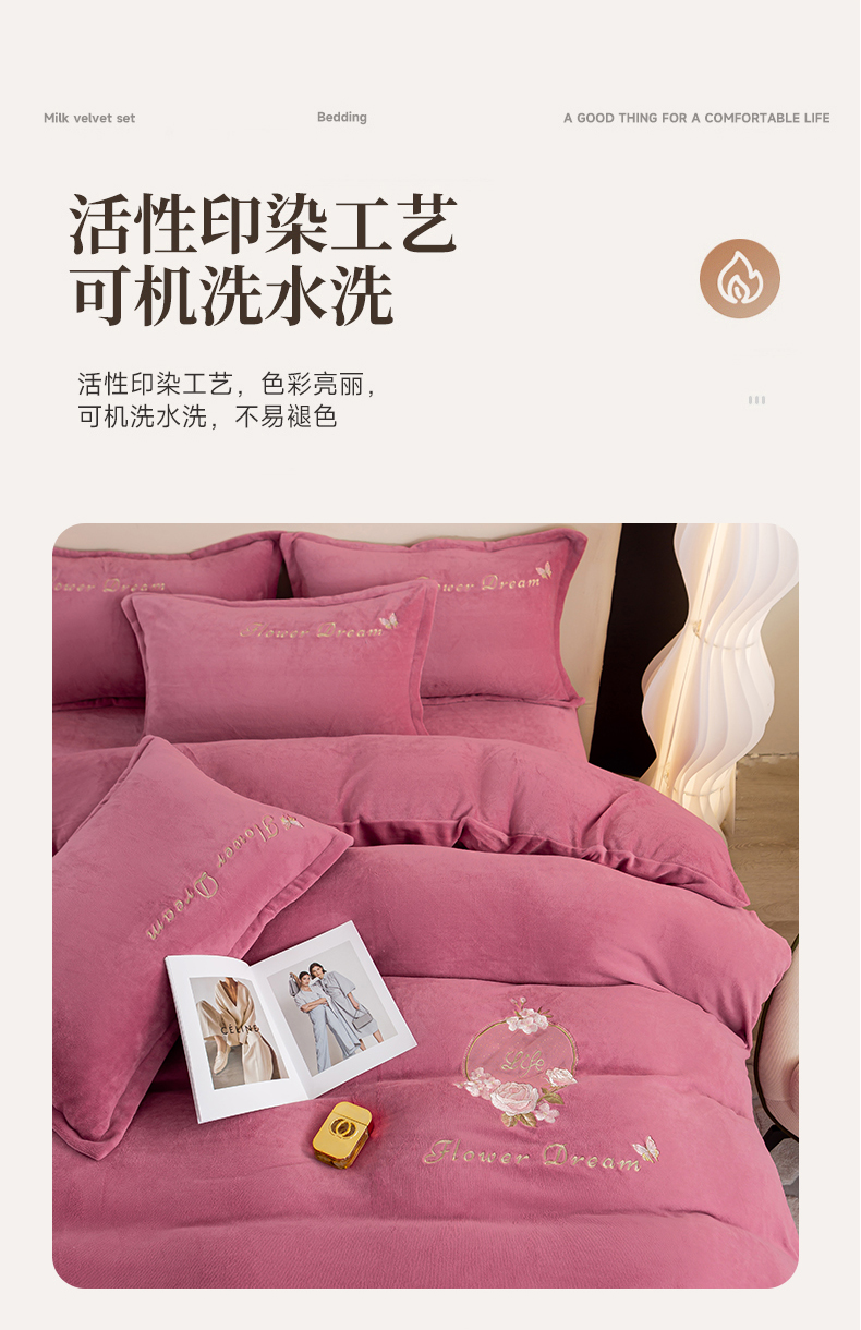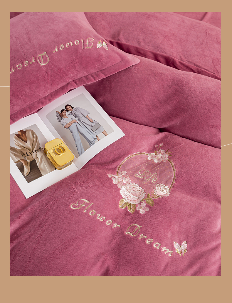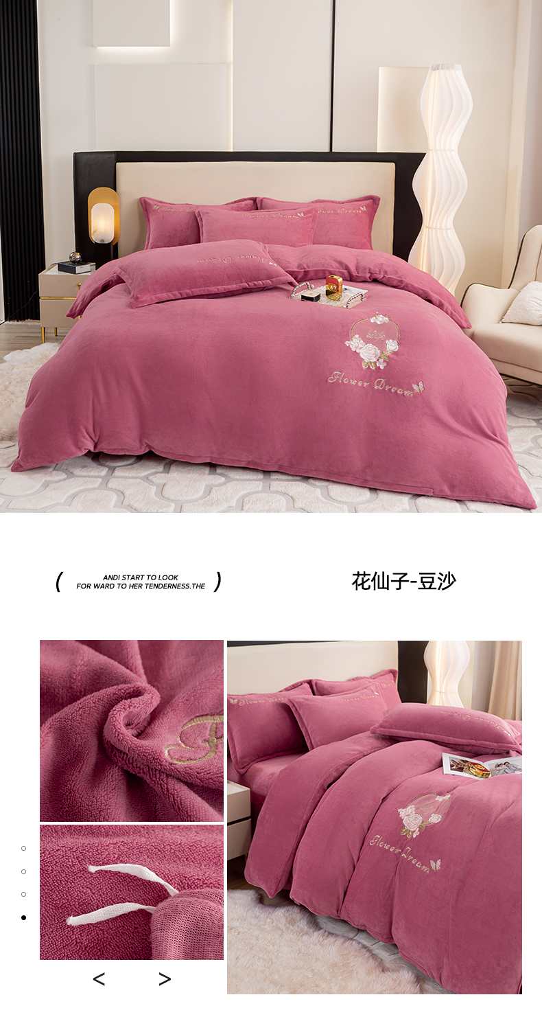 晶缦家纺 2024新款高克重牛奶绒刺绣花四件套 花仙子-豆沙