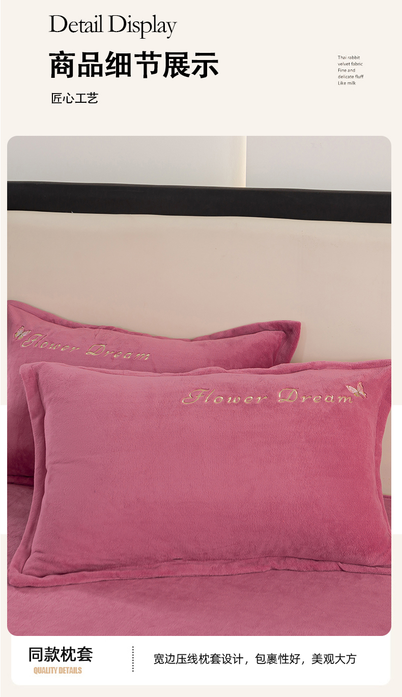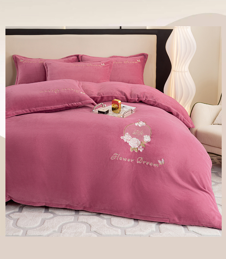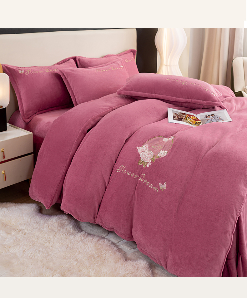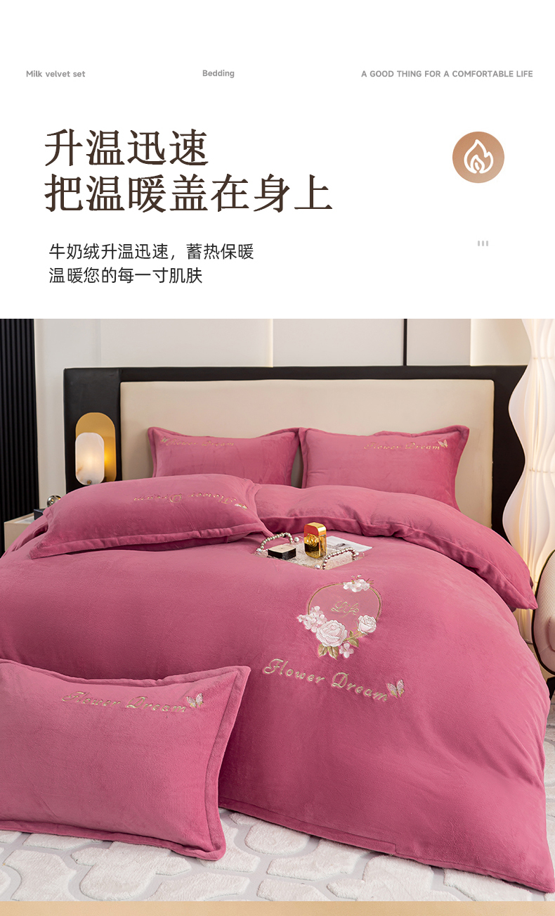 晶缦家纺 2024新款高克重牛奶绒刺绣花四件套 花仙子-豆沙