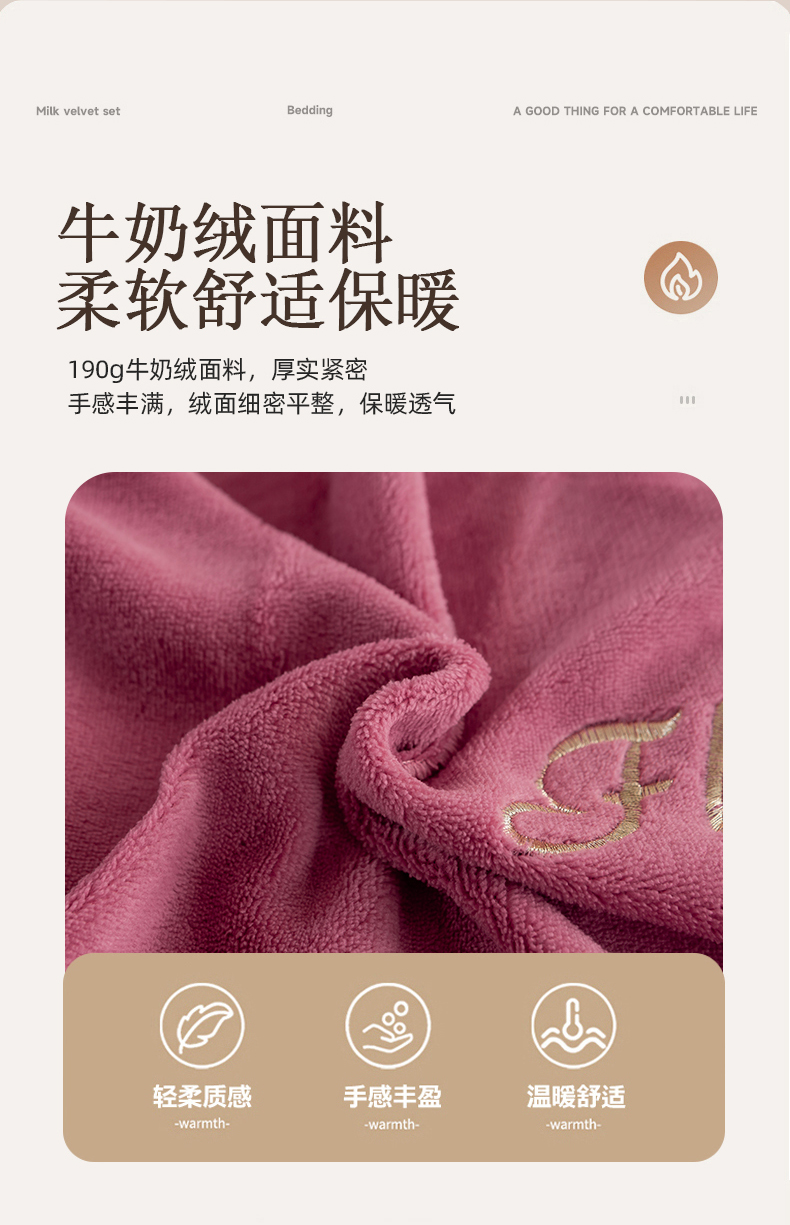 商品名称:晶缦家纺 2024新款高克重牛奶绒刺绣花四件套 花仙子-豆沙