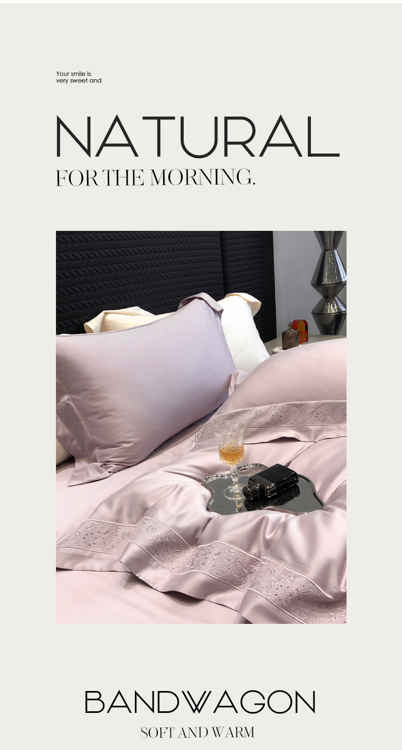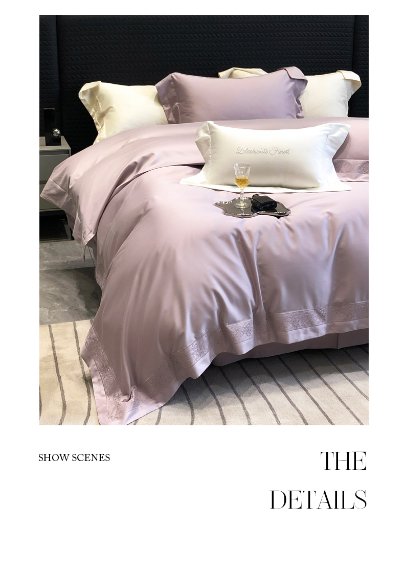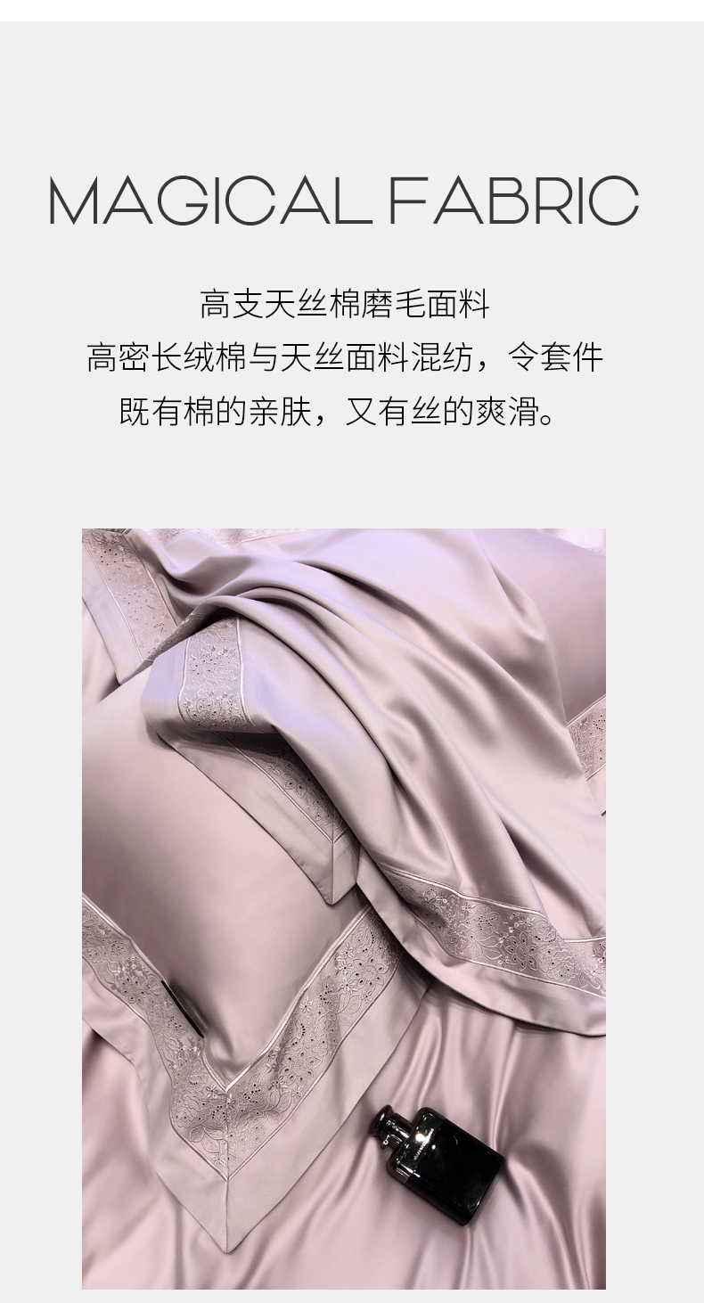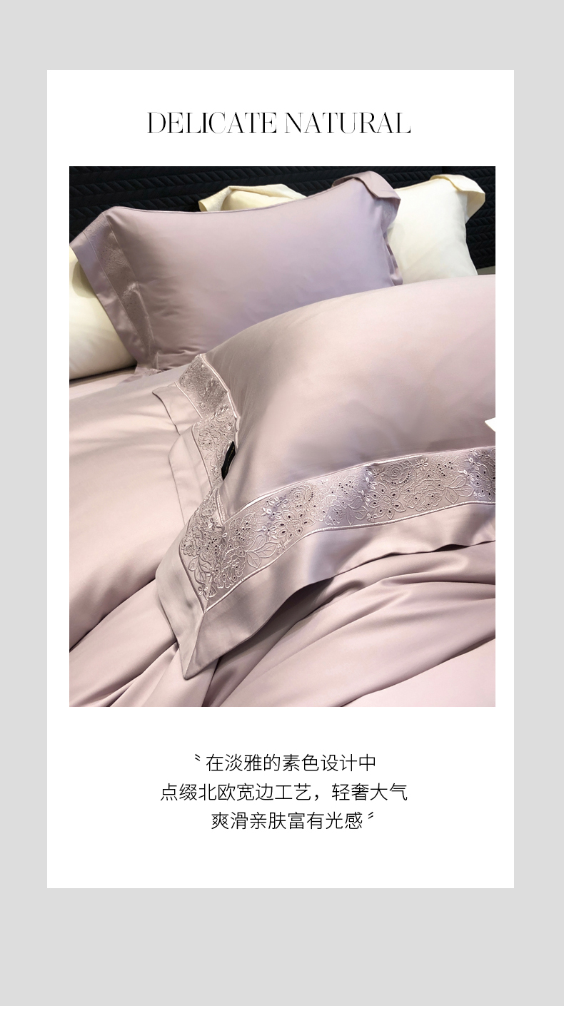(总)黑白森林2024款 80X80S高支天丝棉四件套镂空蕾丝花边天丝全棉,尚美-晨夕粉,尚美-古象白,尚美-青砂绿,尚美-银雪灰