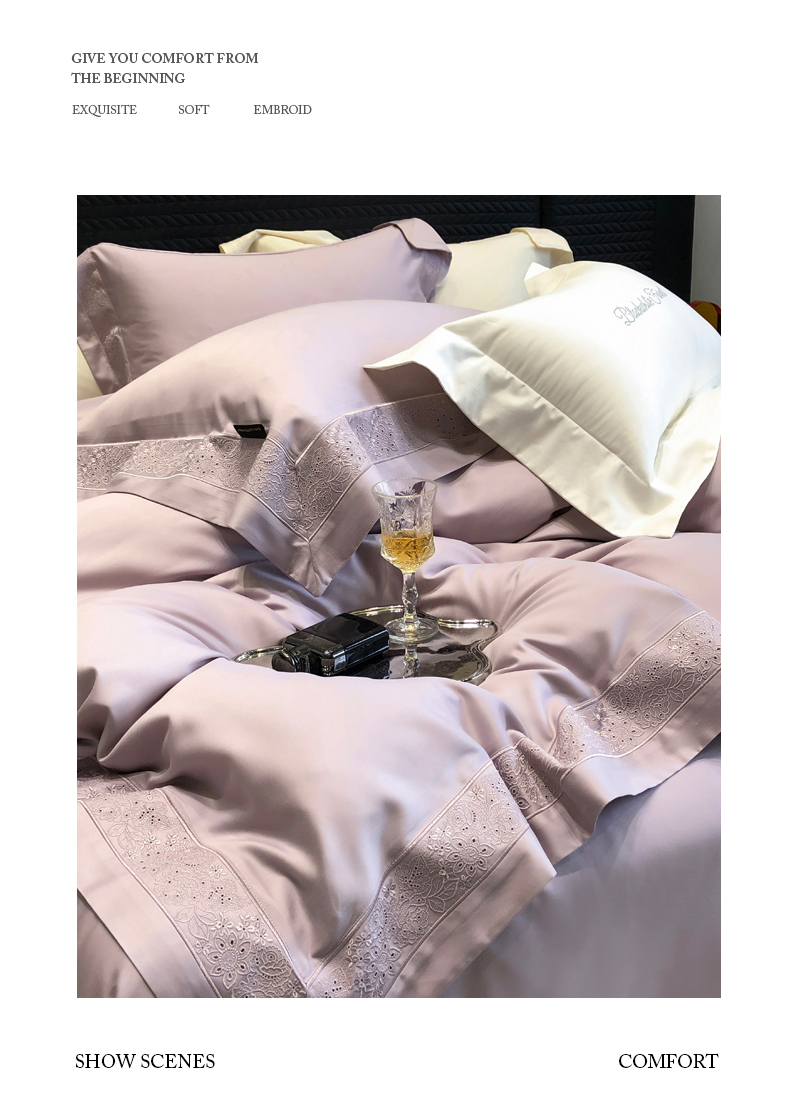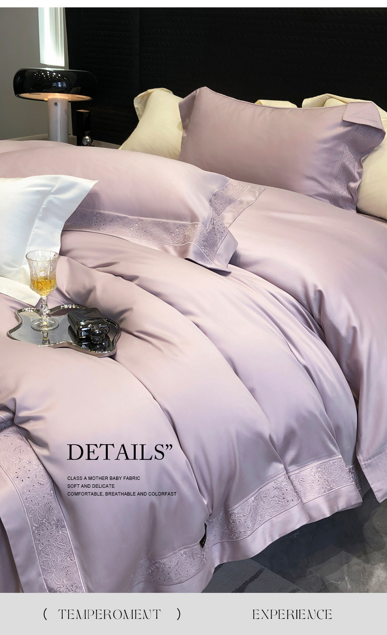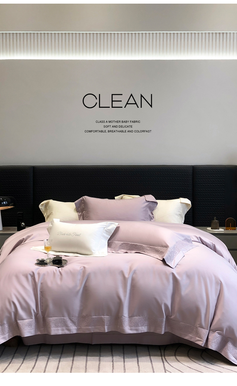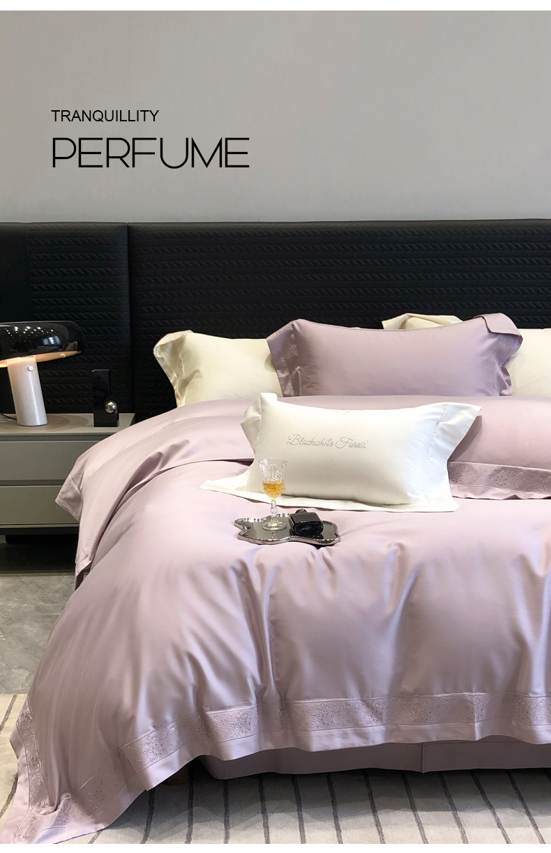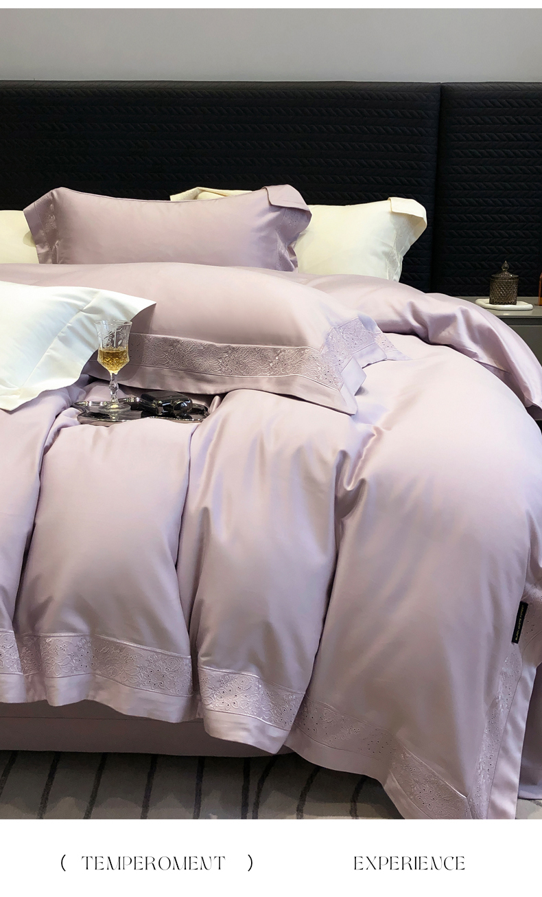 (总)黑白森林2024款 80X80S高支天丝棉四件套镂空蕾丝花边天丝全棉,尚美-晨夕粉,尚美-古象白,尚美-青砂绿,尚美-银雪灰