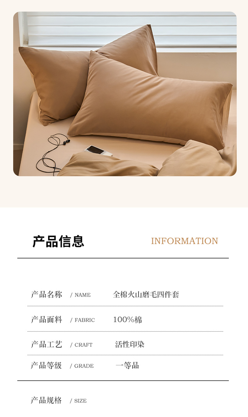 当前位置: 91家纺网 > 商品网购 > 床品套件 > 四件套 > 普通磨毛四件套 > 沐晴家纺 2024新款纯色火山保暖全棉磨毛纯色简约轻奢四件套 莫百草