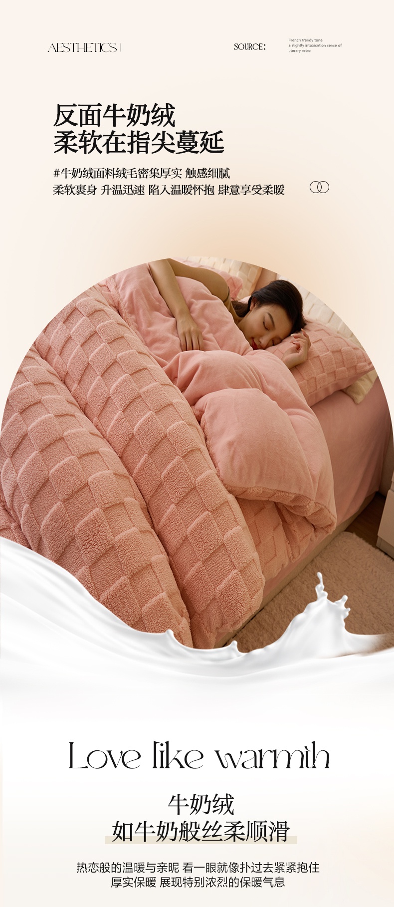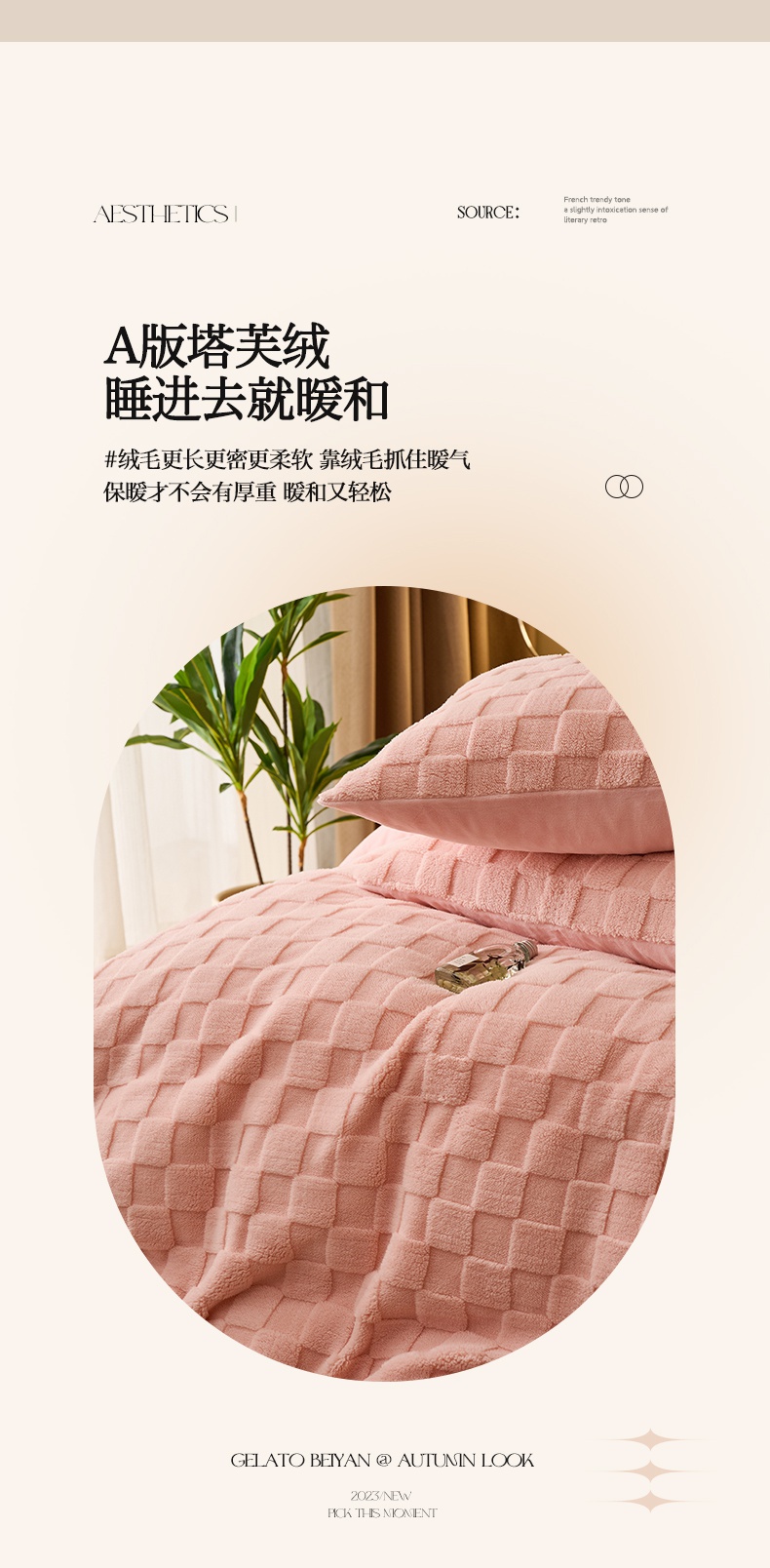 当前位置: 91家纺网 > 商品网购 > 床品套件 > 四件套 > 牛奶绒四件套 > 晨曦家纺 2024新款塔芙绒牛奶绒四件套-初暖系列 初暖-童话粉