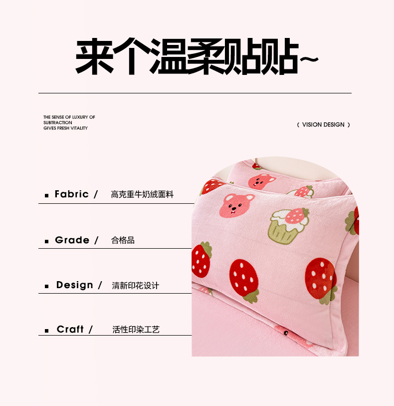 商品名称:妖妖家纺 2024新款200克牛奶绒单枕套 小甜莓