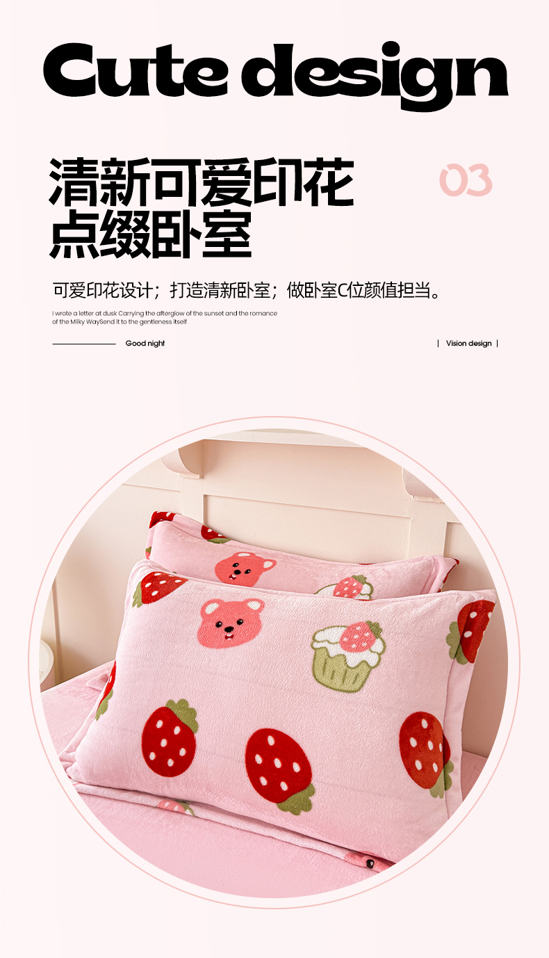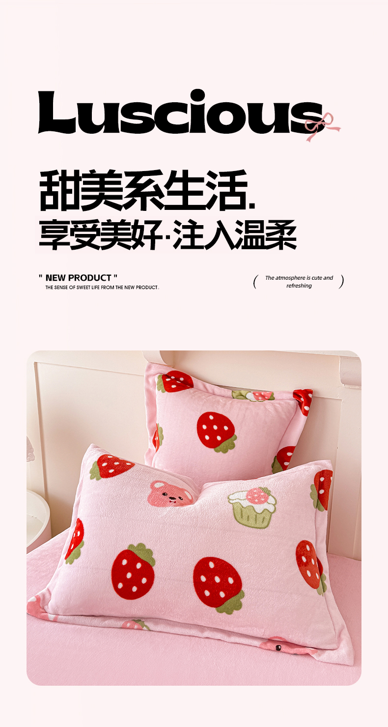 妖妖家纺 2024新款200克牛奶绒单枕套 小甜莓