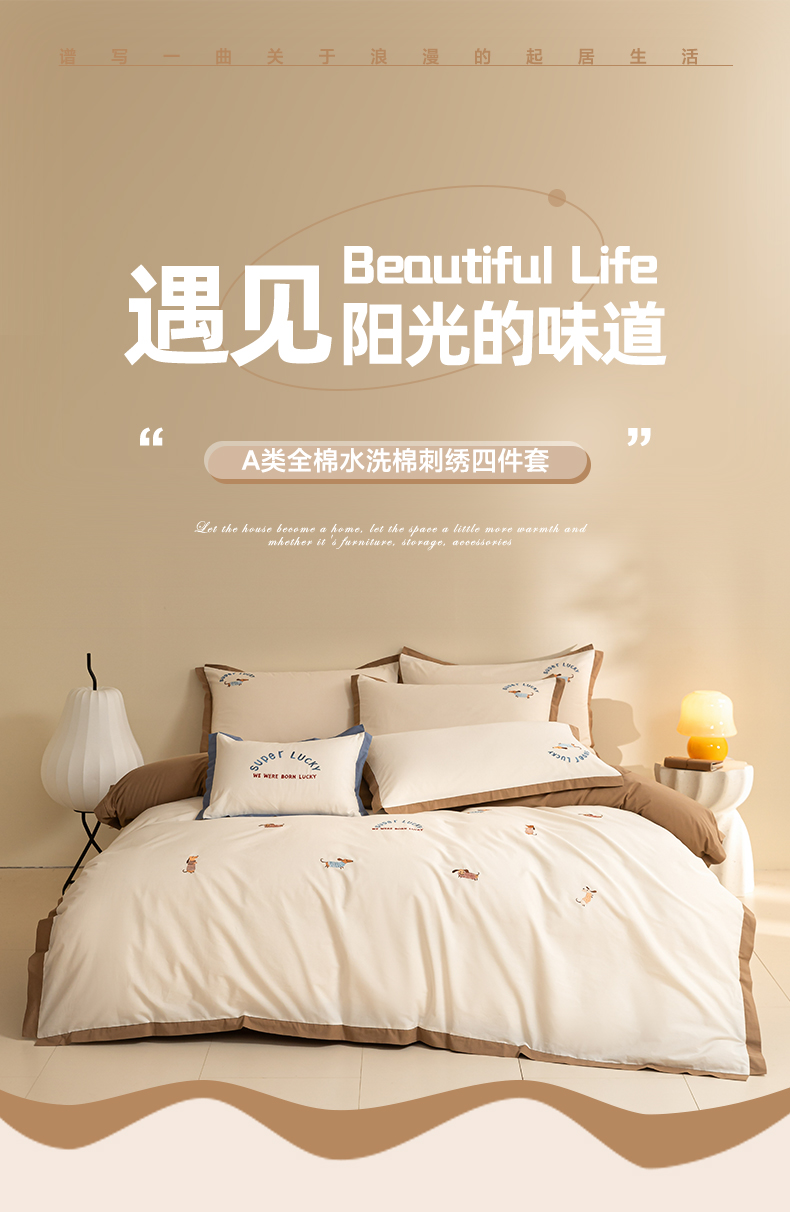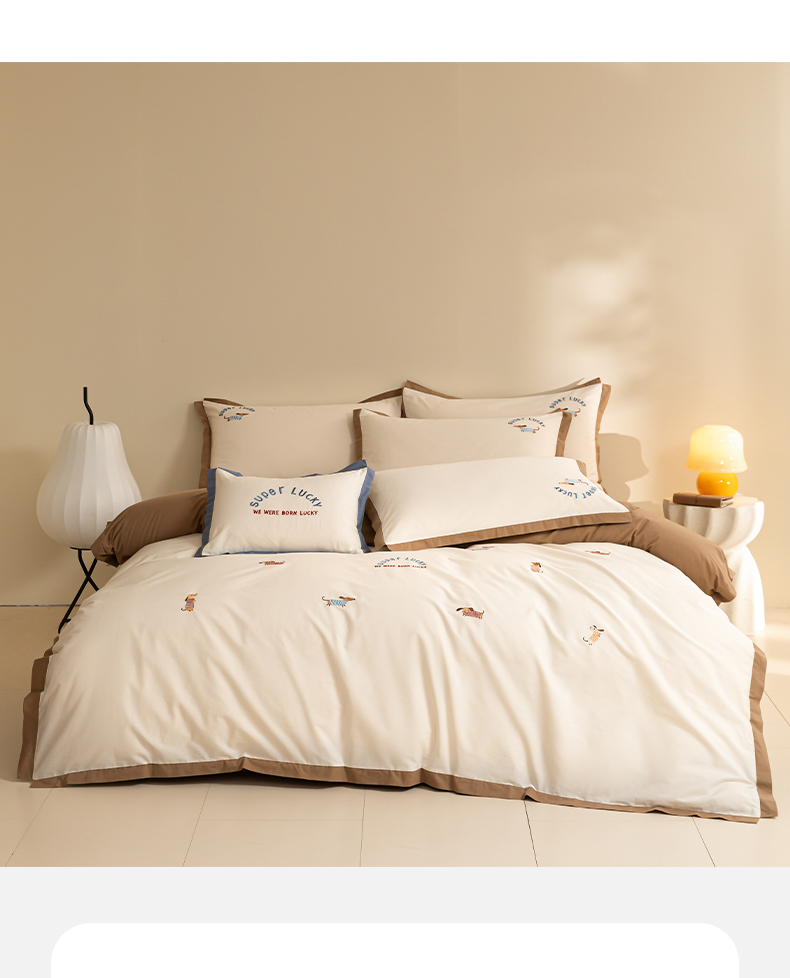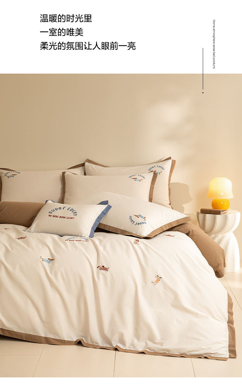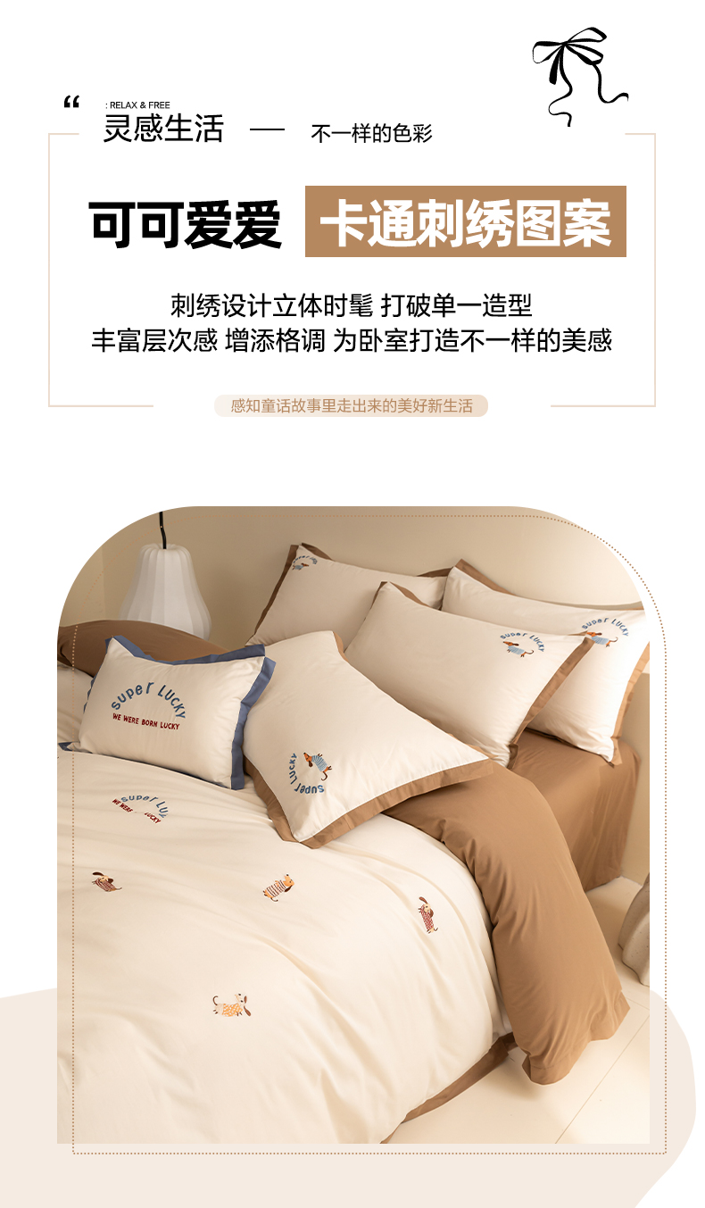 如一 2024新款全棉水洗棉刺绣工艺款四件套--风格二 幸运狗-白咖
