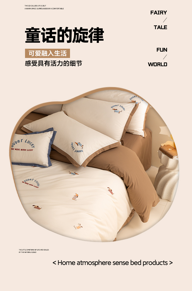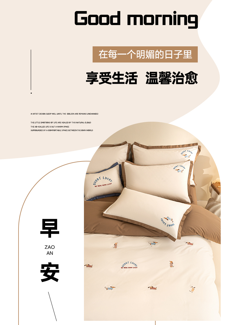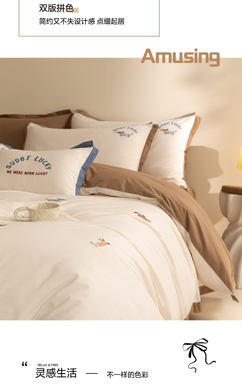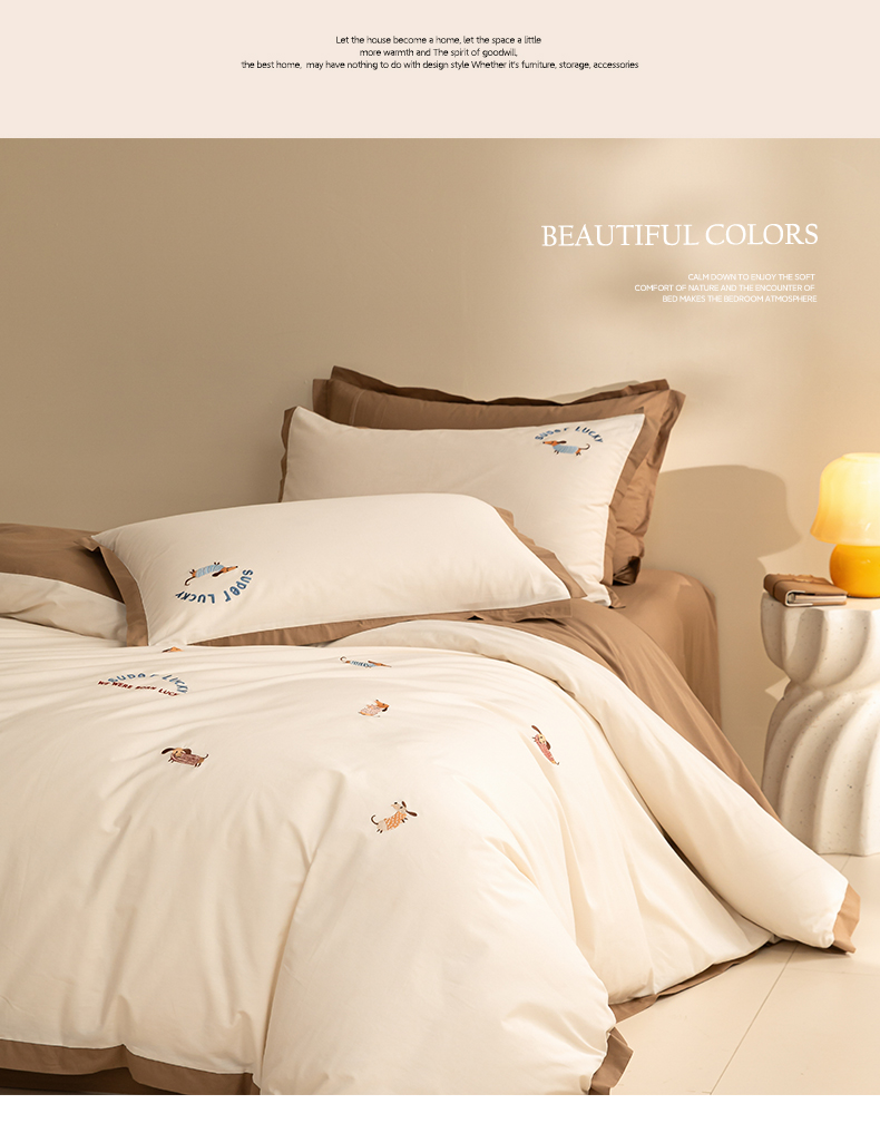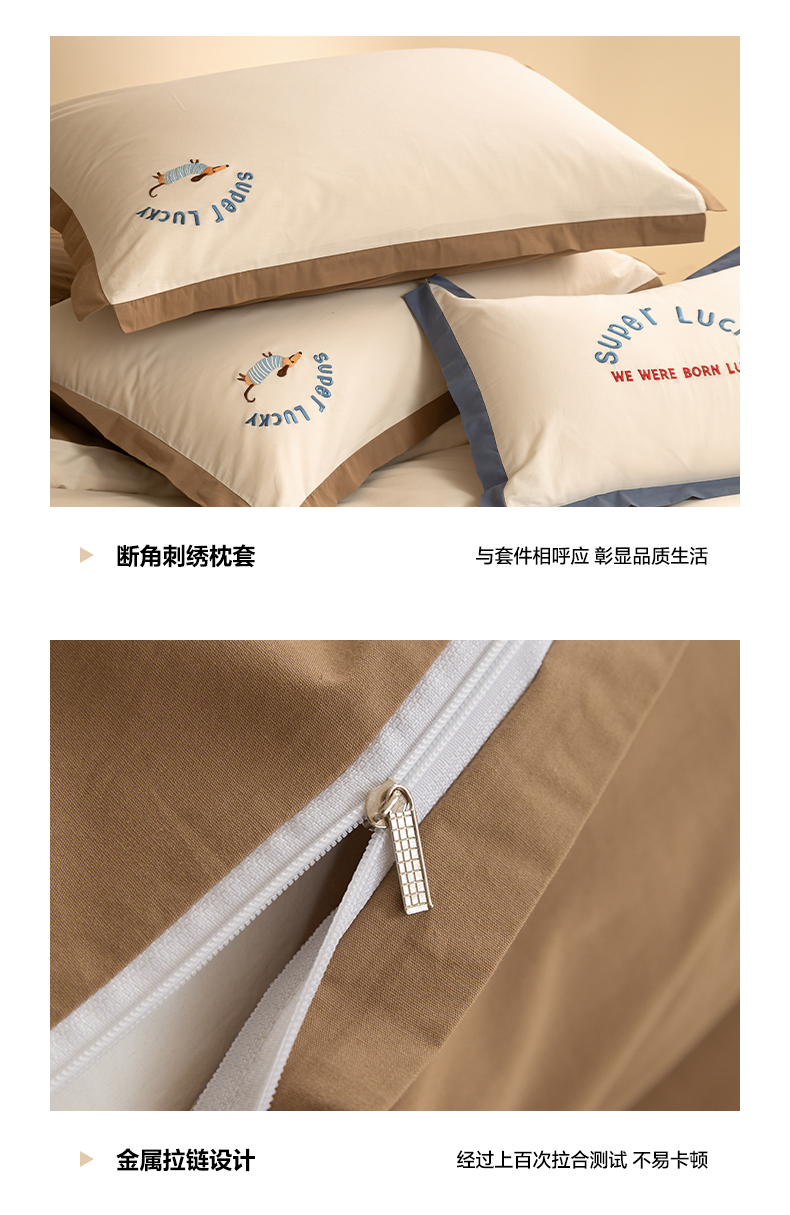 如一 2024新款全棉水洗棉刺绣工艺款四件套--风格二 幸运狗-白咖