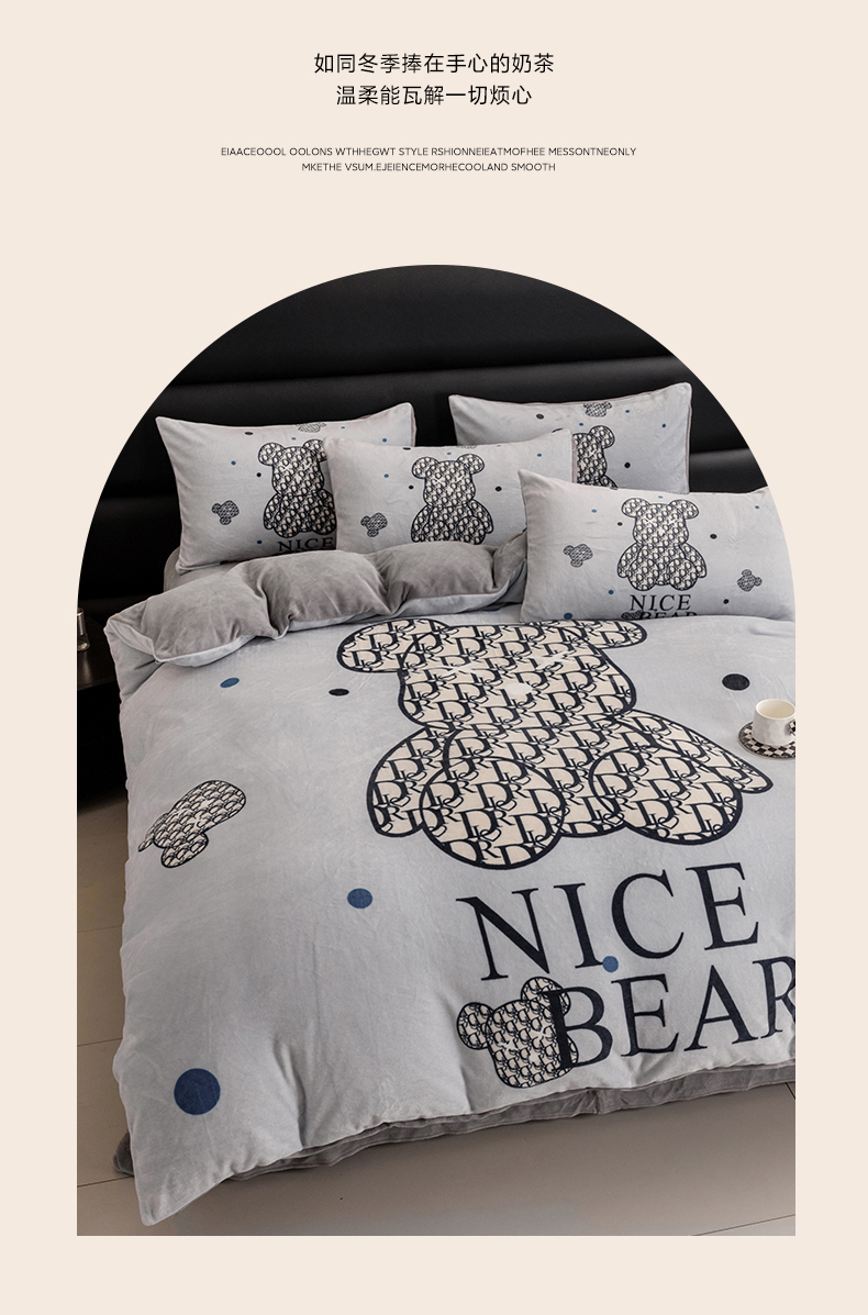(总)摩卡(乐趣) 2025新款牛奶绒大版数码印花四件套,白香花,芬利熊,黑白V,灰迪,咔芬,卡布熊,可可熊,蓝白格,罗兰粉,萌迪,七彩熊,棋盘格公仔,山茶花,熊头白,熊仔白,熊仔咖