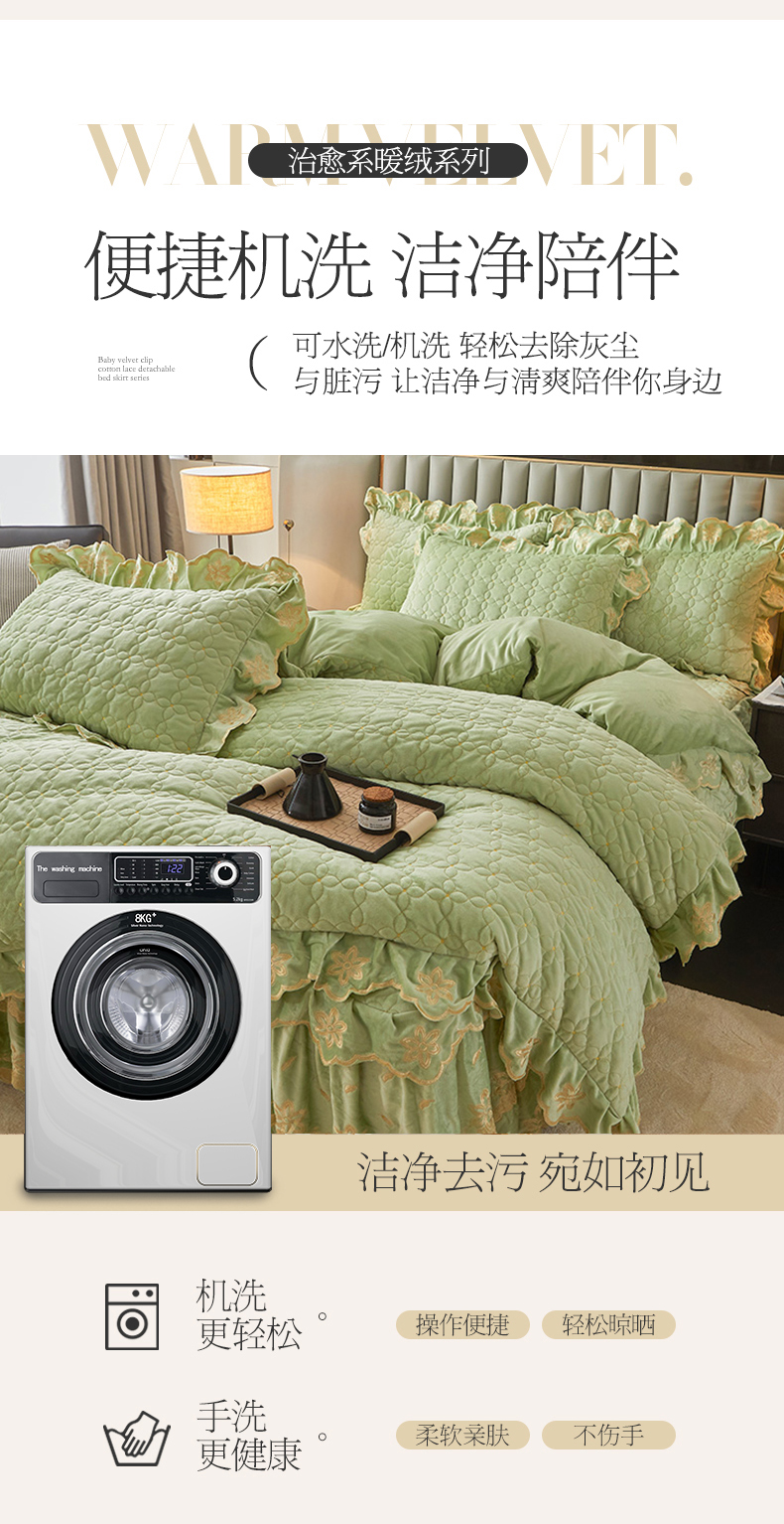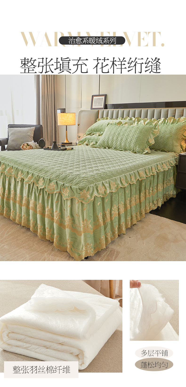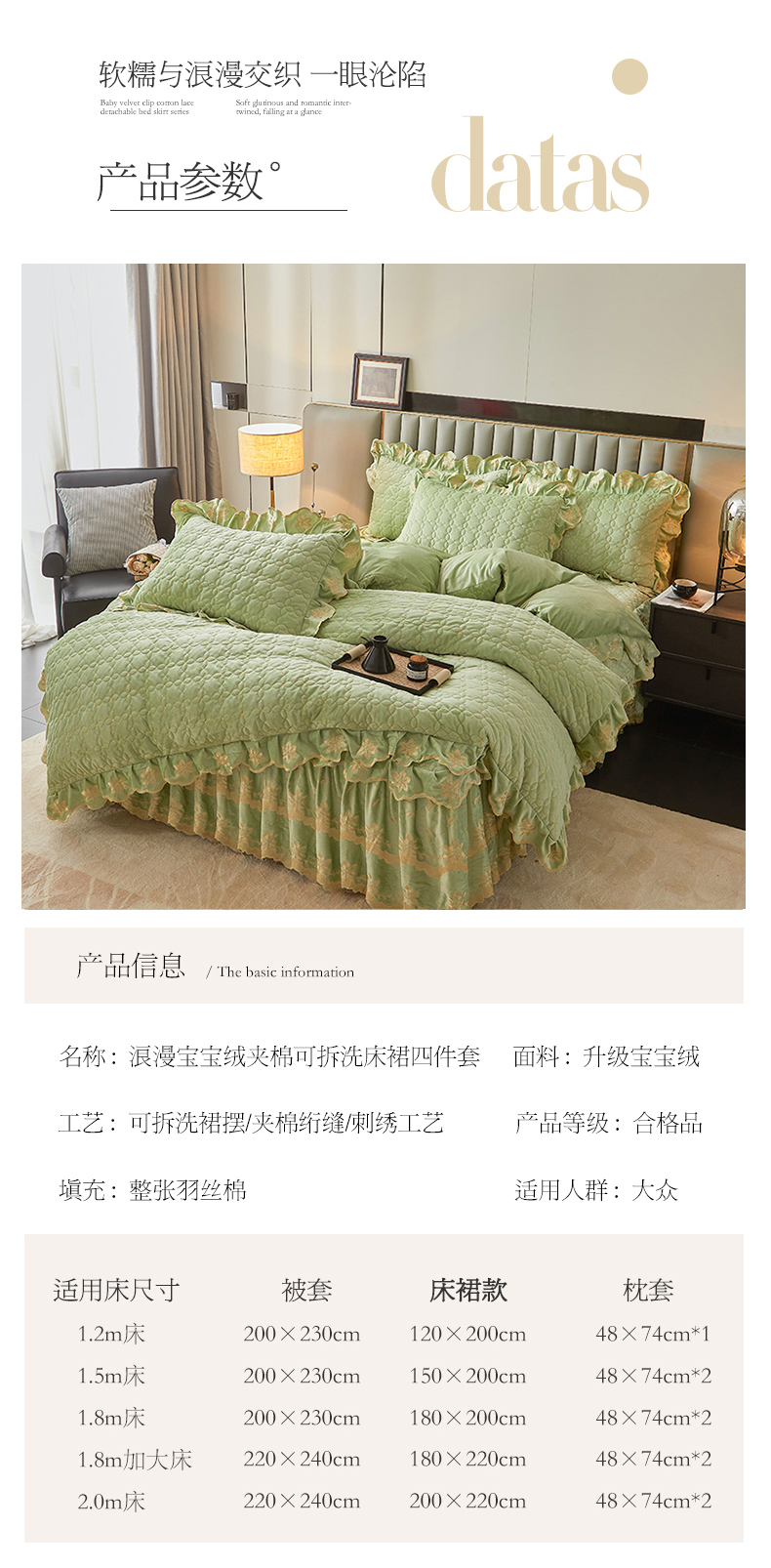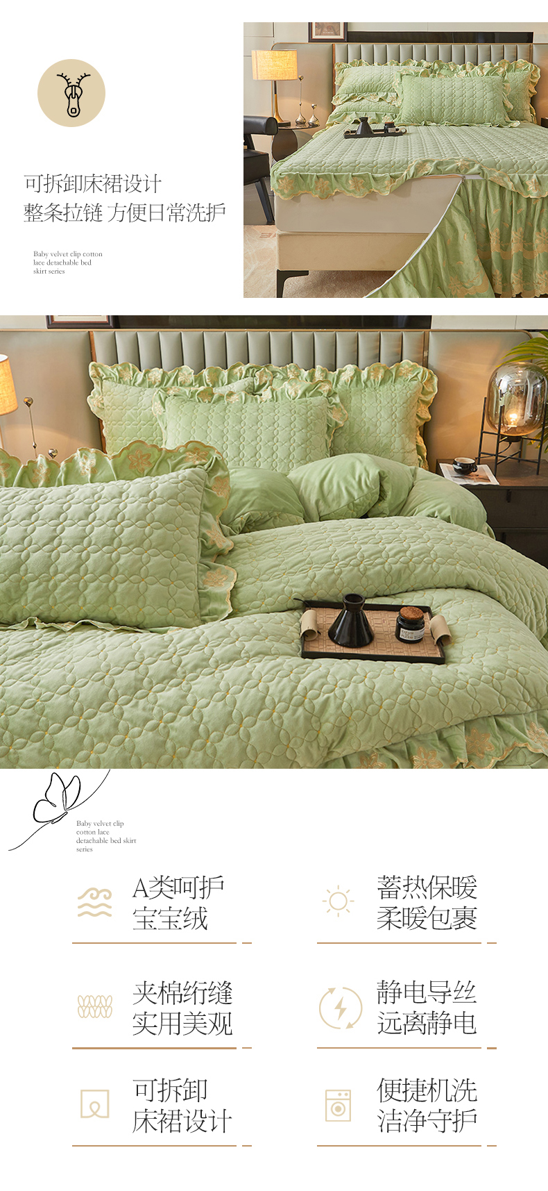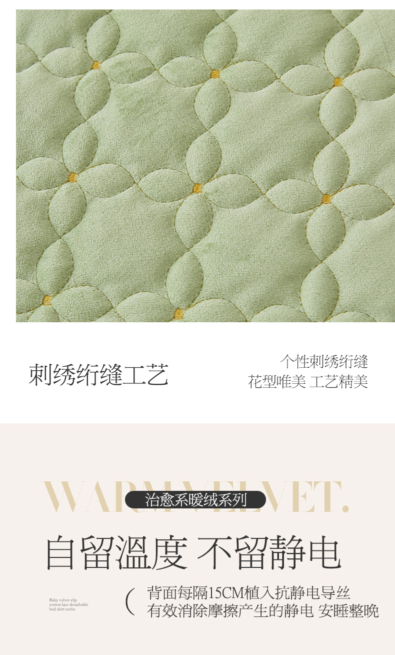 当前位置: 91家纺网 > 商品网购 > 床品套件 > 四件套 > 其它四件套 > 虹星家纺 2024新款可拆卸宝宝绒夹棉床裙三四件套-盛世芳华 盛世芳华 果绿