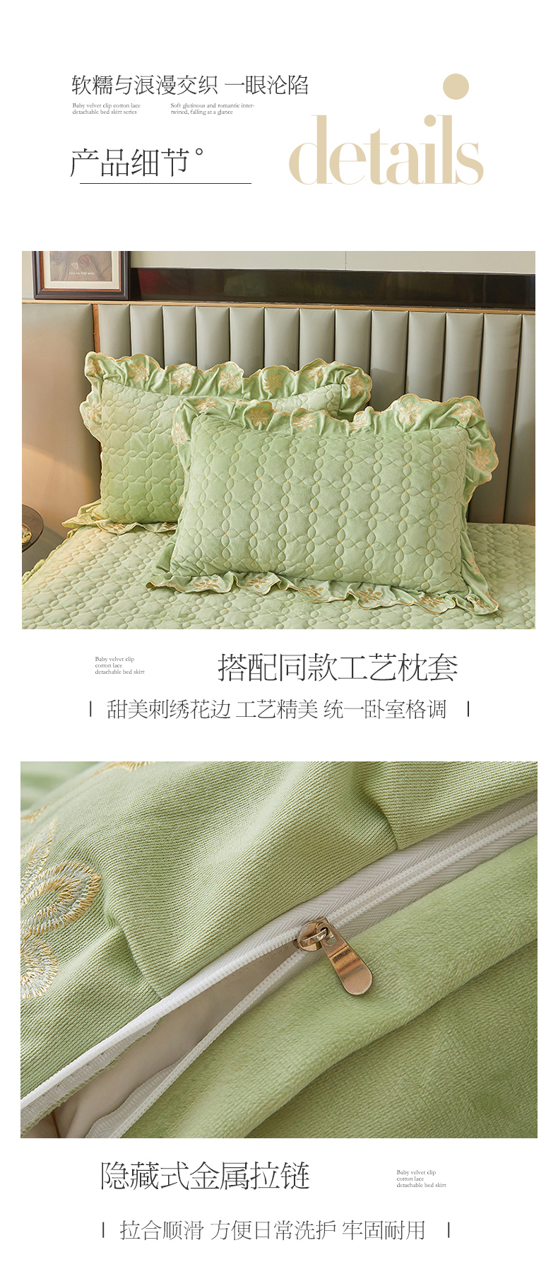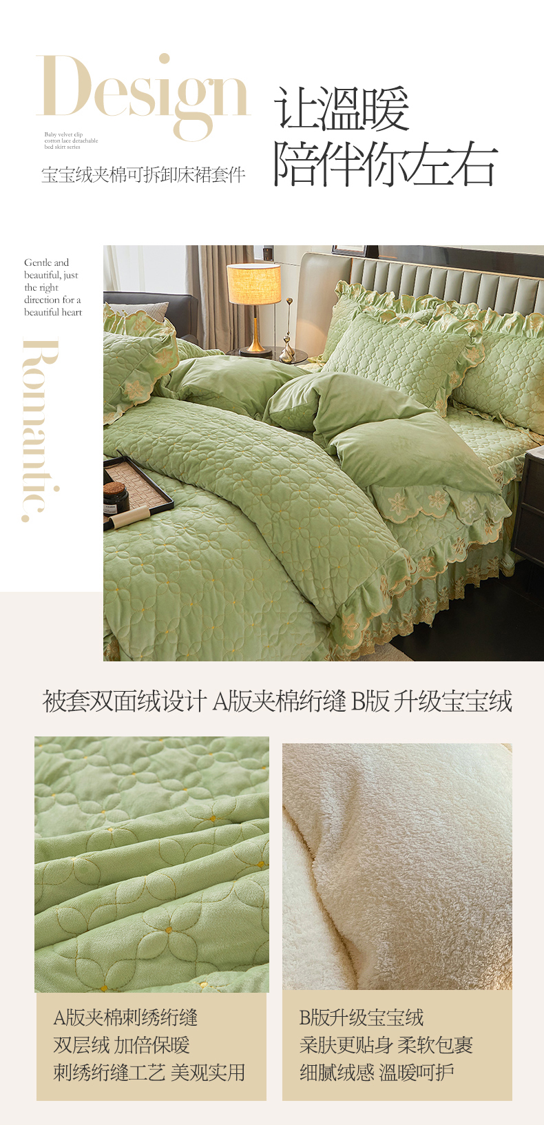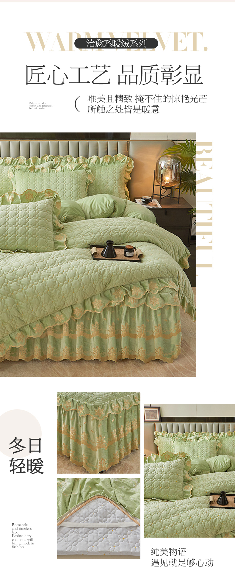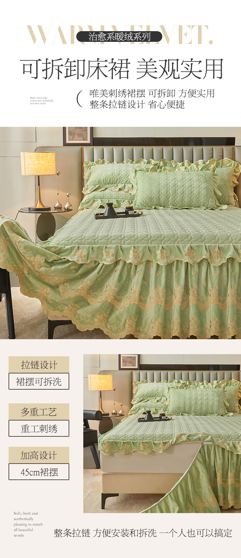 当前位置: 91家纺网 > 商品网购 > 床品套件 > 四件套 > 其它四件套 > 虹星家纺 2024新款可拆卸宝宝绒夹棉床裙三四件套-盛世芳华 盛世芳华 果绿