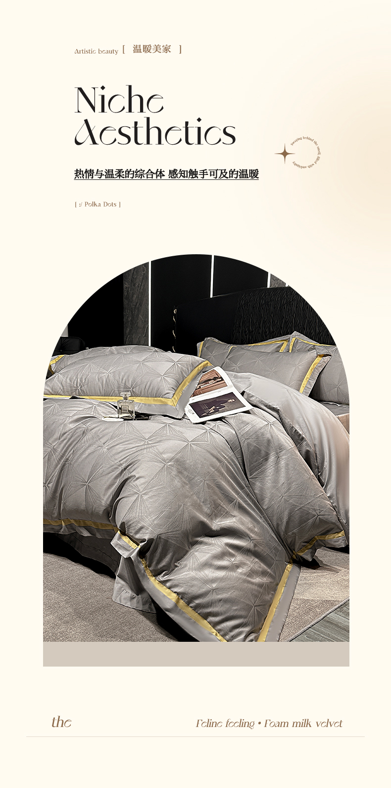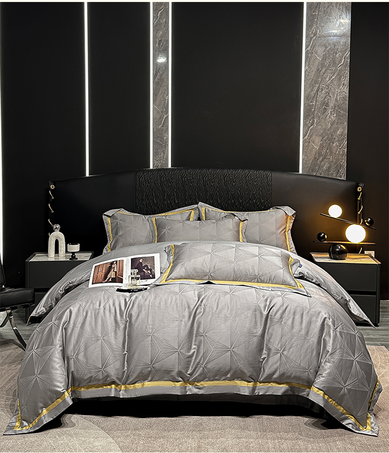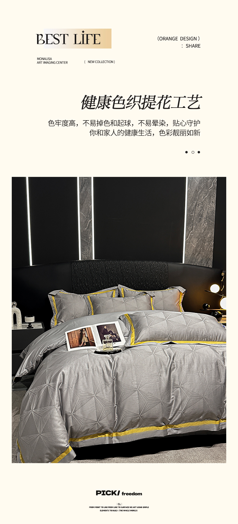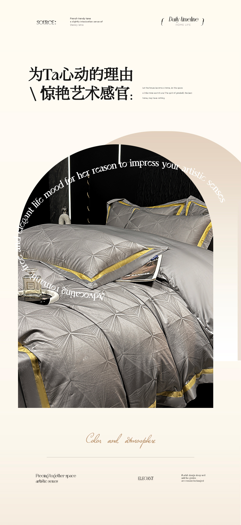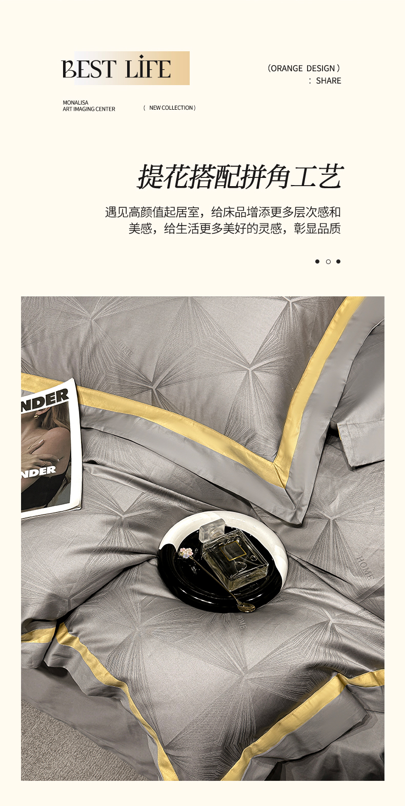商品名称:2024新款轻奢双拼角全棉提花四件套 格拉斯-黎明灰