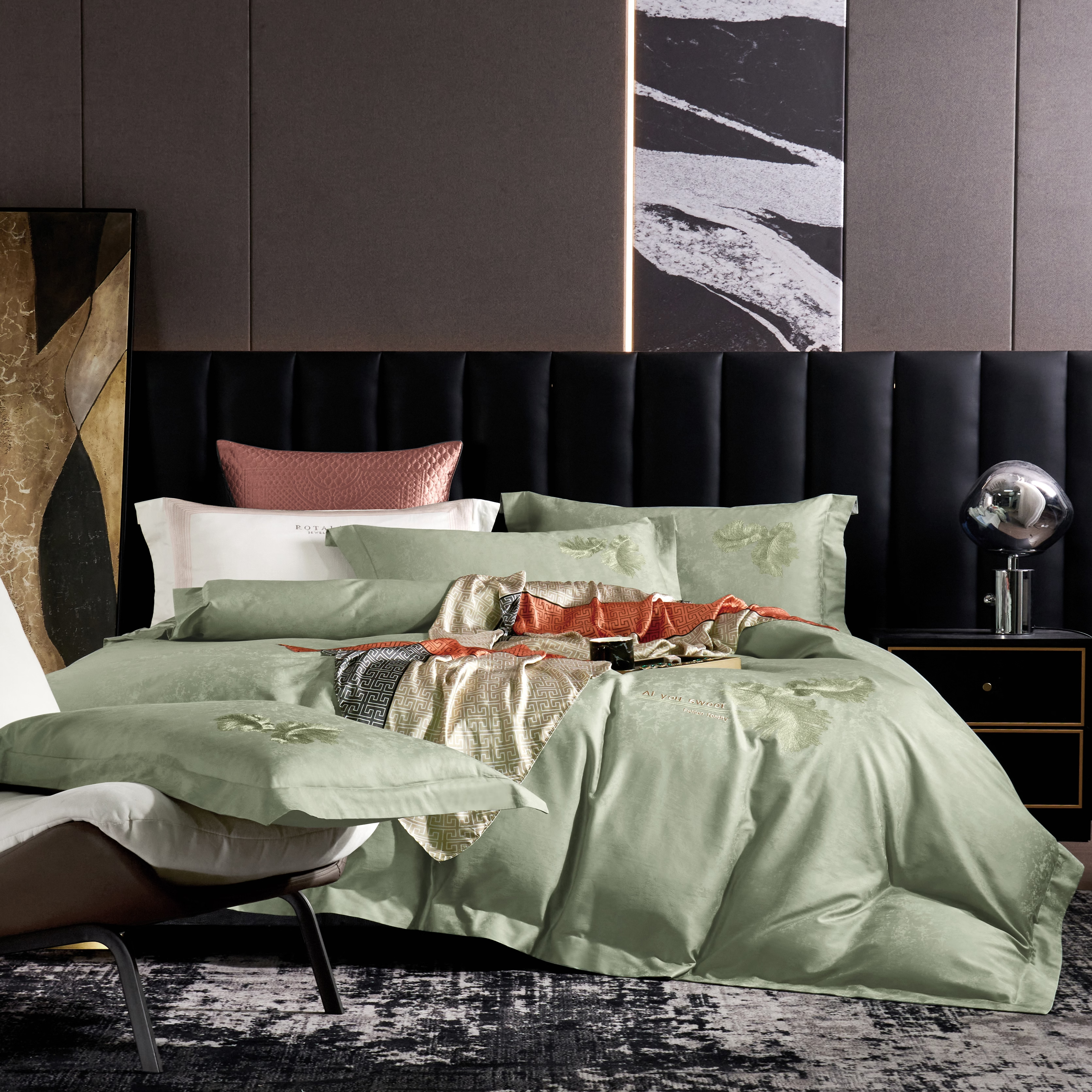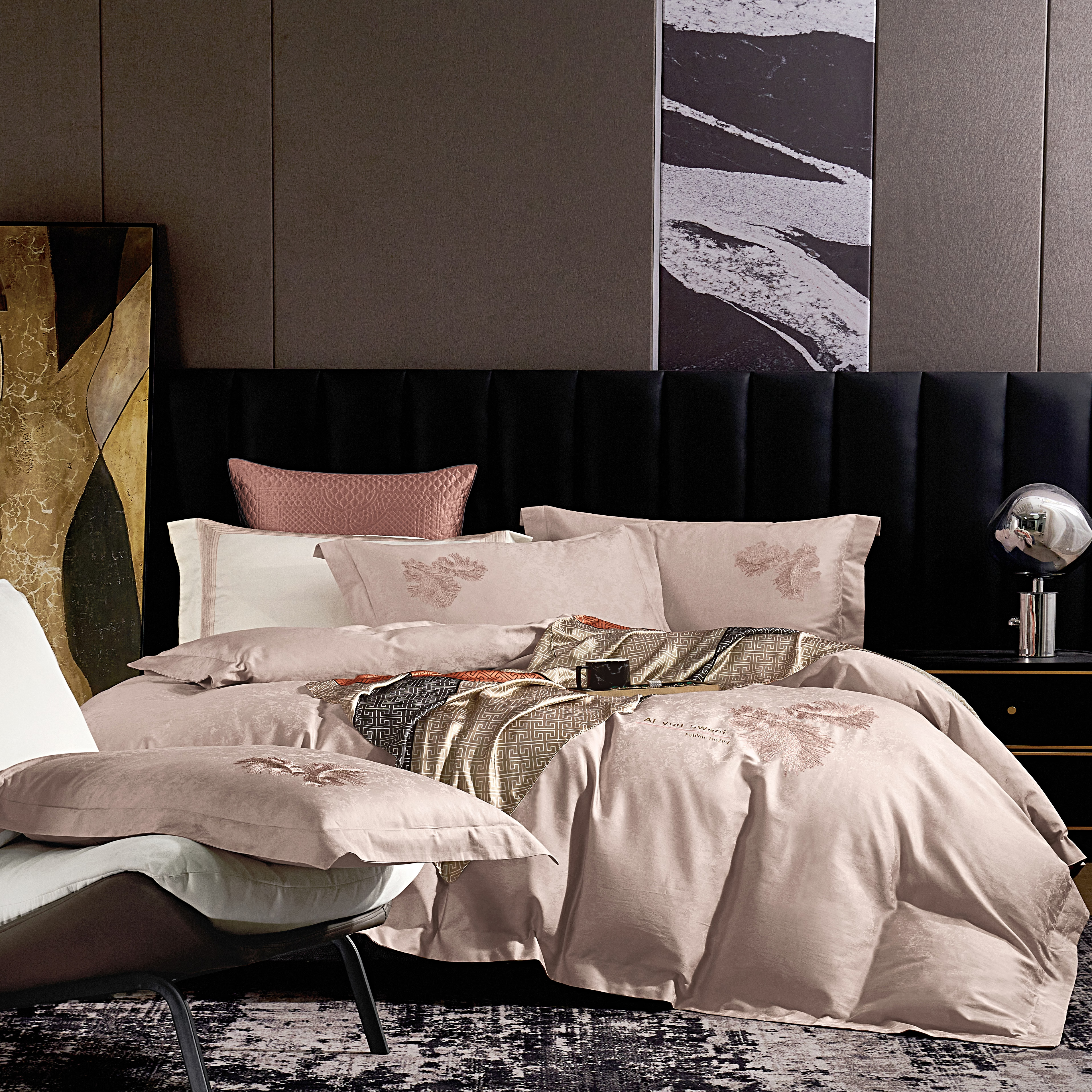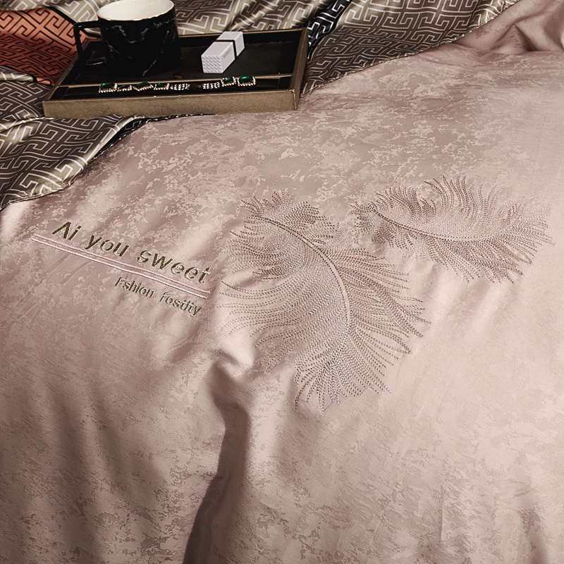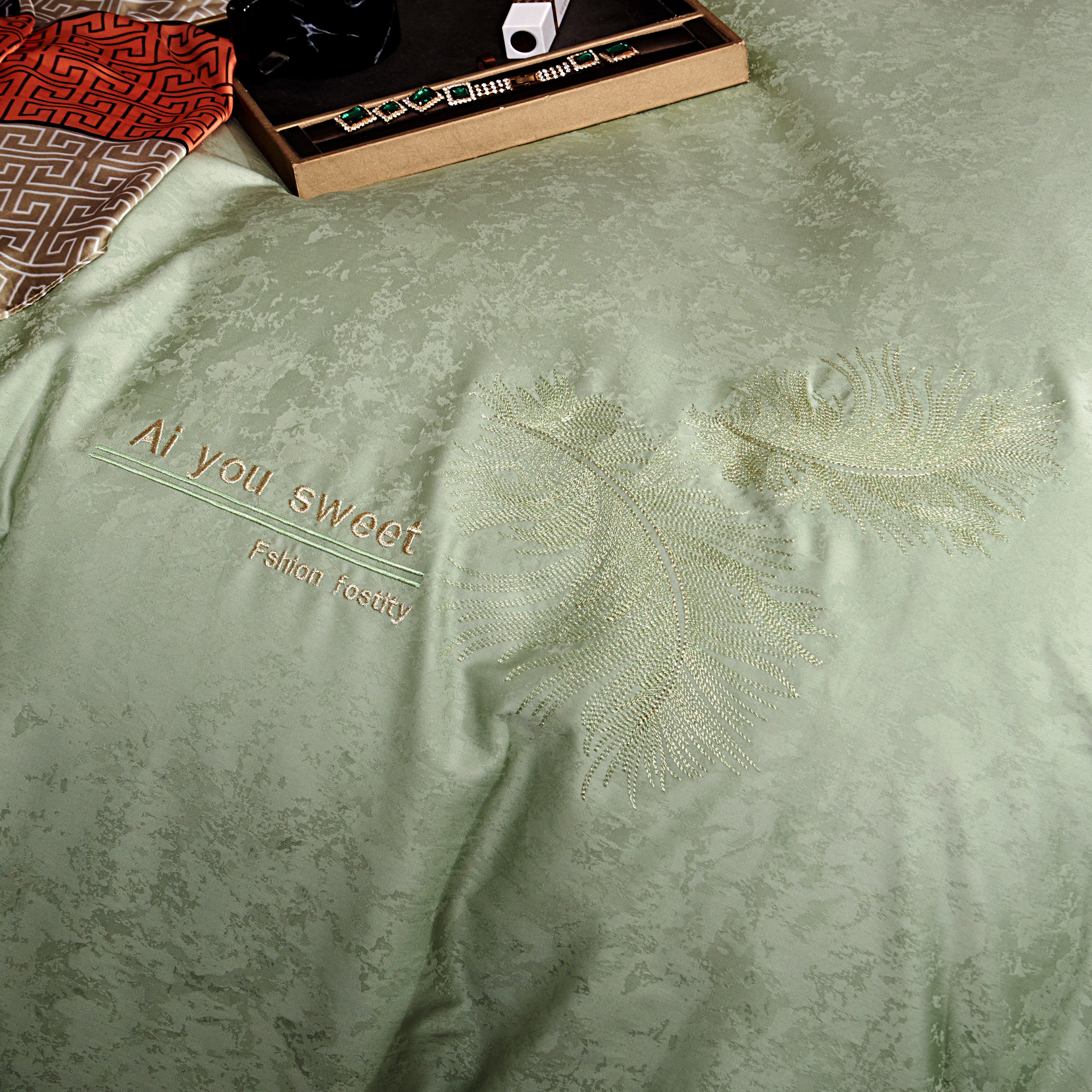 (总)张公子婚庆馆 2025新款140支新疆长绒棉提花居家绣花工艺系列四件套-米娜(控价不低于388),米娜-白桃粉,米娜-豆沙,米娜-青草绿,米娜-天空蓝,米娜-云雾灰