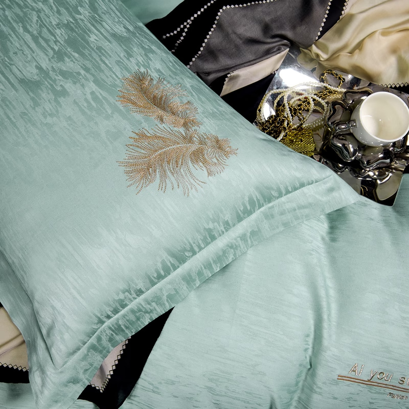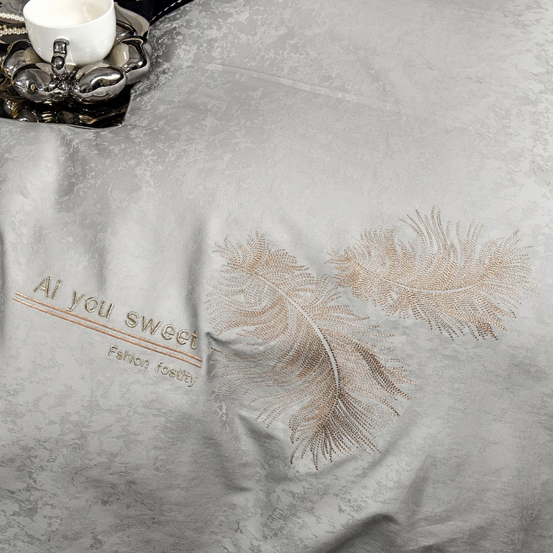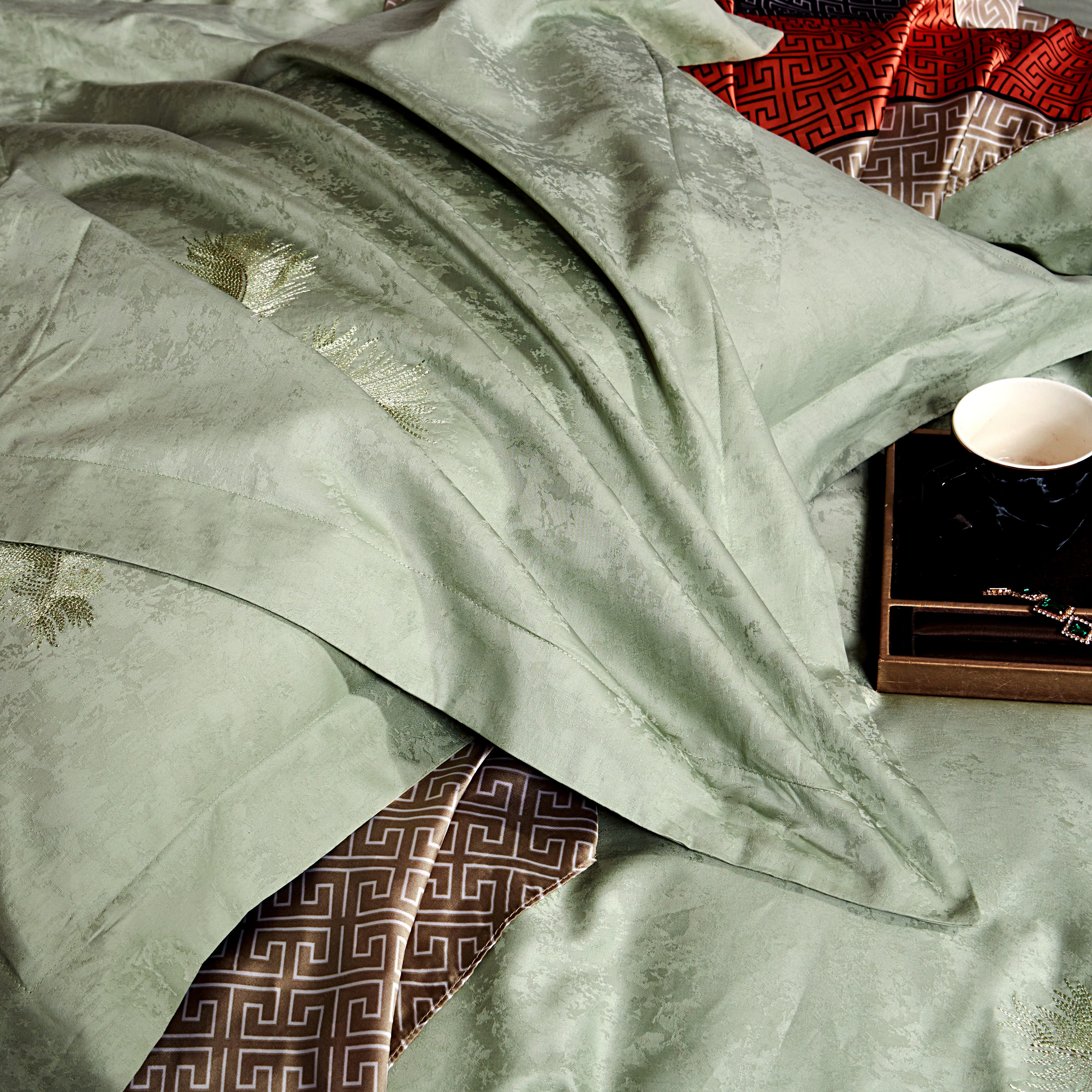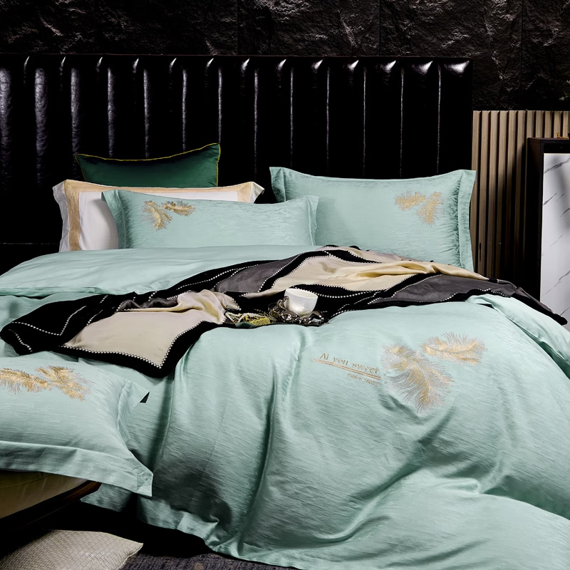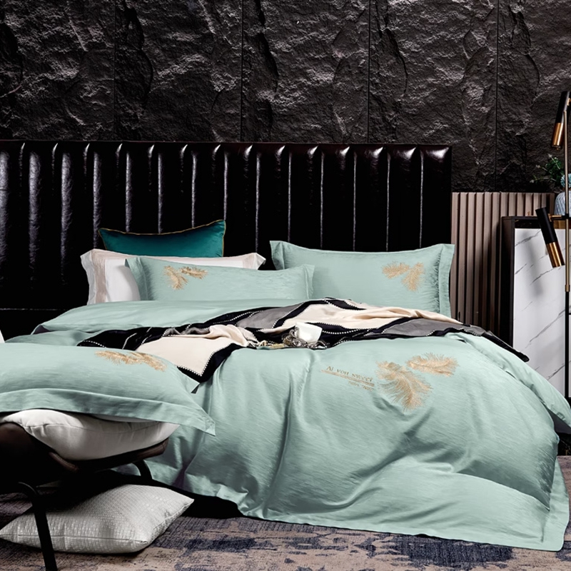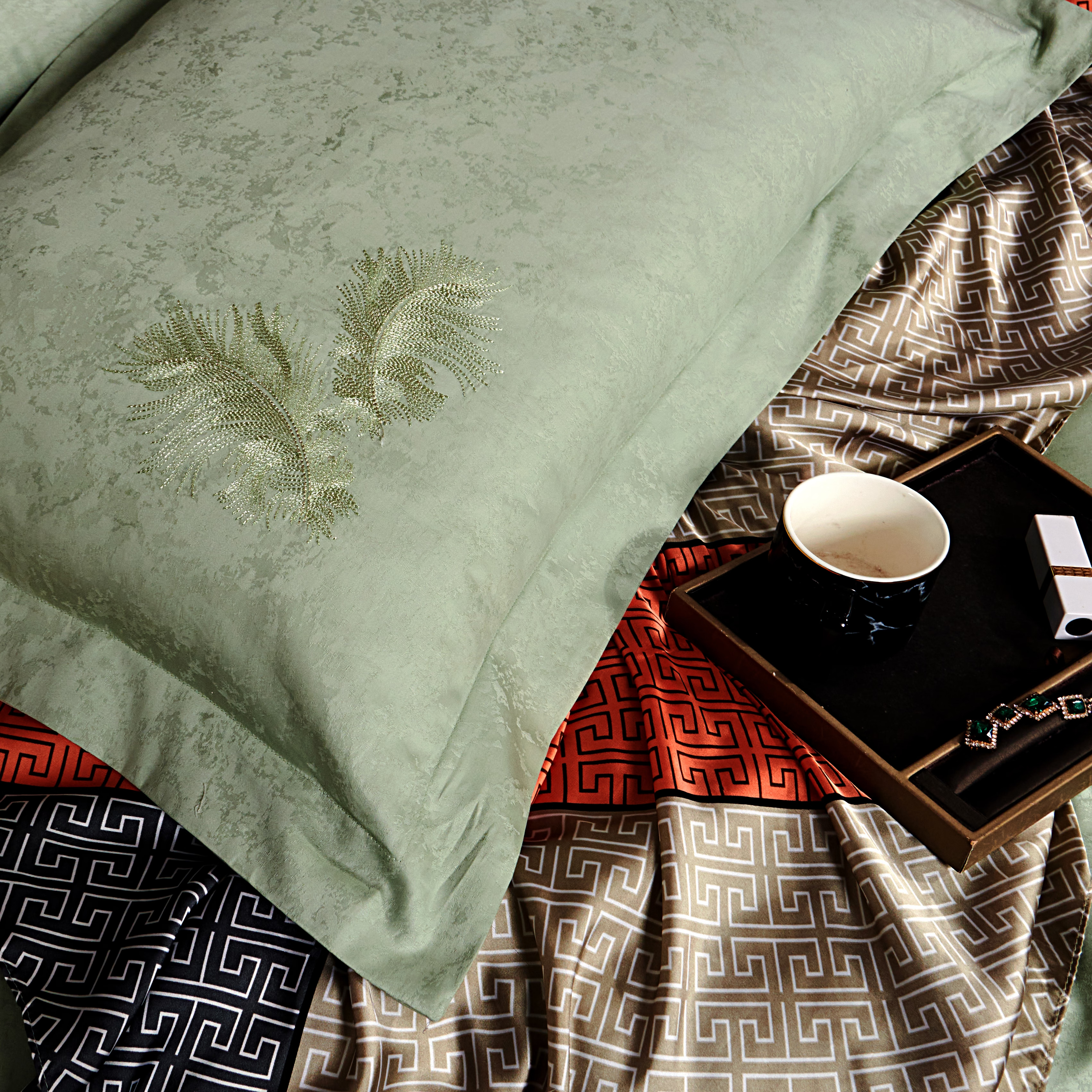 (总)张公子婚庆馆 2025新款140支新疆长绒棉提花居家绣花工艺系列四件套-米娜(控价不低于388),米娜-白桃粉,米娜-豆沙,米娜-青草绿,米娜-天空蓝,米娜-云雾灰