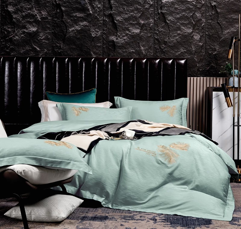 (总)张公子婚庆馆 2025新款140支新疆长绒棉纯棉居家绣花拼角工艺系列四件套—秘境,秘境-白桃粉,秘境-粉豆沙,秘境-青草绿,秘境-天空蓝,秘境-云雾灰