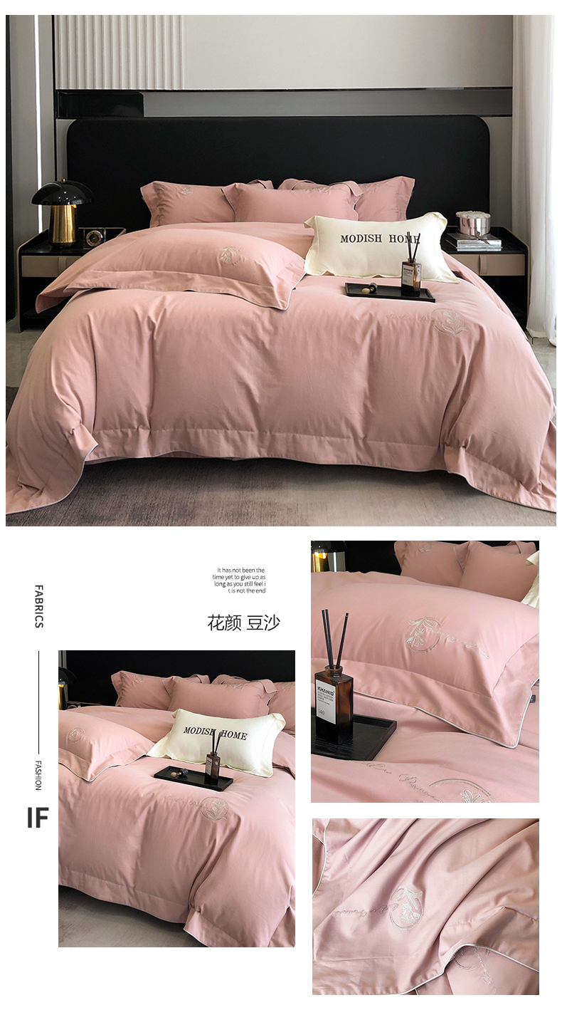 (总)诗黛尔 2025秋冬新款长绒棉刺绣香缇卡系列四件套,卡其色,落樱粉,南瓜橘,绅士灰,水晶兰,油果绿