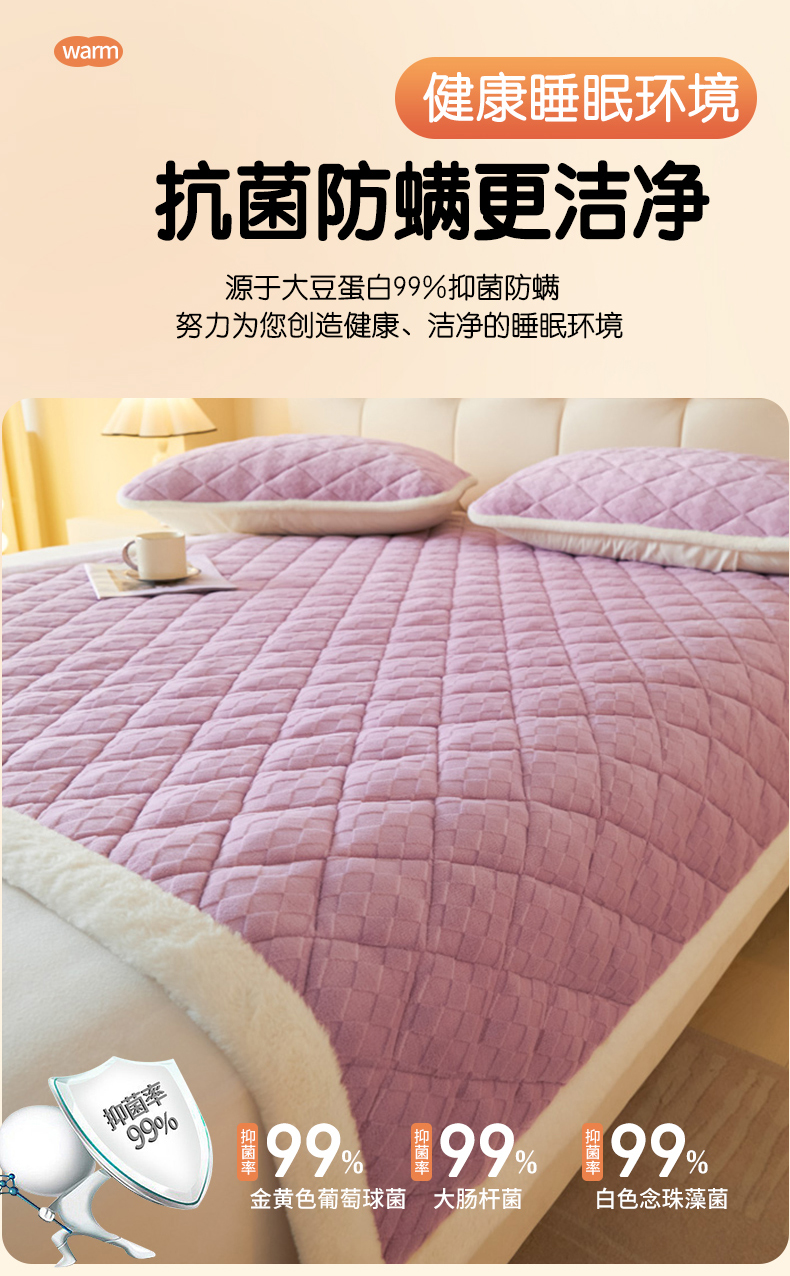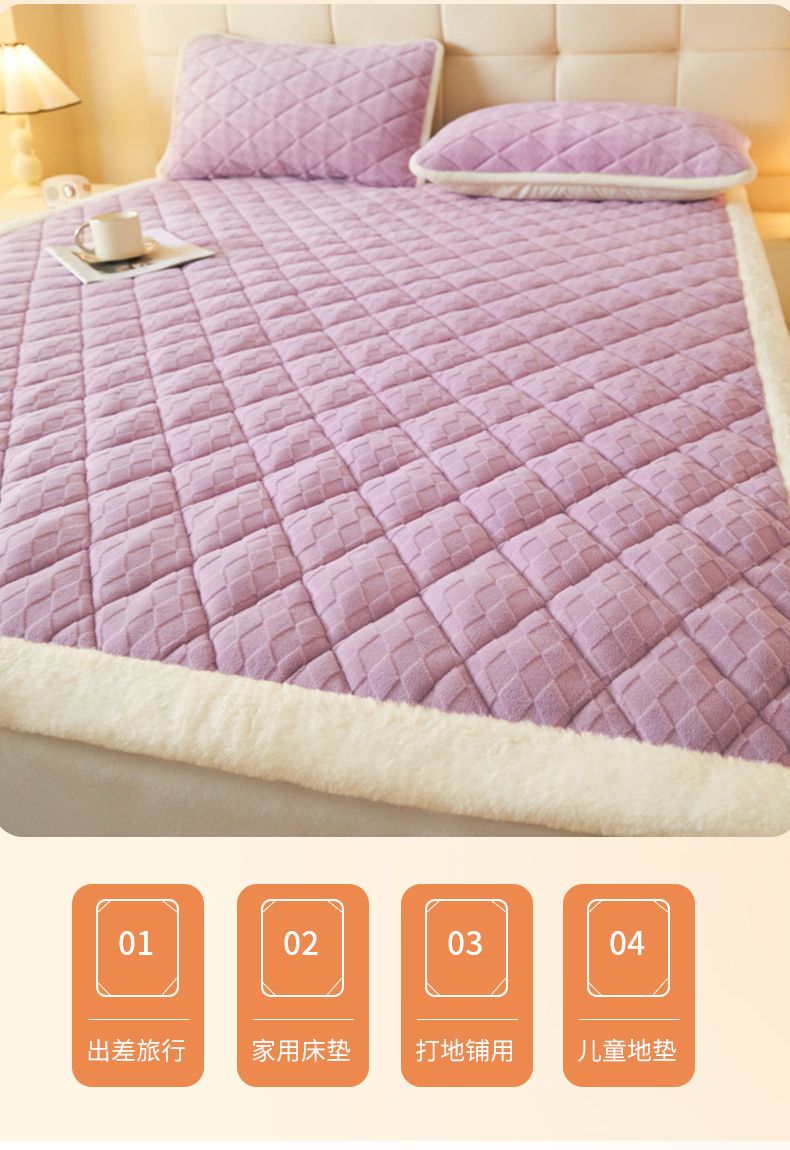 当前位置: 91家纺网 > 商品网购 > 床垫/床褥 > 普通床垫 > 鑫钰 2024新款宝宝绒牛奶绒烂花大豆夹棉床褥床护垫-菱形格 菱形格-浅紫